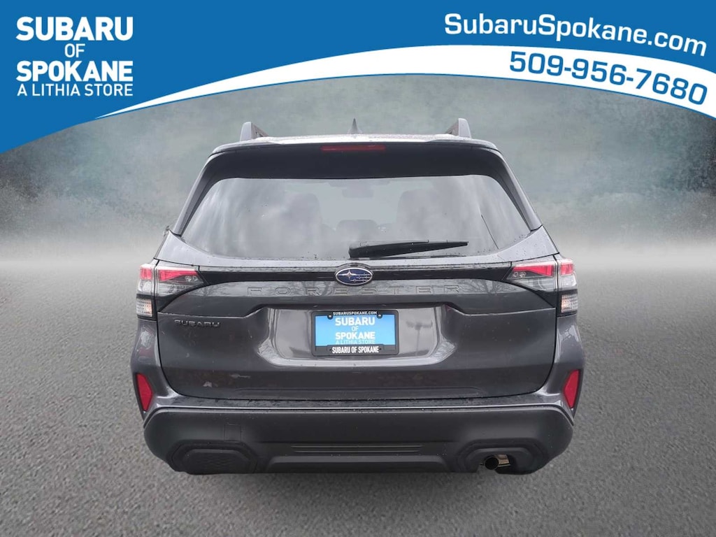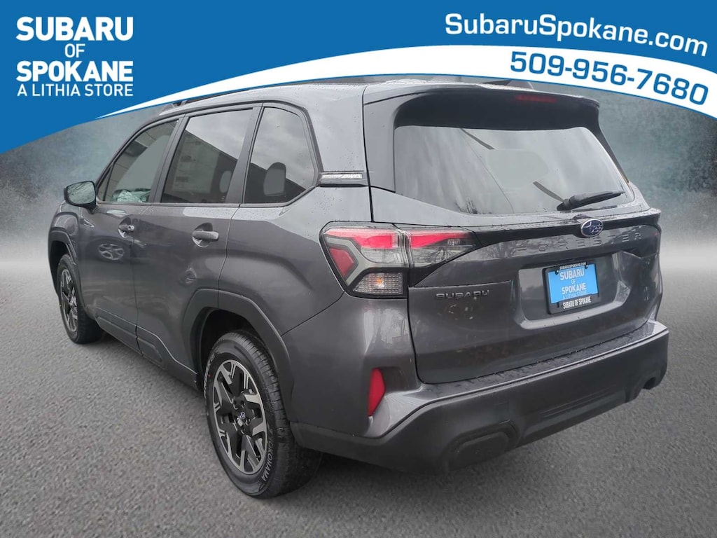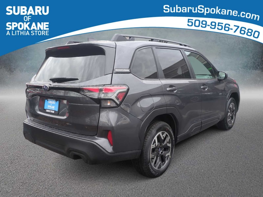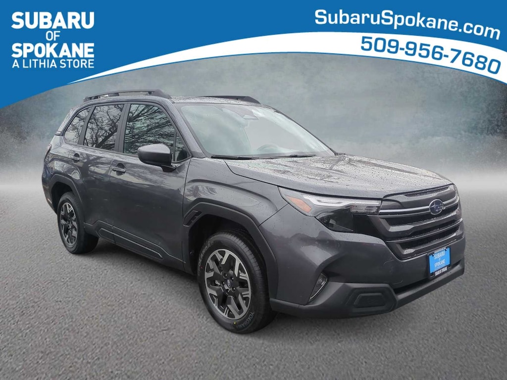 Magnetite Gray Metallic 2026 Subaru Forester Premium AWD Lineartronic CVT 2.5L 4-Cylinder DOHC 16V 4-Wheel Disc Brakes, 6 Speakers, ABS brakes, Air Conditioning, Alloy wheels, AM/FM radio: SiriusXM with 360L, Anti-whiplash front head restraints, Auto High-beam Headlights, Auto-Dimming Exterior Mirror with Approach Light, Auto-Dimming Mirror with Compass and HomeLink, Automatic Emergency Steering, Automatic temperature control, Blind-Spot Detection (BSD)/RCTA System, Brake assist, Bumpers: body-color, Driver door bin, Driver vanity mirror, Dual front impact airbags, Dual front side impact airbags, Electronic Stability Control, Emergency communication system: MySubaru Companion (5-years free), Emergency Lane Keep Assist, Exterior Parking Camera Rear, Four wheel independent suspension, Front anti-roll bar, Front Bucket Seats, Front Center Armrest, Front dual zone A/C, Front fog lights, Front reading lights, Fully automatic headlights, Heated door mirrors, Heated Front Bucket Seats, Heated front seats, Illuminated entry, Knee airbag, Leather steering wheel, Low tire pressure warning, Occupant sensing airbag, Outside temperature display, Overhead airbag, Overhead console, Panic alarm, Passenger door bin, Passenger vanity mirror, Power door mirrors, Power driver seat, Power moonroof: Panoramic, Power Rear Gate, Power Rear Gate and Blind Spot Detection with Rear Cross Traffic Alert, Power steering, Power windows, Premium Textured Cloth Upholstery, Radio data system, Radio: Subaru 11.6 Multimedia Plus System, Rear anti-roll bar, Rear seat center armrest, Rear window defroster, Rear window wiper, Remote keyless entry, Security system, Speed control, Speed-sensing steering, Split folding rear seat, Spoiler, Steering wheel mounted audio controls, Tachometer, Telescoping steering wheel, Tilt steering wheel, Traction control, Trip computer, Variably intermittent wipers, Wheels: 17 x 7.0 J Dark Metallic Aluminum-Alloy.