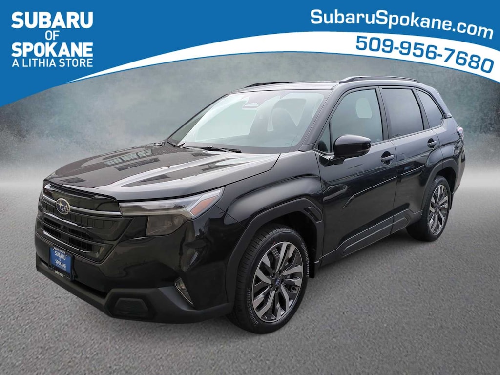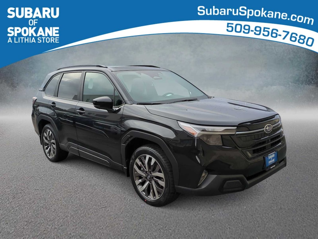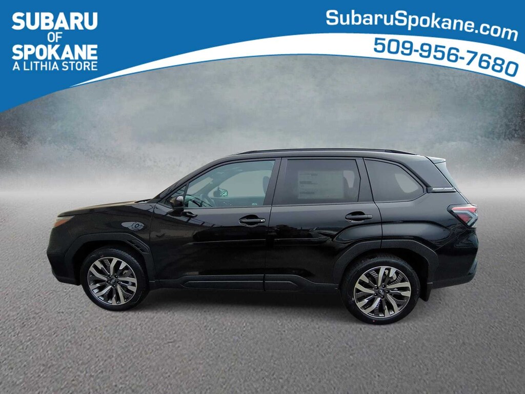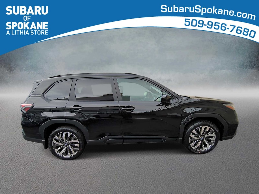 Crystal Black Silica 2026 Subaru Forester Touring AWD Lineartronic CVT 2.5L 4-Cylinder DOHC 16V 11 Speakers, 4-Wheel Disc Brakes, ABS brakes, Air Conditioning, Alloy wheels, AM/FM radio: SiriusXM with 360L, Anti-whiplash front head restraints, Auto High-beam Headlights, Auto-Dimming Exterior Mirror with Approach Light, Automatic temperature control, Body Side Molding - Crystal Black Silica, Brake assist, Bumpers: body-color, Cargo Tray, Door Projector Lights, Driver door bin, Driver vanity mirror, Dual front impact airbags, Dual front side impact airbags, Electronic Stability Control, Emergency communication system: MySubaru Companion (5-years free), Exterior Parking Camera Rear, Four wheel independent suspension, Front anti-roll bar, Front Bucket Seats, Front Center Armrest, Front dual zone A/C, Front fog lights, Front reading lights, Fully automatic headlights, harman/kardonî Speakers, Heads-Up Display, Heated and Ventilated Front Bucket Seats, Heated door mirrors, Heated front seats, Heated rear seats, Heated steering wheel, HVAC memory, Illuminated entry, Knee airbag, Leather Shift Knob, Leather steering wheel, Low tire pressure warning, Memory seat, Navigation System, Occupant sensing airbag, Outside temperature display, Overhead airbag, Overhead console, Panic alarm, Passenger door bin, Passenger vanity mirror, Perforated Leather-Trimmed Upholstery, Power door mirrors, Power driver seat, Power Liftgate, Power moonroof: Panoramic, Power passenger seat, Power steering, Power windows, Radio data system, Radio: Subaru 11.6 Multimedia Navigation System, Rain sensing wipers, Rear anti-roll bar, Rear seat center armrest, Rear window defroster, Rear window wiper, Remote keyless entry, Security system, Speed control, Speed-sensing steering, Splash Guards, Split folding rear seat, Spoiler, Standard Model, Steering wheel mounted audio controls, Tachometer, Telescoping steering wheel, Tilt steering wheel, Traction control, Trip computer, Turn signal indicator mirrors, Variably intermittent wipers, Ventilated front seats, Wheels: 19 x 7.5 J Dark Gray Aluminum-Alloy.