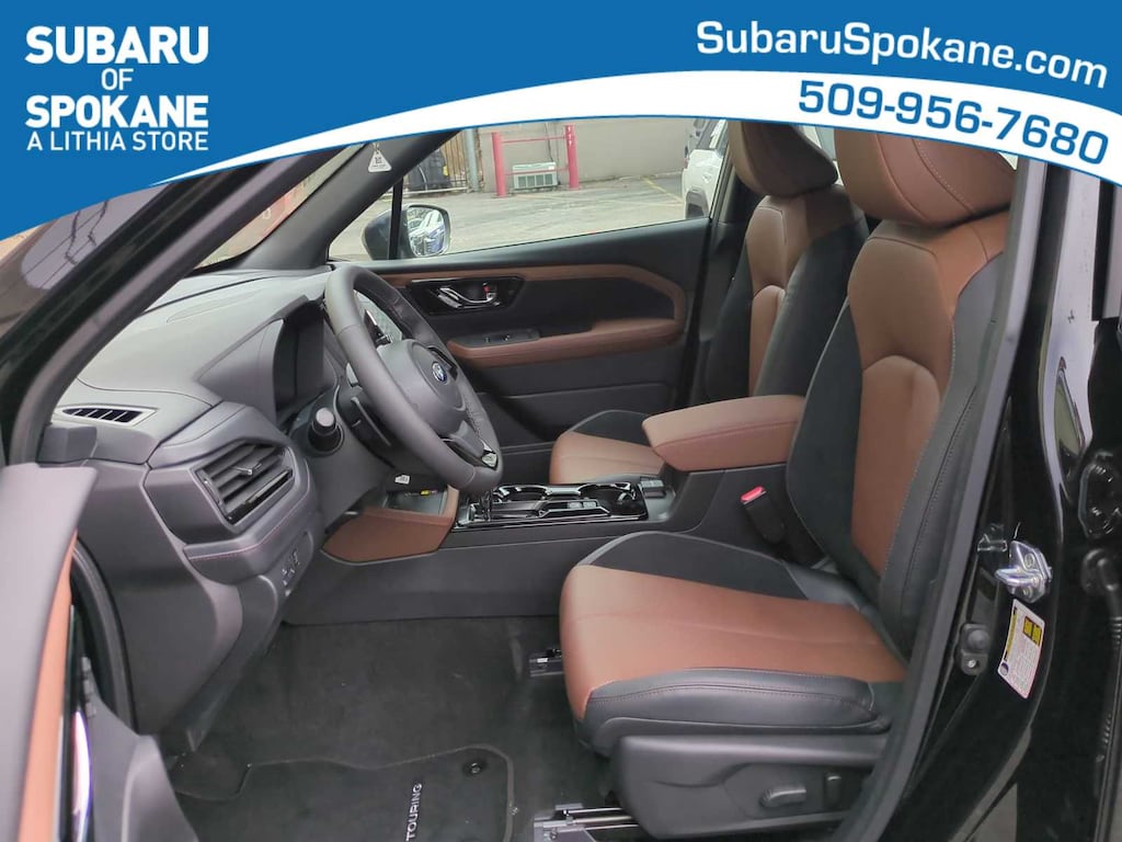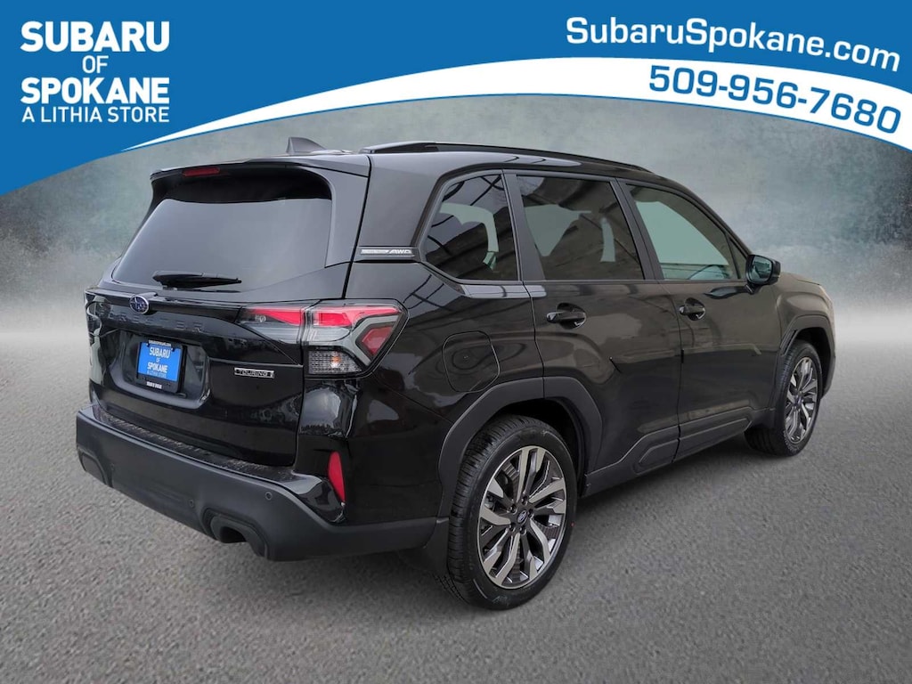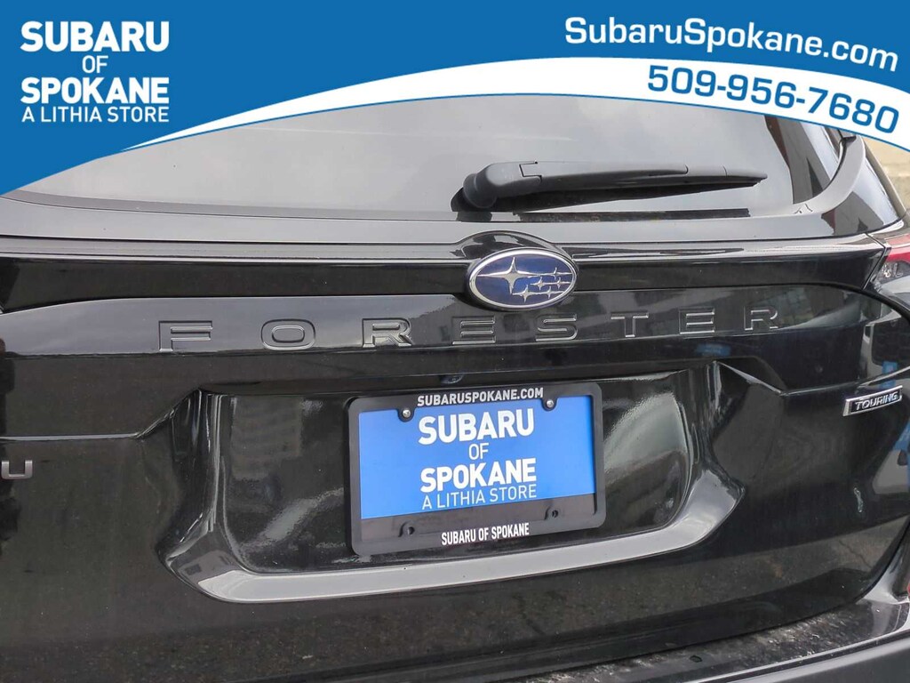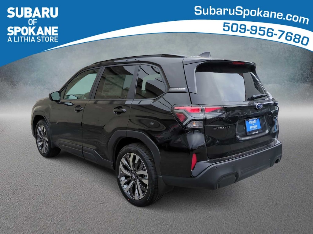 Crystal Black Silica 2026 Subaru Forester Touring AWD Lineartronic CVT 2.5L 4-Cylinder DOHC 16V 11 Speakers, 4-Wheel Disc Brakes, ABS brakes, Air Conditioning, Alloy wheels, AM/FM radio: SiriusXM with 360L, Anti-whiplash front head restraints, Auto High-beam Headlights, Auto-Dimming Exterior Mirror with Approach Light, Automatic temperature control, Body Side Molding - Crystal Black Silica, Brake assist, Bumpers: body-color, Cargo Tray, Door Projector Lights, Driver door bin, Driver vanity mirror, Dual front impact airbags, Dual front side impact airbags, Electronic Stability Control, Emergency communication system: MySubaru Companion (5-years free), Exterior Parking Camera Rear, Four wheel independent suspension, Front anti-roll bar, Front Bucket Seats, Front Center Armrest, Front dual zone A/C, Front fog lights, Front reading lights, Fully automatic headlights, harman/kardonî Speakers, Heads-Up Display, Heated and Ventilated Front Bucket Seats, Heated door mirrors, Heated front seats, Heated rear seats, Heated steering wheel, HVAC memory, Illuminated entry, Knee airbag, Leather Shift Knob, Leather steering wheel, Low tire pressure warning, Memory seat, Navigation System, Occupant sensing airbag, Outside temperature display, Overhead airbag, Overhead console, Panic alarm, Passenger door bin, Passenger vanity mirror, Perforated Leather-Trimmed Upholstery, Power door mirrors, Power driver seat, Power Liftgate, Power moonroof: Panoramic, Power passenger seat, Power steering, Power windows, Radio data system, Radio: Subaru 11.6 Multimedia Navigation System, Rain sensing wipers, Rear anti-roll bar, Rear seat center armrest, Rear window defroster, Rear window wiper, Remote keyless entry, Security system, Speed control, Speed-sensing steering, Splash Guards, Split folding rear seat, Spoiler, Standard Model, Steering wheel mounted audio controls, Tachometer, Telescoping steering wheel, Tilt steering wheel, Traction control, Trip computer, Turn signal indicator mirrors, Variably intermittent wipers, Ventilated front seats, Wheels: 19 x 7.5 J Dark Gray Aluminum-Alloy.