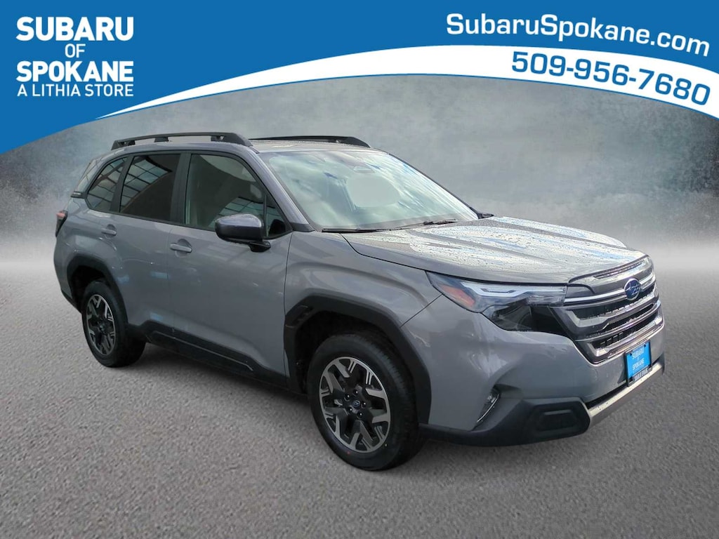 River Rock Pearl 2026 Subaru Forester Premium AWD Lineartronic CVT 2.5L 4-Cylinder DOHC 16V 4-Wheel Disc Brakes, 6 Speakers, ABS brakes, Air Conditioning, Alloy wheels, AM/FM radio: SiriusXM with 360L, Anti-whiplash front head restraints, Auto High-beam Headlights, Automatic temperature control, Brake assist, Bumpers: body-color, Driver door bin, Driver vanity mirror, Dual front impact airbags, Dual front side impact airbags, Electronic Stability Control, Emergency communication system: MySubaru Companion (5-years free), Exterior Parking Camera Rear, Four wheel independent suspension, Front anti-roll bar, Front Bucket Seats, Front Center Armrest, Front dual zone A/C, Front fog lights, Front reading lights, Fully automatic headlights, Heated door mirrors, Heated Front Bucket Seats, Heated front seats, Illuminated entry, Knee airbag, Leather steering wheel, Low tire pressure warning, Occupant sensing airbag, Outside temperature display, Overhead airbag, Overhead console, Panic alarm, Passenger door bin, Passenger vanity mirror, Power door mirrors, Power driver seat, Power moonroof: Panoramic, Power steering, Power windows, Premium Textured Cloth Upholstery, Radio data system, Radio: Subaru 11.6 Multimedia Plus System, Rear anti-roll bar, Rear seat center armrest, Rear window defroster, Rear window wiper, Remote keyless entry, Security system, Speed control, Speed-sensing steering, Split folding rear seat, Spoiler, Steering wheel mounted audio controls, Tachometer, Telescoping steering wheel, Tilt steering wheel, Traction control, Trip computer, Variably intermittent wipers, Wheels: 17 x 7.0 J Dark Metallic Aluminum-Alloy.