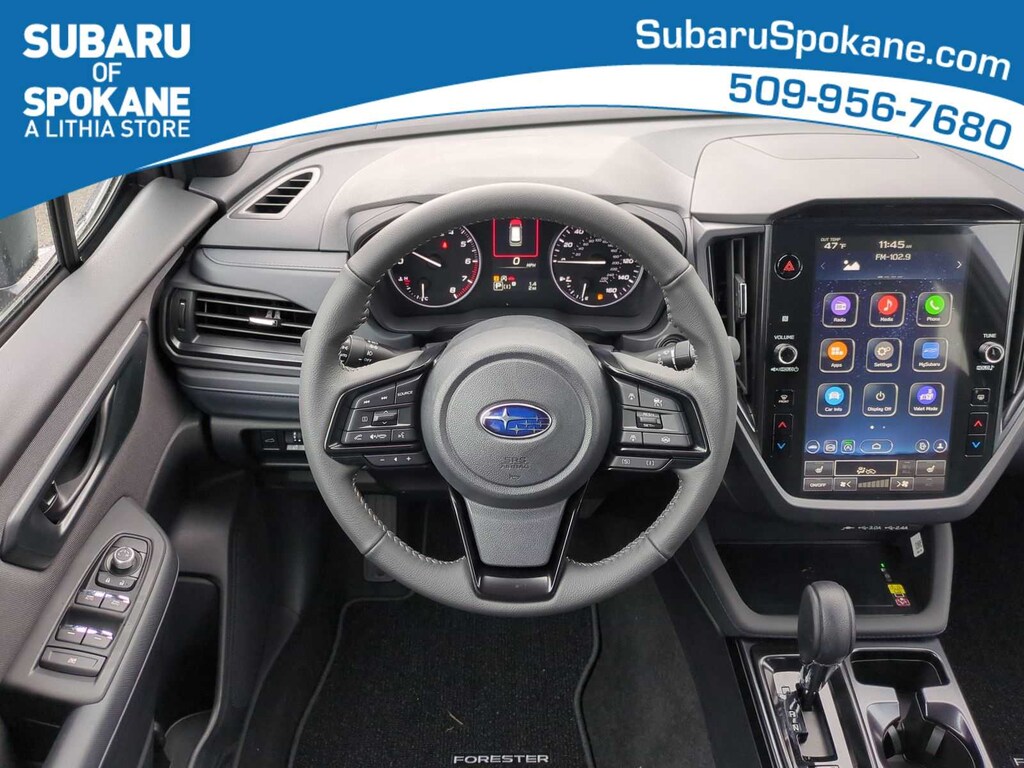 Mgm 2026 Subaru Forester Premium AWD Lineartronic CVT 2.5L 4-Cylinder DOHC 16V 4-Wheel Disc Brakes, 6 Speakers, ABS brakes, Air Conditioning, Alloy wheels, AM/FM radio: SiriusXM with 360L, Anti-whiplash front head restraints, Auto High-beam Headlights, Auto-Dimming Exterior Mirror with Approach Light, Auto-Dimming Mirror with Compass and HomeLink, Automatic Emergency Steering, Automatic temperature control, Blind-Spot Detection (BSD)/RCTA System, Brake assist, Bumpers: body-color, Driver door bin, Driver vanity mirror, Dual front impact airbags, Dual front side impact airbags, Electronic Stability Control, Emergency communication system: MySubaru Companion (5-years free), Emergency Lane Keep Assist, Exterior Parking Camera Rear, Four wheel independent suspension, Front anti-roll bar, Front Bucket Seats, Front Center Armrest, Front dual zone A/C, Front fog lights, Front reading lights, Fully automatic headlights, Heated door mirrors, Heated Front Bucket Seats, Heated front seats, Illuminated entry, Knee airbag, Leather steering wheel, Low tire pressure warning, Occupant sensing airbag, Outside temperature display, Overhead airbag, Overhead console, Panic alarm, Passenger door bin, Passenger vanity mirror, Power door mirrors, Power driver seat, Power moonroof: Panoramic, Power Rear Gate, Power Rear Gate and Blind Spot Detection with Rear Cross Traffic Alert, Power steering, Power windows, Premium Textured Cloth Upholstery, Radio data system, Radio: Subaru 11.6 Multimedia Plus System, Rear anti-roll bar, Rear seat center armrest, Rear window defroster, Rear window wiper, Remote keyless entry, Security system, Speed control, Speed-sensing steering, Split folding rear seat, Spoiler, Steering wheel mounted audio controls, Tachometer, Telescoping steering wheel, Tilt steering wheel, Traction control, Trip computer, Variably intermittent wipers, Wheels: 17 x 7.0 J Dark Metallic Aluminum-Alloy.