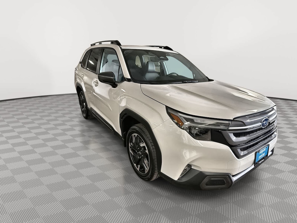 Crystal White Pearl 2026 Subaru Forester Limited AWD Lineartronic CVT 2.5L 4-Cylinder DOHC 16V 4-Wheel Disc Brakes, 6 Speakers, ABS brakes, Air Conditioning, Alloy wheels, AM/FM radio: SiriusXM with 360L, Anti-whiplash front head restraints, Auto High-beam Headlights, Auto-Dimming Mirror with Compass and HomeLink, Automatic temperature control, Body Side Molding - Crystal White Pearl, Brake assist, Bumpers: body-color, Cargo Tray, Driver door bin, Driver vanity mirror, Dual front impact airbags, Dual front side impact airbags, Electronic Stability Control, Emergency communication system: MySubaru Companion (5-years free), Exterior Parking Camera Rear, Four wheel independent suspension, Front anti-roll bar, Front Bucket Seats, Front Center Armrest, Front dual zone A/C, Front fog lights, Front reading lights, Fully automatic headlights, Harman/Kardon Speaker System and Navigation and Reverse Automatic Braking, Heated door mirrors, Heated Front Bucket Seats, Heated front seats, Heated steering wheel, Illuminated entry, Knee airbag, Leather steering wheel, LED Upgrade, Low tire pressure warning, Occupant sensing airbag, Outside temperature display, Overhead airbag, Overhead console, Panic alarm, Passenger door bin, Passenger vanity mirror, Perforated Leather-Trimmed Upholstery, Power door mirrors, Power driver seat, Power Liftgate, Power moonroof: Panoramic, Power passenger seat, Power steering, Power windows, Radio data system, Radio: Subaru 11.6 Multimedia Navigation System, Radio: Subaru 11.6 Multimedia Plus System, Rain sensing wipers, Rear anti-roll bar, Rear seat center armrest, Rear window defroster, Rear window wiper, Remote keyless entry, Reverse Automatic Braking (RAB) System, Security system, Speed control, Speed-sensing steering, Splash Guards, Split folding rear seat, Spoiler, Steering wheel mounted audio controls, Tachometer, Telescoping steering wheel, Tilt steering wheel, Traction control, Trip computer, Turn signal indicator mirrors, Variably intermittent wipers, Wheels: 18 x 7.0 J Dark Metallic Aluminum-Alloy.