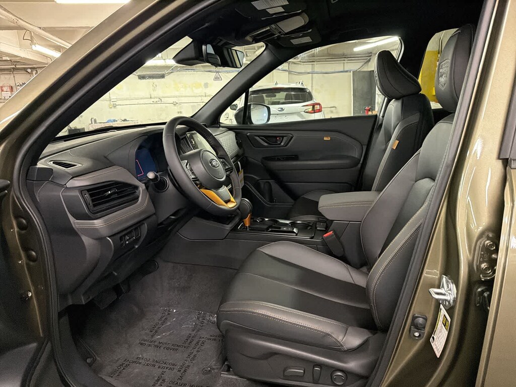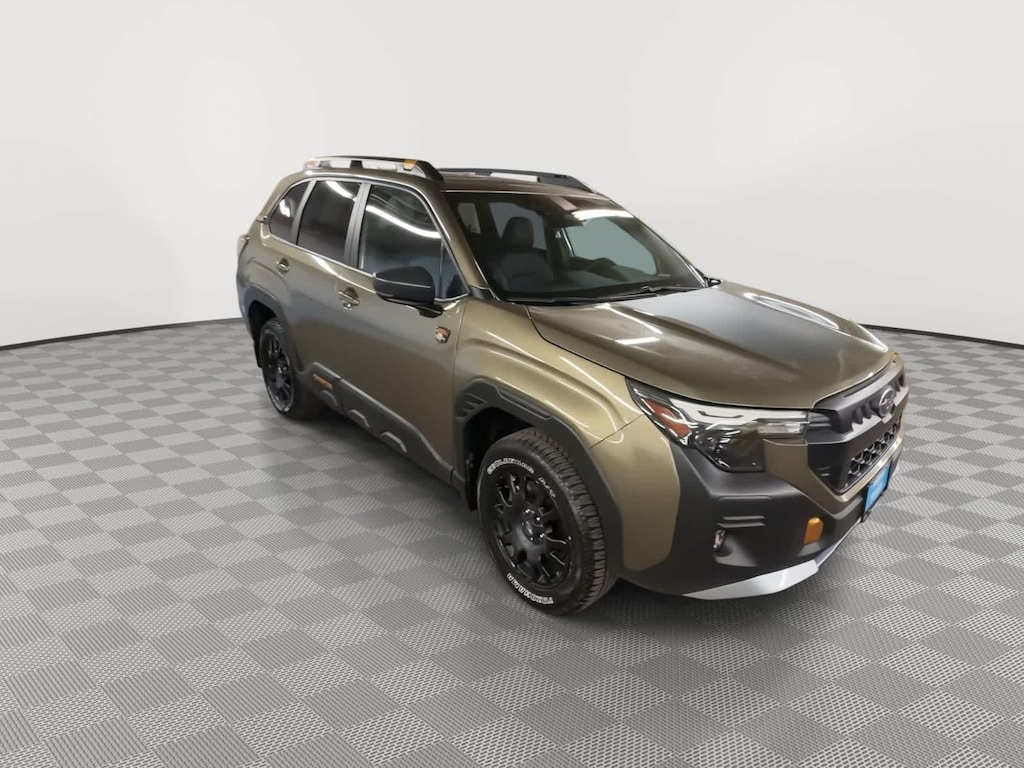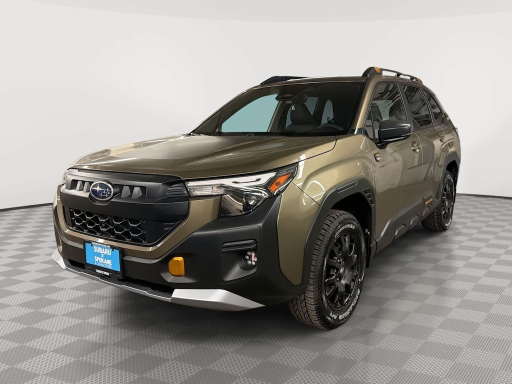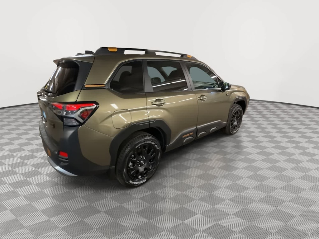 Autumn Green Metallic 2026 Subaru Forester Wilderness AWD Lineartronic CVT 2.5L 4-Cylinder DOHC 16V 4-Wheel Disc Brakes, 6 Speakers, ABS brakes, Air Conditioning, Alloy wheels, AM/FM radio: SiriusXM with 360L, Anti-whiplash front head restraints, Auto High-beam Headlights, Automatic temperature control, Brake assist, Bumpers: body-color, Driver door bin, Driver vanity mirror, Dual front impact airbags, Dual front side impact airbags, Electronic Stability Control, Emergency communication system: MySubaru Companion (5-years free), Exterior Parking Camera Rear, Four wheel independent suspension, Front anti-roll bar, Front Bucket Seats, Front Center Armrest, Front dual zone A/C, Front fog lights, Front reading lights, Fully automatic headlights, Heated door mirrors, Heated Front Bucket Seats, Heated front seats, Illuminated entry, Knee airbag, Low tire pressure warning, Occupant sensing airbag, Outside temperature display, Overhead airbag, Overhead console, Panic alarm, Passenger door bin, Passenger vanity mirror, Power door mirrors, Power driver seat, Power moonroof: Panoramic, Power steering, Power windows, Radio data system, Radio: Subaru 11.6 Multimedia Plus System, Rain sensing wipers, Rear anti-roll bar, Rear seat center armrest, Rear window defroster, Rear window wiper, Remote keyless entry, Security system, Speed control, Speed-sensing steering, Split folding rear seat, Spoiler, Steering wheel mounted audio controls, Tachometer, Telescoping steering wheel, Textured StarTex Upholstery, Tilt steering wheel, Traction control, Trip computer, Turn signal indicator mirrors, Variably intermittent wipers, Wheels: 17 x 7.0 J Matte Black Finish Aluminum-Alloy.