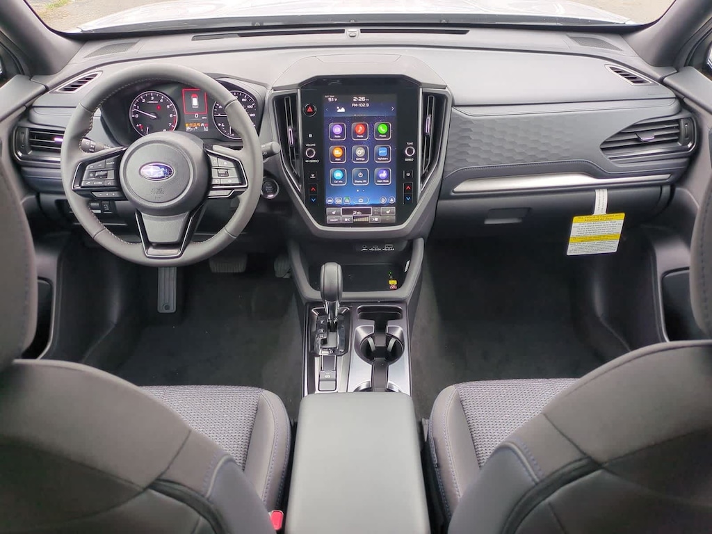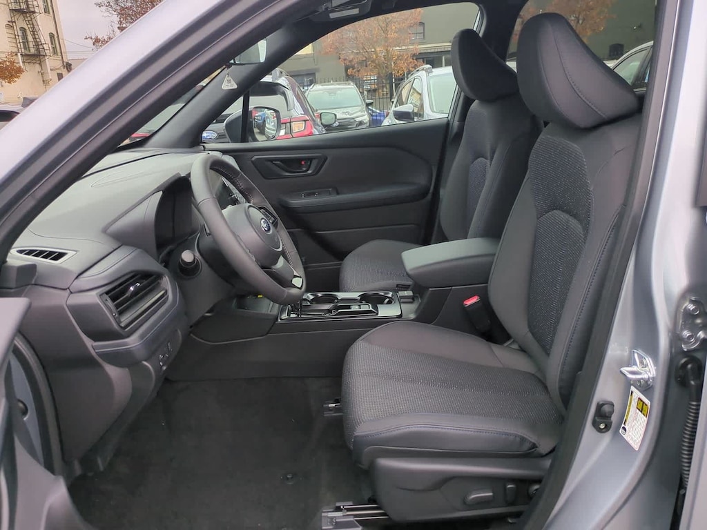 Ice Silver Metallic 2026 Subaru Forester Premium AWD Lineartronic CVT 2.5L 4-Cylinder DOHC 16V ABS brakes, Active Cruise Control, Alloy wheels, Electronic Stability Control, Front dual zone A/C, Heated door mirrors, Heated Front Bucket Seats, Heated front seats, Illuminated entry, Low tire pressure warning, Remote keyless entry, Traction control, 4-Wheel Disc Brakes, 6 Speakers, Air Conditioning, AM/FM radio: SiriusXM with 360L, Anti-whiplash front head restraints, Auto High-beam Headlights, Automatic temperature control, Brake assist, Bumpers: body-color, Driver door bin, Driver vanity mirror, Dual front impact airbags, Dual front side impact airbags, Emergency communication system: MySubaru Companion (5-years free), Exterior Parking Camera Rear, Four wheel independent suspension, Front anti-roll bar, Front Bucket Seats, Front Center Armrest, Front fog lights, Front reading lights, Fully automatic headlights, Knee airbag, Leather steering wheel, Occupant sensing airbag, Outside temperature display, Overhead airbag, Overhead console, Panic alarm, Passenger door bin, Passenger vanity mirror, Power door mirrors, Power driver seat, Power moonroof: Panoramic, Power steering, Power windows, Premium Textured Cloth Upholstery, Radio data system, Radio: Subaru 11.6 Multimedia Plus System, Rear anti-roll bar, Rear seat center armrest, Rear window defroster, Rear window wiper, Security system, Speed control, Speed-sensing steering, Split folding rear seat, Spoiler, Steering wheel mounted audio controls, Tachometer, Telescoping steering wheel, Tilt steering wheel, Trip computer, Variably intermittent wipers, Wheels: 17 x 7.0 J Dark Metallic Aluminum-Alloy, ABS brakes, Active Cruise Control, Alloy wheels, Electronic Stability Control, Front dual zone A/C, Heated door mirrors, Heated Front Bucket Seats, Heated front seats, Illuminated entry, Low tire pressure warning, Remote keyless entry, Traction control.