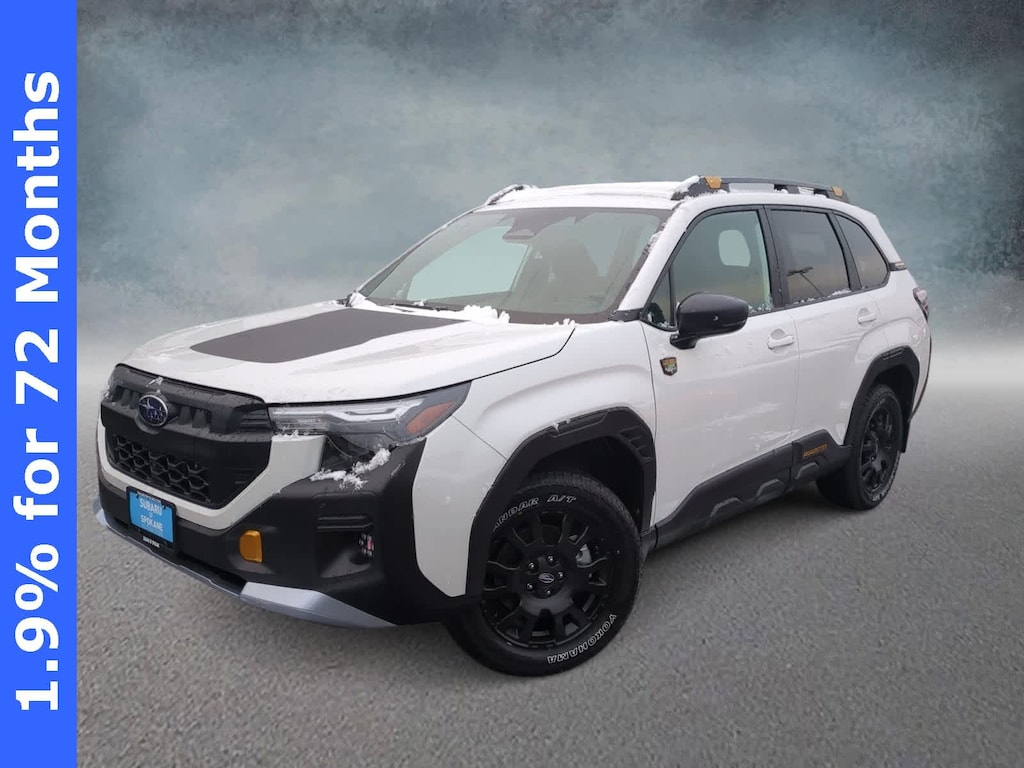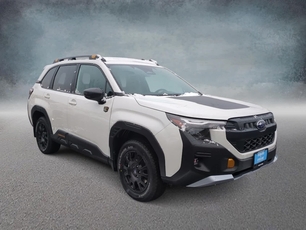 Crystal White Pearl 2026 Subaru Forester Wilderness AWD Lineartronic CVT 2.5L 4-Cylinder DOHC 16V ABS brakes, Active Cruise Control, Alloy wheels, Electronic Stability Control, Front dual zone A/C, Heated door mirrors, Heated Front Bucket Seats, Heated front seats, Illuminated entry, Low tire pressure warning, Remote keyless entry, Traction control, 4-Wheel Disc Brakes, 6 Speakers, Air Conditioning, AM/FM radio: SiriusXM with 360L, Anti-whiplash front head restraints, Auto High-beam Headlights, Automatic temperature control, Brake assist, Bumpers: body-color, Driver door bin, Driver vanity mirror, Dual front impact airbags, Dual front side impact airbags, Emergency communication system: MySubaru Companion (5-years free), Exterior Parking Camera Rear, Four wheel independent suspension, Front anti-roll bar, Front Bucket Seats, Front Center Armrest, Front fog lights, Front reading lights, Fully automatic headlights, Knee airbag, Occupant sensing airbag, Outside temperature display, Overhead airbag, Overhead console, Panic alarm, Passenger door bin, Passenger vanity mirror, Power door mirrors, Power driver seat, Power moonroof: Panoramic, Power steering, Power windows, Radio data system, Radio: Subaru 11.6 Multimedia Plus System, Rain sensing wipers, Rear anti-roll bar, Rear seat center armrest, Rear window defroster, Rear window wiper, Security system, Speed control, Speed-sensing steering, Split folding rear seat, Spoiler, Steering wheel mounted audio controls, Tachometer, Telescoping steering wheel, Textured StarTex Upholstery, Tilt steering wheel, Trip computer, Turn signal indicator mirrors, Variably intermittent wipers, Wheels: 17 x 7.0 J Matte Black Finish Aluminum-Alloy, ABS brakes, Active Cruise Control, Alloy wheels, Electronic Stability Control, Front dual zone A/C, Heated door mirrors, Heated Front Bucket Seats, Heated front seats, Illuminated entry, Low tire pressure warning, Remote keyless entry, Traction control.