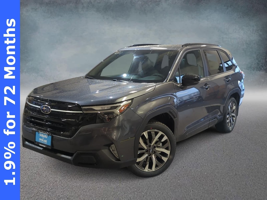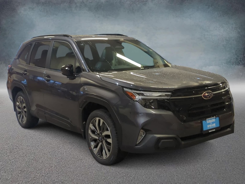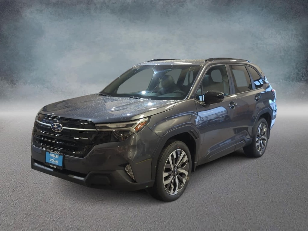 Gray 2026 Subaru Forester Touring AWD Lineartronic CVT 2.5L 4-Cylinder DOHC 16V ABS brakes, Active Cruise Control, Alloy wheels, Electronic Stability Control, Front dual zone A/C, Heated door mirrors, Heated front seats, Heated rear seats, Illuminated entry, Low tire pressure warning, Navigation System, Power Liftgate, Remote keyless entry, Traction control, 11 Speakers, 4-Wheel Disc Brakes, Air Conditioning, AM/FM radio: SiriusXM with 360L, Anti-whiplash front head restraints, Auto High-beam Headlights, Automatic temperature control, Brake assist, Bumpers: body-color, Driver door bin, Driver vanity mirror, Dual front impact airbags, Dual front side impact airbags, Emergency communication system: MySubaru Companion (5-years free), Exterior Parking Camera Rear, Four wheel independent suspension, Front anti-roll bar, Front Bucket Seats, Front Center Armrest, Front fog lights, Front reading lights, Fully automatic headlights, harman/kardonî Speakers, Heads-Up Display, Heated and Ventilated Front Bucket Seats, Heated steering wheel, HVAC memory, Knee airbag, Leather Shift Knob, Leather steering wheel, Memory seat, Occupant sensing airbag, Outside temperature display, Overhead airbag, Overhead console, Panic alarm, Passenger door bin, Passenger vanity mirror, Perforated Leather-Trimmed Upholstery, Power door mirrors, Power driver seat, Power moonroof: Panoramic, Power passenger seat, Power steering, Power windows, Radio data system, Radio: Subaru 11.6 Multimedia Navigation System, Rain sensing wipers, Rear anti-roll bar, Rear seat center armrest, Rear window defroster, Rear window wiper, Security system, Speed control, Speed-sensing steering, Split folding rear seat, Spoiler, Steering wheel mounted audio controls, Tachometer, Telescoping steering wheel, Tilt steering wheel, Trip computer, Turn signal indicator mirrors, Variably intermittent wipers, Ventilated front seats, Wheels: 19 x 7.5 J Dark Gray Aluminum-Alloy, ABS brakes, Active Cruise Control, Alloy wheels, Electronic Stability Control, Front dual zone A/C, Heated door mirrors, Heated front seats, Heated rear seats, Illuminated entry, Low tire pressure warning, Navigation System, Power Liftgate, Remote keyless entry, Traction control.