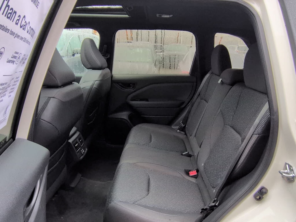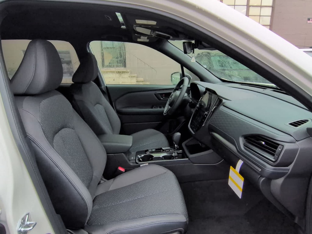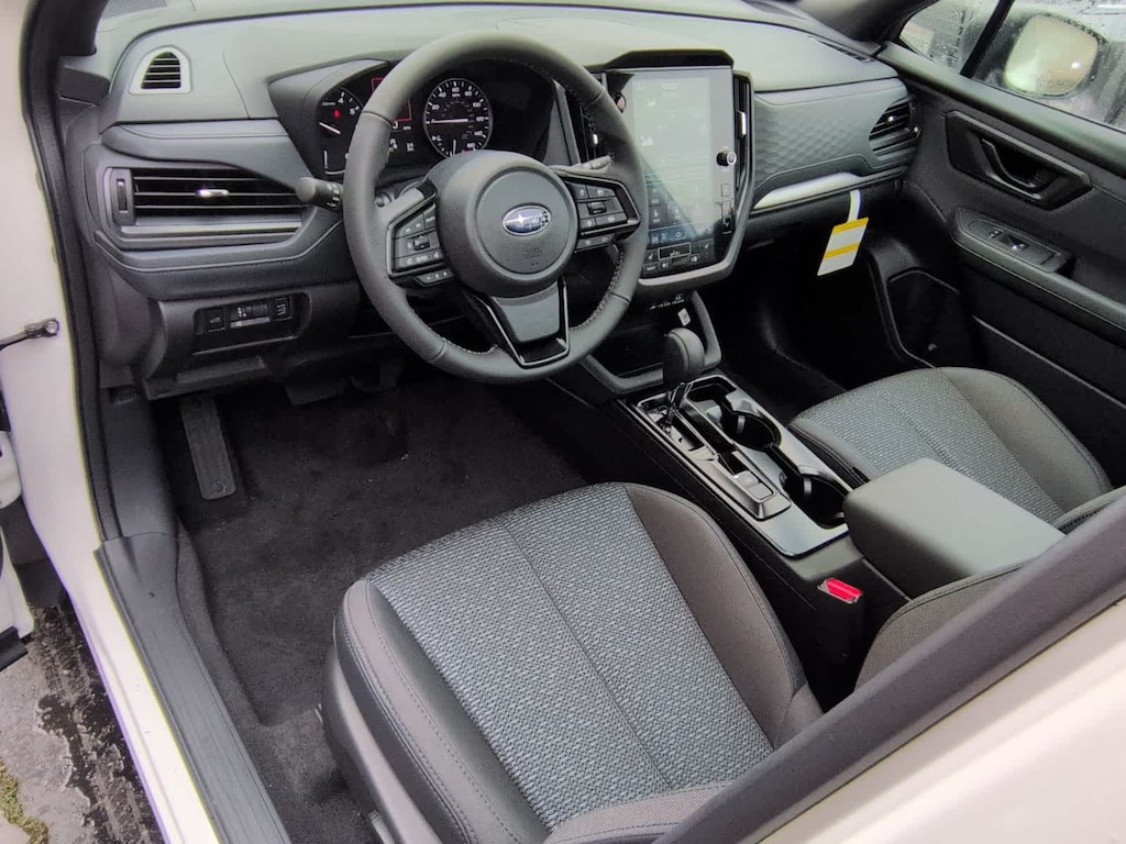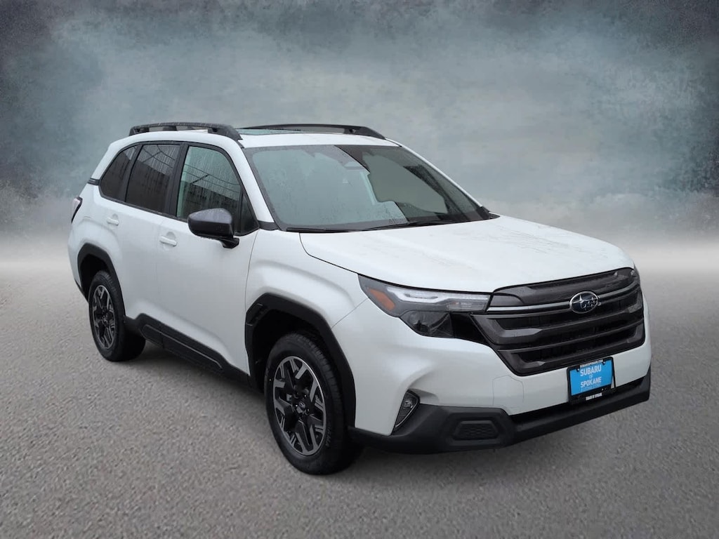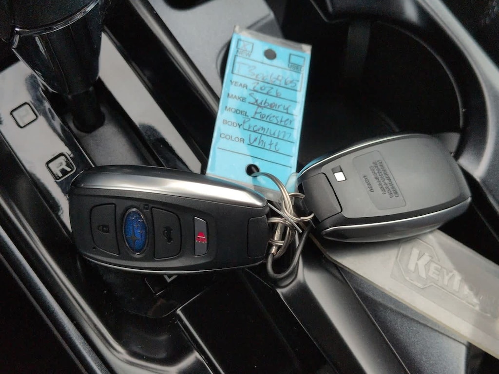Crystal White Pearl 2026 Subaru Forester Premium AWD Lineartronic CVT 2.5L 4-Cylinder DOHC 16V ABS brakes, Active Cruise Control, Alloy wheels, Electronic Stability Control, Front dual zone A/C, Heated door mirrors, Heated Front Bucket Seats, Heated front seats, Illuminated entry, Low tire pressure warning, Remote keyless entry, Traction control, 4-Wheel Disc Brakes, 6 Speakers, Air Conditioning, AM/FM radio: SiriusXM with 360L, Anti-whiplash front head restraints, Auto High-beam Headlights, Automatic temperature control, Brake assist, Bumpers: body-color, Driver door bin, Driver vanity mirror, Dual front impact airbags, Dual front side impact airbags, Emergency communication system: MySubaru Companion (5-years free), Exterior Parking Camera Rear, Four wheel independent suspension, Front anti-roll bar, Front Bucket Seats, Front Center Armrest, Front fog lights, Front reading lights, Fully automatic headlights, Knee airbag, Leather steering wheel, Occupant sensing airbag, Outside temperature display, Overhead airbag, Overhead console, Panic alarm, Passenger door bin, Passenger vanity mirror, Power door mirrors, Power driver seat, Power moonroof: Panoramic, Power steering, Power windows, Premium Textured Cloth Upholstery, Radio data system, Radio: Subaru 11.6 Multimedia Plus System, Rear anti-roll bar, Rear seat center armrest, Rear window defroster, Rear window wiper, Security system, Speed control, Speed-sensing steering, Split folding rear seat, Spoiler, Steering wheel mounted audio controls, Tachometer, Telescoping steering wheel, Tilt steering wheel, Trip computer, Variably intermittent wipers, Wheels: 17 x 7.0 J Dark Metallic Aluminum-Alloy, ABS brakes, Active Cruise Control, Alloy wheels, Electronic Stability Control, Front dual zone A/C, Heated door mirrors, Heated Front Bucket Seats, Heated front seats, Illuminated entry, Low tire pressure warning, Remote keyless entry, Traction control.
