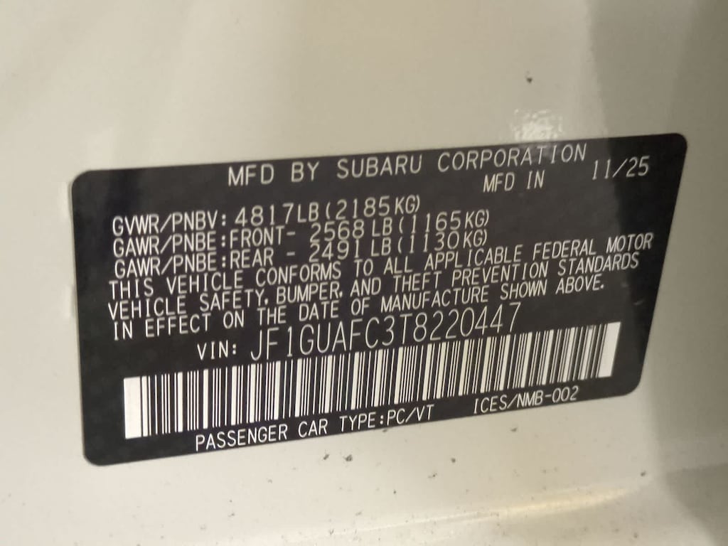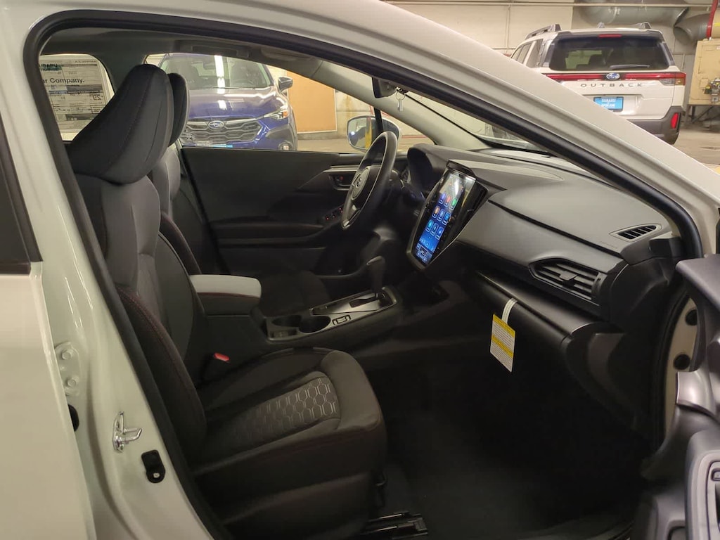 Crystal White Pearl 2026 Subaru Impreza Sport AWD CVT Lineartronic 2.0L DOHC 4-Wheel Disc Brakes, 6 Speakers, ABS brakes, Air Conditioning, All Weather Package, Alloy wheels, AM/FM radio: SiriusXM, Anti-whiplash front head restraints, Auto High-beam Headlights, Auto-Dimming Exterior Mirror with Approach Light, Auto-Dimming Mirror with Compass and HomeLink, Automatic Emergency Steering, Automatic temperature control, Blind Spot Detection (BSD), Blind Spot Detection and Rear Cross Traffic Alert and All Weather Package and Power Moonroof, Brake assist, Bumpers: body-color, Cargo Tray, Driver door bin, Driver vanity mirror, Dual front impact airbags, Dual front side impact airbags, Dual-Mode Heated Front Seats, Electronic Stability Control, Emergency communication system: MySubaru Companion (5-years free), Emergency Lane Keep Assist, Exterior Parking Camera Rear, Four wheel independent suspension, Front anti-roll bar, Front Bucket Seats, Front Center Armrest, Front dual zone A/C, Front fog lights, Front reading lights, Fully automatic headlights, Heated Exterior Power Mirrors, Illuminated entry, Knee airbag, Low tire pressure warning, Occupant sensing airbag, Outside temperature display, Overhead airbag, Overhead console, Panic alarm, Passenger door bin, Passenger vanity mirror, Power door mirrors, Power Moonroof, Power steering, Power windows, Radio data system, Radio: Subaru 11.6 Multimedia Plus System, Rear anti-roll bar, Rear Cross-Traffic Alert (RCTA) System, Rear seat center armrest, Rear side impact airbag, Rear window defroster, Rear window wiper, Remote keyless entry, Security system, Speed control, Speed-sensing steering, Splash Guards, Split folding rear seat, Spoiler, Sport Cloth Upholstery, Steering wheel mounted audio controls, Sun Visors with Vanity Mirror and Lights, Tachometer, Telescoping steering wheel, Tilt steering wheel, Traction control, Trip computer, Turn signal indicator mirrors, Variably intermittent wipers, Wheels: 18 x 7.5 Jdark Gray Aluminum-Alloy, Windshield Wiper De-Icer.