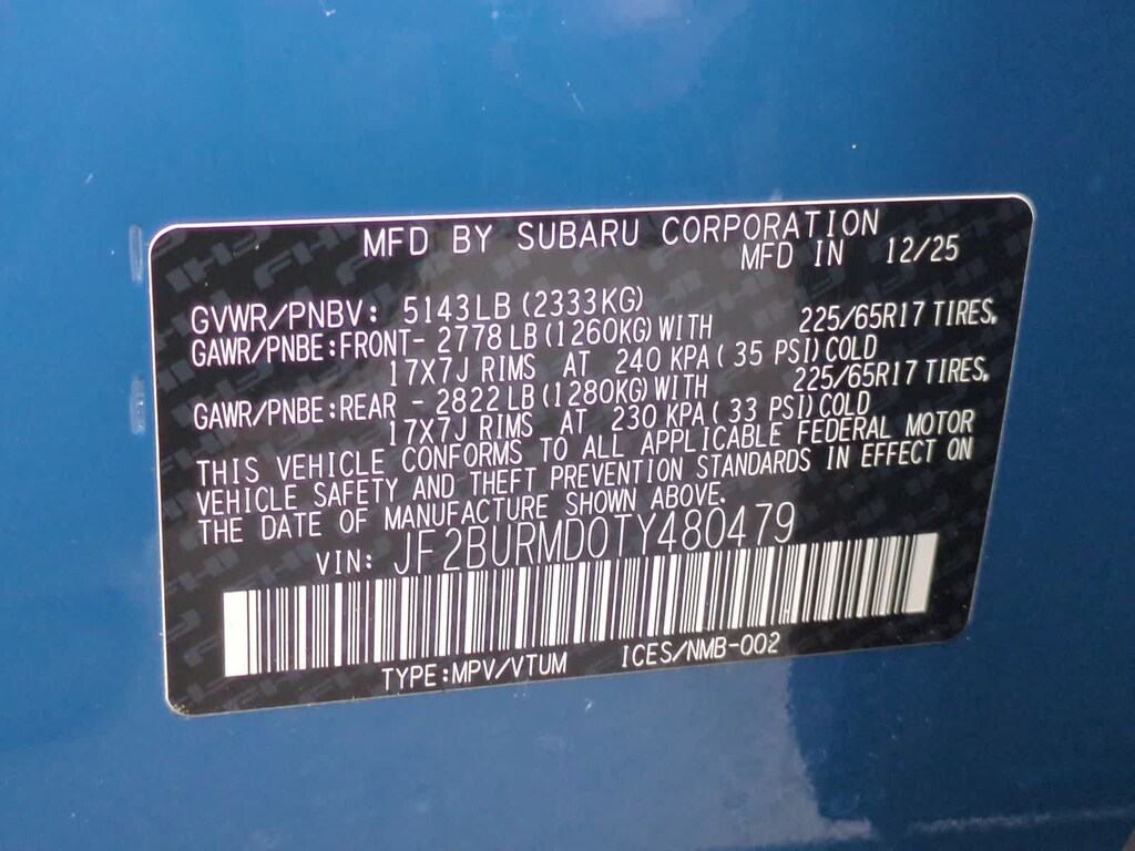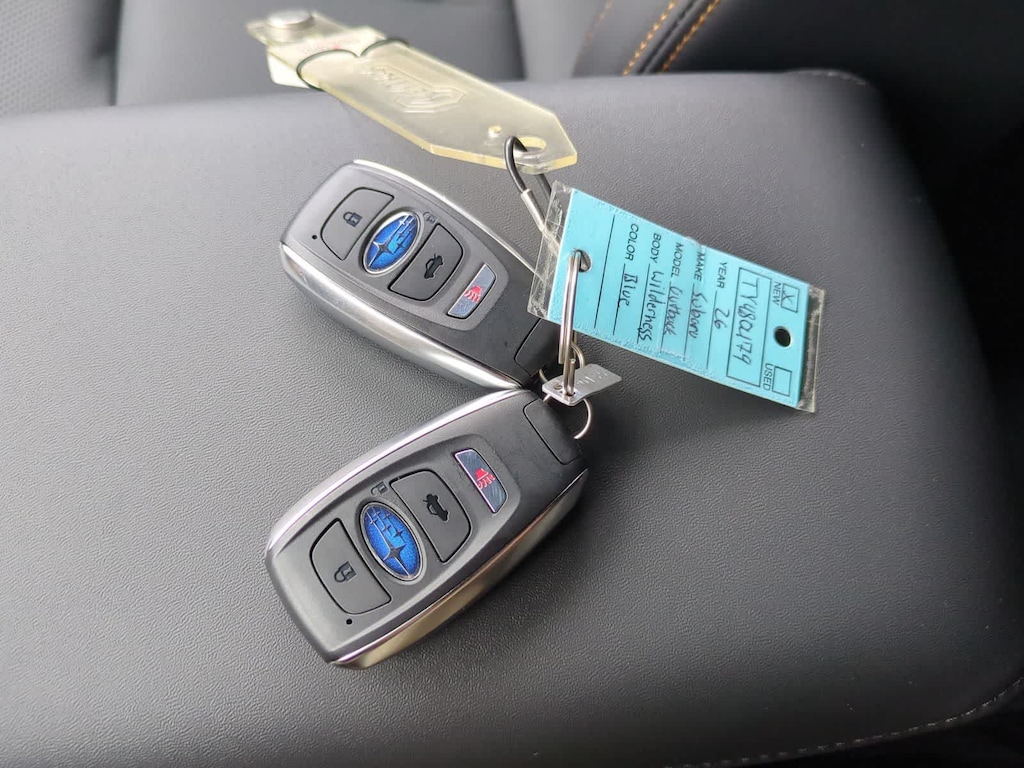 Geyser Blue 2026 Subaru Outback Wilderness AWD CVT Lineartronic 2.4L 4-Cylinder DOHC 16V 12 Speakers, 4-Wheel Disc Brakes, ABS brakes, Air Conditioning, Alloy wheels, AM/FM radio: SiriusXM with 360L, Anti-whiplash front head restraints, Auto High-beam Headlights, Automatic temperature control, Blind Spot Warning, Brake assist, Bumpers: body-color, Driver door bin, Driver vanity mirror, Dual front impact airbags, Dual front side impact airbags, Electronic Stability Control, Emergency communication system: MySubaru Companion (5-years free), Exterior Parking Camera Rear, Four wheel independent suspension, Front anti-roll bar, Front Bucket Seats, Front Center Armrest w/Storage, Front dual zone A/C, Front fog lights, Front reading lights, Fully automatic headlights, harman/kardonî Speakers, Heated door mirrors, Heated Front Bucket Seats, Heated front seats, Heated rear seats, Heated steering wheel, HVAC memory, Illuminated entry, Knee airbag, Leather Shift Knob, Leather steering wheel, Low tire pressure warning, Occupant sensing airbag, Outside temperature display, Overhead airbag, Overhead console, Panic alarm, Passenger door bin, Passenger vanity mirror, Power door mirrors, Power driver seat, Power Liftgate, Power steering, Power windows, Radio: Subaru 12.1 Multimedia System, Rain sensing wipers, Rear anti-roll bar, Rear seat center armrest, Rear window defroster, Rear window wiper, Remote keyless entry, Security system, Speed control, Speed-sensing steering, Split folding rear seat, Spoiler, StarTex-Trimmed Upholstery, Steering wheel mounted audio controls, Tachometer, Telescoping steering wheel, Tilt steering wheel, Traction control, Trip computer, Turn signal indicator mirrors, Variably intermittent wipers, Wheels: 17 x 7J Matte Black Finish Aluminum-Alloy.