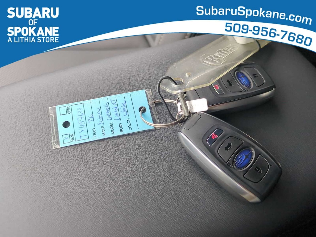 White 2026 Subaru Outback Limited XT AWD CVT Lineartronic 2.4L 4-Cylinder DOHC 16V 12 Speakers, 4-Wheel Disc Brakes, ABS brakes, Air Conditioning, Alloy wheels, AM/FM radio: SiriusXM with 360L, Anti-whiplash front head restraints, Auto High-beam Headlights, Automatic temperature control, Blind Spot Warning, Brake assist, Bumpers: body-color, Compass, Driver door bin, Driver vanity mirror, Dual front impact airbags, Dual front side impact airbags, Electronic Stability Control, Emergency communication system: MySubaru Companion (5-years free), Exterior Parking Camera Rear, Four wheel independent suspension, Front anti-roll bar, Front Bucket Seats, Front Center Armrest w/Storage, Front dual zone A/C, Front fog lights, Front reading lights, Fully automatic headlights, harman/kardonî Speakers, Heated door mirrors, Heated Front Bucket Seats, Heated front seats, Heated rear seats, Heated steering wheel, HVAC memory, Illuminated entry, Knee airbag, Leather steering wheel, Low tire pressure warning, Memory seat, Navigation system: MySubaru Navigator (1-year trial), Occupant sensing airbag, Outside temperature display, Overhead airbag, Overhead console, Panic alarm, Passenger door bin, Passenger vanity mirror, Perforated Leather-Trimmed Upholstery, Power door mirrors, Power driver seat, Power Liftgate, Power moonroof, Power passenger seat, Power steering, Power windows, Radio: Subaru 12.1 Multimedia System with Navigation, Rain sensing wipers, Rear anti-roll bar, Rear seat center armrest, Rear window defroster, Rear window wiper, Remote keyless entry, Security system, Speed control, Speed-sensing steering, Split folding rear seat, Spoiler, Steering wheel mounted audio controls, Tachometer, Telescoping steering wheel, Tilt steering wheel, Traction control, Trip computer, Turn signal indicator mirrors, Variably intermittent wipers, Wheels: 19 x 7J Black Finish Aluminum-Alloy.