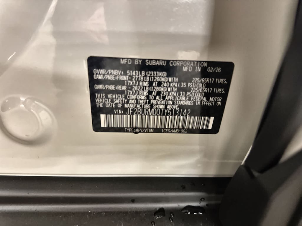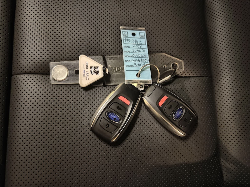 Crystal White Pearl 2026 Subaru Outback Wilderness AWD CVT Lineartronic 2.4L 4-Cylinder DOHC 16V 12 Speakers, 4-Wheel Disc Brakes, ABS brakes, Air Conditioning, Alloy wheels, AM/FM radio: SiriusXM with 360L, Anti-whiplash front head restraints, Auto High-beam Headlights, Automatic temperature control, Blind Spot Warning, Brake assist, Bumpers: body-color, Driver door bin, Driver vanity mirror, Dual front impact airbags, Dual front side impact airbags, Electronic Stability Control, Emergency communication system: MySubaru Companion (5-years free), Exterior Parking Camera Rear, Four wheel independent suspension, Front anti-roll bar, Front Bucket Seats, Front Center Armrest w/Storage, Front dual zone A/C, Front fog lights, Front reading lights, Fully automatic headlights, harman/kardonî Speakers, Heated door mirrors, Heated Front Bucket Seats, Heated front seats, Heated rear seats, Heated steering wheel, HVAC memory, Illuminated entry, Knee airbag, Leather Shift Knob, Leather steering wheel, Low tire pressure warning, Occupant sensing airbag, Outside temperature display, Overhead airbag, Overhead console, Panic alarm, Passenger door bin, Passenger vanity mirror, Power door mirrors, Power driver seat, Power Liftgate, Power steering, Power windows, Radio: Subaru 12.1 Multimedia System, Rain sensing wipers, Rear anti-roll bar, Rear seat center armrest, Rear window defroster, Rear window wiper, Remote keyless entry, Security system, Speed control, Speed-sensing steering, Split folding rear seat, Spoiler, StarTex-Trimmed Upholstery, Steering wheel mounted audio controls, Tachometer, Telescoping steering wheel, Tilt steering wheel, Traction control, Trip computer, Turn signal indicator mirrors, Variably intermittent wipers, Wheels: 17 x 7J Matte Black Finish Aluminum-Alloy.