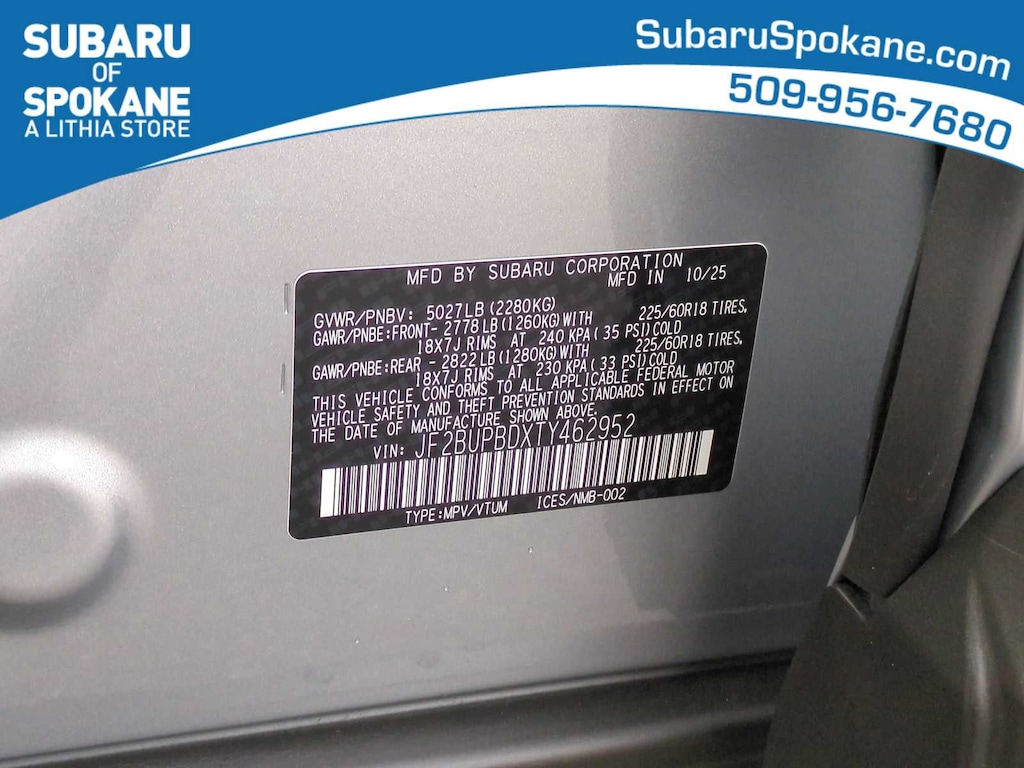 Ice Silver Metallic 2026 Subaru Outback Premium AWD CVT Lineartronic 2.5L 4-Cylinder DOHC 16V 4-Wheel Disc Brakes, 6 Speakers, ABS brakes, Air Conditioning, Alloy wheels, AM/FM radio: SiriusXM with 360L, Anti-whiplash front head restraints, Auto High-beam Headlights, Automatic temperature control, Blind Spot Warning, Brake assist, Bumpers: body-color, Driver door bin, Driver vanity mirror, Dual front impact airbags, Dual front side impact airbags, Electronic Stability Control, Emergency communication system: MySubaru Companion (5-years free), Exterior Parking Camera Rear, Four wheel independent suspension, Front anti-roll bar, Front Bucket Seats, Front Center Armrest w/Storage, Front dual zone A/C, Front fog lights, Front reading lights, Fully automatic headlights, Heated door mirrors, Heated Front Bucket Seats, Heated front seats, HVAC memory, Illuminated entry, Knee airbag, Leather steering wheel, Low tire pressure warning, Occupant sensing airbag, Outside temperature display, Overhead airbag, Overhead console, Panic alarm, Passenger door bin, Passenger vanity mirror, Power door mirrors, Power driver seat, Power Liftgate, Power steering, Power windows, Radio: Subaru 12.1 Multimedia System, Rear anti-roll bar, Rear seat center armrest, Rear window defroster, Rear window wiper, Remote keyless entry, Security system, Speed control, Speed-sensing steering, Split folding rear seat, Spoiler, StarTex Upholstery, Steering wheel mounted audio controls, Tachometer, Telescoping steering wheel, Tilt steering wheel, Traction control, Trip computer, Turn signal indicator mirrors, Variably intermittent wipers, Wheels: 18 x 7J Aluminum-Alloy.