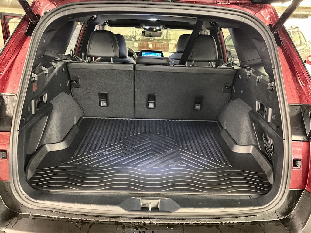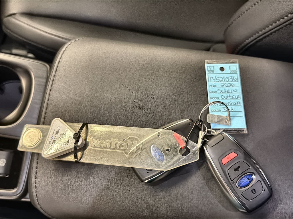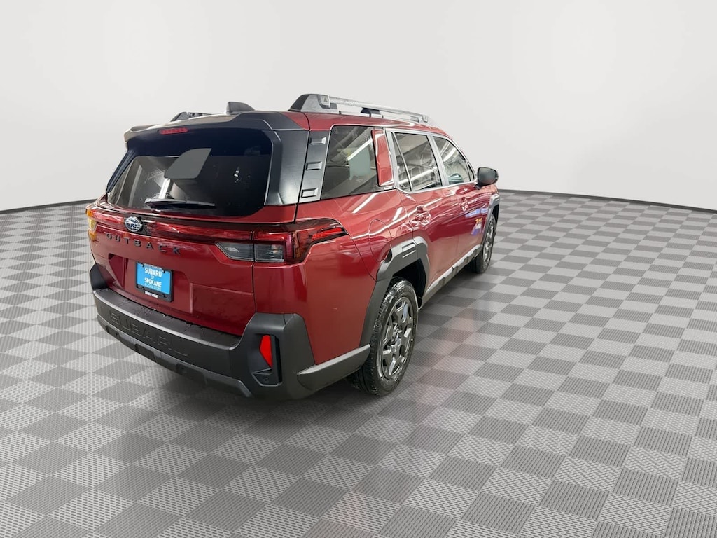 Crimson Red Pearl 2026 Subaru Outback Premium AWD CVT Lineartronic 2.5L 4-Cylinder DOHC 16V 4-Wheel Disc Brakes, 6 Speakers, ABS brakes, Air Conditioning, Alloy wheels, AM/FM radio: SiriusXM with 360L, Anti-whiplash front head restraints, Auto High-beam Headlights, Automatic temperature control, Blind Spot Warning, Brake assist, Bumpers: body-color, Driver door bin, Driver vanity mirror, Dual front impact airbags, Dual front side impact airbags, Electronic Stability Control, Emergency communication system: MySubaru Companion (5-years free), Exterior Parking Camera Rear, Four wheel independent suspension, Front anti-roll bar, Front Bucket Seats, Front Center Armrest w/Storage, Front dual zone A/C, Front fog lights, Front reading lights, Fully automatic headlights, Heated door mirrors, Heated Front Bucket Seats, Heated front seats, HVAC memory, Illuminated entry, Knee airbag, Leather steering wheel, Low tire pressure warning, Occupant sensing airbag, Outside temperature display, Overhead airbag, Overhead console, Panic alarm, Passenger door bin, Passenger vanity mirror, Power door mirrors, Power driver seat, Power Liftgate, Power steering, Power windows, Radio: Subaru 12.1 Multimedia System, Rear anti-roll bar, Rear seat center armrest, Rear window defroster, Rear window wiper, Remote keyless entry, Security system, Speed control, Speed-sensing steering, Split folding rear seat, Spoiler, StarTex Upholstery, Steering wheel mounted audio controls, Tachometer, Telescoping steering wheel, Tilt steering wheel, Traction control, Trip computer, Turn signal indicator mirrors, Variably intermittent wipers, Wheels: 18 x 7J Aluminum-Alloy.