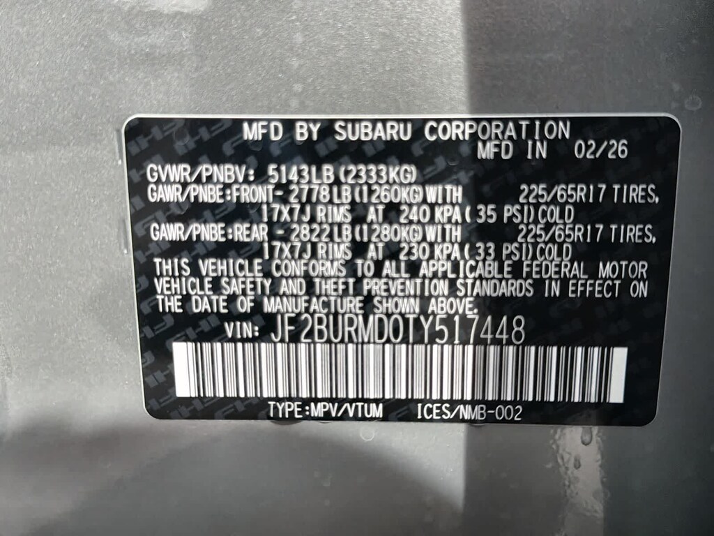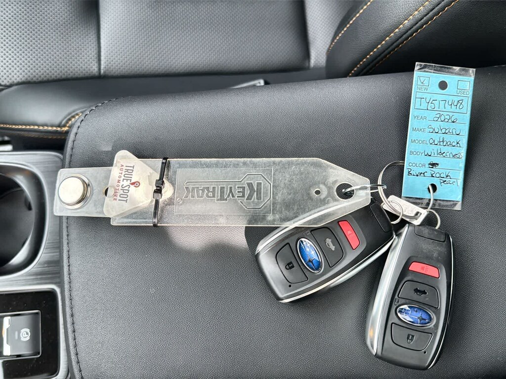 River Rock Pearl 2026 Subaru Outback Wilderness AWD CVT Lineartronic 2.4L 4-Cylinder DOHC 16V 12 Speakers, 4-Wheel Disc Brakes, ABS brakes, Air Conditioning, Alloy wheels, AM/FM radio: SiriusXM with 360L, Anti-whiplash front head restraints, Auto High-beam Headlights, Automatic temperature control, Blind Spot Warning, Brake assist, Bumpers: body-color, Driver door bin, Driver vanity mirror, Dual front impact airbags, Dual front side impact airbags, Electronic Stability Control, Emergency communication system: MySubaru Companion (5-years free), Exterior Parking Camera Rear, Four wheel independent suspension, Front anti-roll bar, Front Bucket Seats, Front Center Armrest w/Storage, Front dual zone A/C, Front fog lights, Front reading lights, Fully automatic headlights, harman/kardonî Speakers, Heated door mirrors, Heated Front Bucket Seats, Heated front seats, Heated rear seats, Heated steering wheel, HVAC memory, Illuminated entry, Knee airbag, Leather Shift Knob, Leather steering wheel, Low tire pressure warning, Occupant sensing airbag, Outside temperature display, Overhead airbag, Overhead console, Panic alarm, Passenger door bin, Passenger vanity mirror, Power door mirrors, Power driver seat, Power Liftgate, Power steering, Power windows, Radio: Subaru 12.1 Multimedia System, Rain sensing wipers, Rear anti-roll bar, Rear seat center armrest, Rear window defroster, Rear window wiper, Remote keyless entry, Security system, Speed control, Speed-sensing steering, Split folding rear seat, Spoiler, StarTex-Trimmed Upholstery, Steering wheel mounted audio controls, Tachometer, Telescoping steering wheel, Tilt steering wheel, Traction control, Trip computer, Turn signal indicator mirrors, Variably intermittent wipers, Wheels: 17 x 7J Matte Black Finish Aluminum-Alloy.