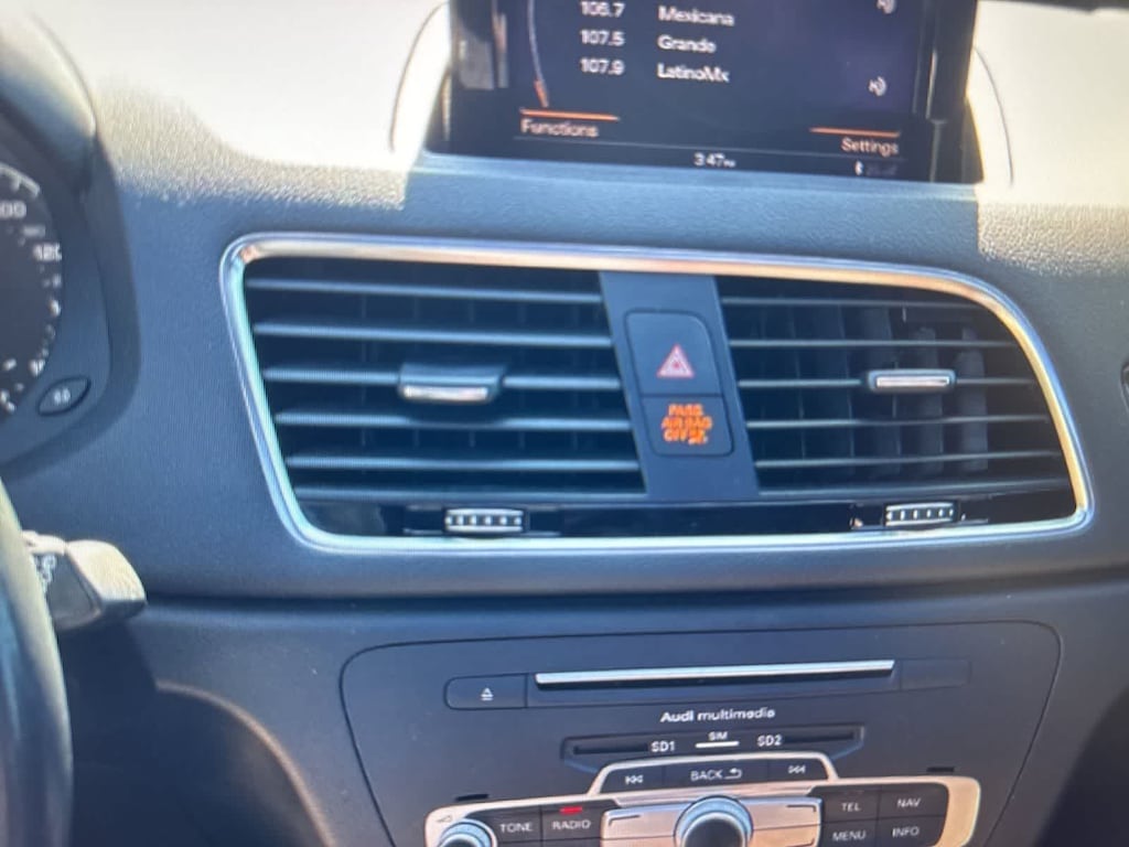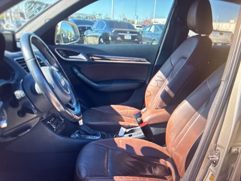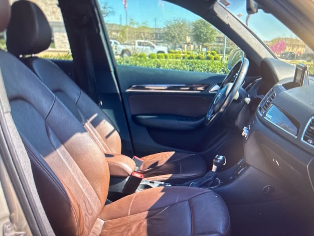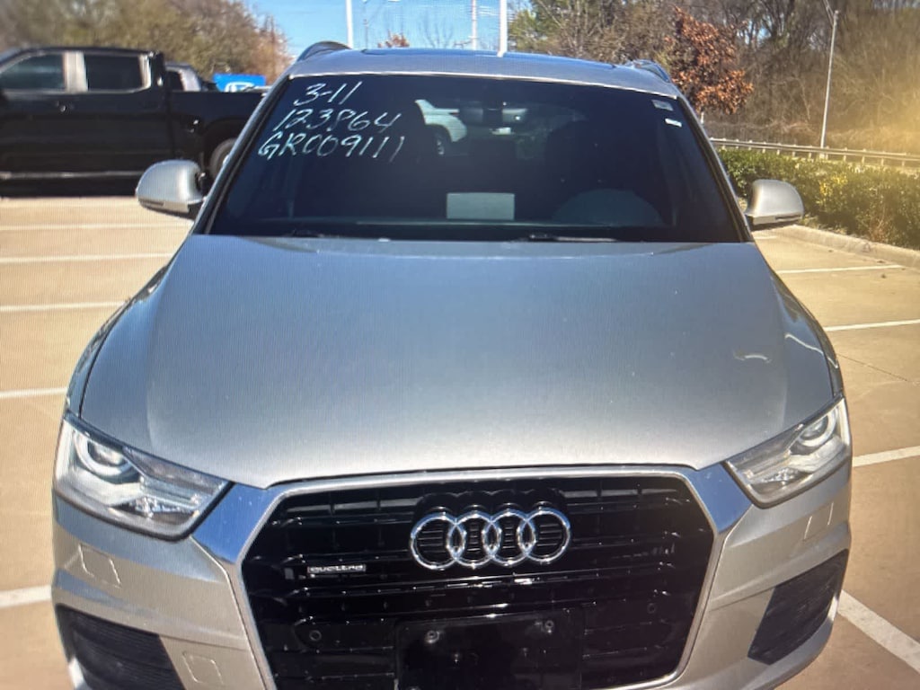 Silver Metallic 2016 Audi Q3 2.0T Premium Plus quattro quattro 6-Speed Automatic with Tiptronic 2.0L 4-Cylinder TFSI 10 Speakers, 4-Wheel Disc Brakes, ABS brakes, Air Conditioning, Alloy wheels, AM/FM radio, Audi Connect w/Online Services, Audi Side Assist, Auto-dimming Rear-View mirror, Automatic temperature control, Axle Ratio: TBD, Balsamic Brown Walnut Decorative Wood Inlays, Black Cloth Headliner, Black Homelink, Brake assist, Bumpers: body-color, CD player, Color Driver Information System w/Trip Computer, Compass, Delay-off headlights, Driver door bin, Driver vanity mirror, Dual front impact airbags, Dual front side impact airbags, Electronic Stability Control, Exterior Parking Camera Rear, First Aid Kit, Four wheel independent suspension, Front anti-roll bar, Front Bucket Seats, Front Center Armrest, Front dual zone A/C, Front fog lights, Front reading lights, Fully automatic headlights, Heated Front Seats, Heated front seats, High intensity discharge headlights: Xenon plus, Illuminated entry, Leather Seating Surfaces, Leather Shift Knob, Leather steering wheel, Low tire pressure warning, Occupant sensing airbag, Outside temperature display, Overhead airbag, Overhead console, Panic alarm, Passenger door bin, Passenger vanity mirror, Power door mirrors, Power driver seat, Power moonroof, Power passenger seat, Power steering, Power Tailgate, Power windows, Radio data system, Radio: Audi Concert, Radio: MMI Navigation Plus, Rain sensing wipers, Rear anti-roll bar, Rear fog lights, Rear reading lights, Rear seat center armrest, Rear window defroster, Rear window wiper, Remote keyless entry, Roof rack: rails only, Security system, Speed control, Speed-sensing steering, Split folding rear seat, Spoiler, Steering wheel mounted audio controls, Tachometer, Technology Package, Telescoping steering wheel, Tilt steering wheel, Traction control, Trip computer, Turn signal indicator mirrors, Variably intermittent wipers, Wheels: 7.0 x 18 5-Arm Turbine Design, Wheels: 8.5 x 19 5-Double-Spoke-Design.