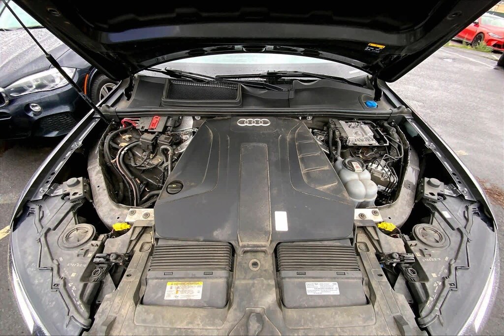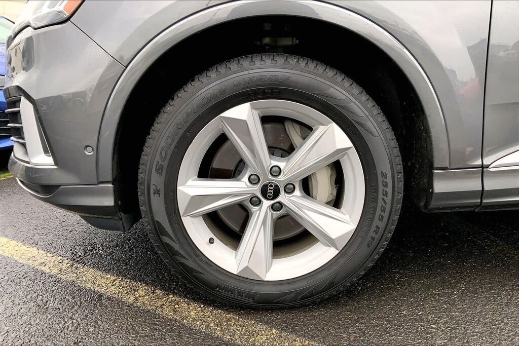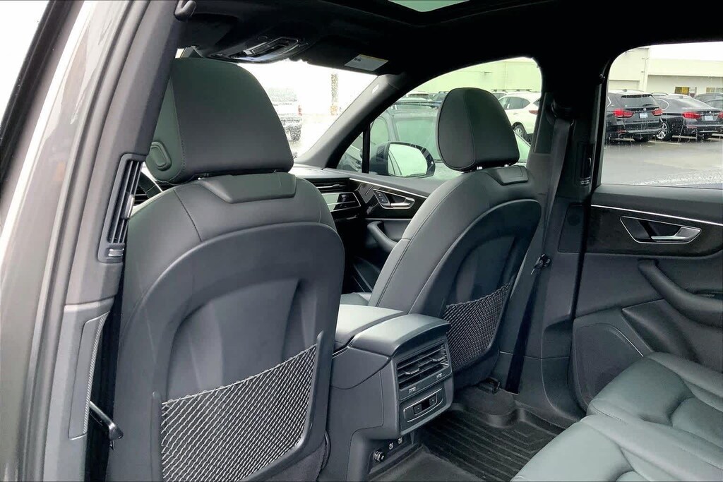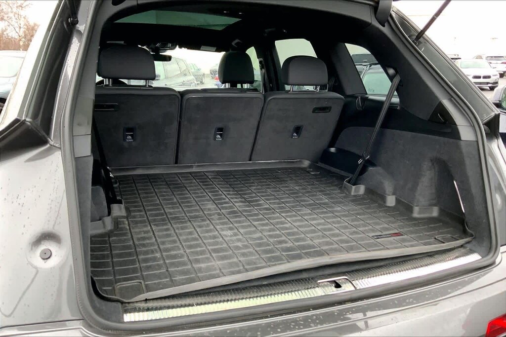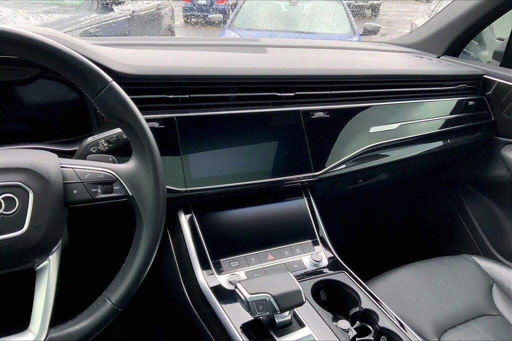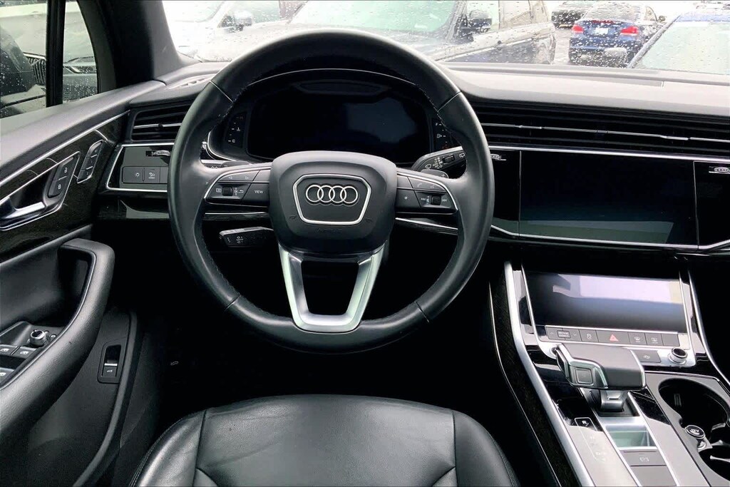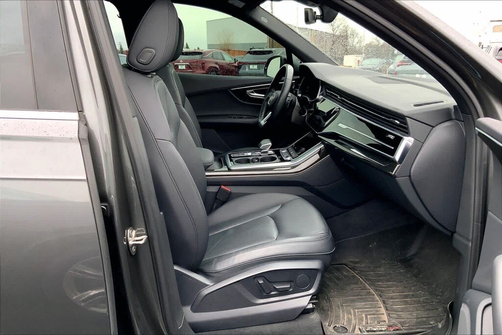 Clean CARFAX. Gray Metallic 2021 Audi Q7 45 Premium quattro quattro 8-Speed Automatic with Tiptronic 2.0L 4-Cylinder TFSI 10 Speakers, 3-Spoke Multifunction Steering Wheel w/Paddles, 3.76 Axle Ratio, 3rd row seats: bench, 4-Wheel Disc Brakes, ABS brakes, Air Conditioning, Alloy wheels, AM/FM radio: SiriusXM, Ambient Interior Lighting Package, Audi Guard Protection Kit, Audi Phone Box w/Wireless Charging, Audi smartphone interface (Apple CarPlay/Android Auto), Auto High-beam Headlights, Auto-dimming Rear-View mirror, Automatic temperature control, Black Cloth Headliner, Brake assist, Bumpers: body-color, Compass, Convenience Package, Delay-off headlights, Driver door bin, Driver vanity mirror, Dual front impact airbags, Dual front side impact airbags, Electronic Stability Control, Emergency communication system: Audi connect CARE, PRIME & PLUS, Exterior Parking Camera Rear, Four wheel independent suspension, Front & Rear Doors Audi Beam-Rings, Front anti-roll bar, Front Bucket Seats, Front Center Armrest, Front dual zone A/C, Front fog lights, Front reading lights, Fully automatic headlights, Garage door transmitter: HomeLink, Genuine wood door panel insert, Heated Auto-Dimming Power Folding Exterior Mirrors, Heated door mirrors, Heated Front Bucket Seats, Heated front seats, Illuminated entry, Leather Seating Surfaces, Leather Shift Knob, Leather steering wheel, Low tire pressure warning, Memory seat, Navigation system: Audi MMI Navigation plus with Touch Response, Occupant sensing airbag, Outside temperature display, Overhead airbag, Overhead console, Panic alarm, Passenger door bin, Passenger vanity mirror, Power door mirrors, Power driver seat, Power Liftgate, Power moonroof, Power passenger seat, Power steering, Power windows, Privacy Trunk Cover, Radio data system, Radio: Audi Sound System, Rain sensing wipers, Rear air conditioning, Rear anti-roll bar, Rear fog lights, Rear reading lights, Rear seat center armrest, Rear window defroster, Rear window wiper, Reclining 3rd row seat, Remote keyless entry, Roof rack: rails only, Security system, Speed control, Speed-sensing steering, Split folding rear seat, Spoiler, Steering wheel memory, Steering wheel mounted audio controls, Tachometer, Telescoping steering wheel, Tilt steering wheel, Topview Camera System, Traction control, Trip computer, Turn signal indicator mirrors, USB Cables, Variably intermittent wipers, Wheels: 19 5-Arm-Star Design.