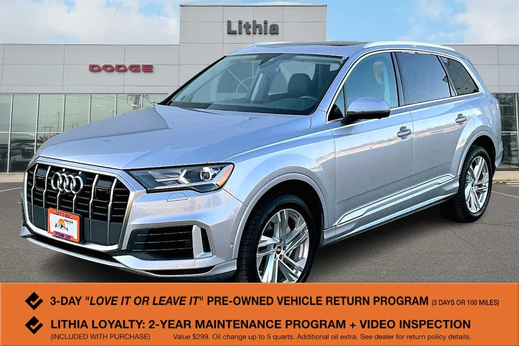 Experience refined power and precision engineering in this 2022 Audi Q7 Premium Plus, finished in Florett Silver Metallic. With quattroî all-wheel drive and a suite of advanced features, this luxury SUV delivers confidence and sophistication for every mile.