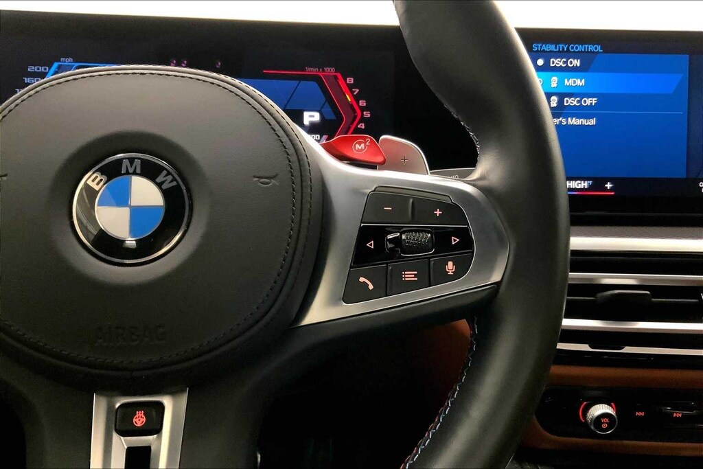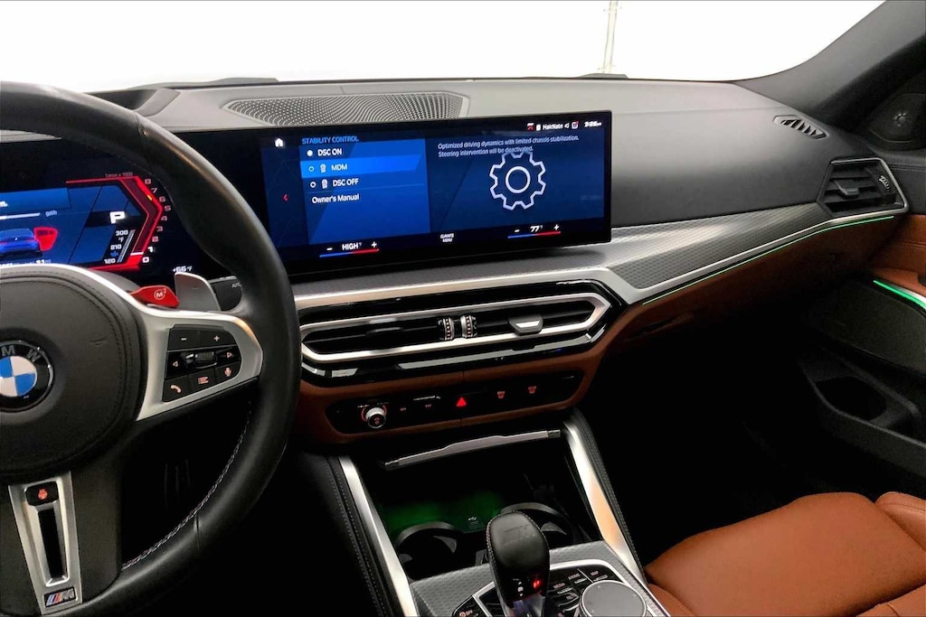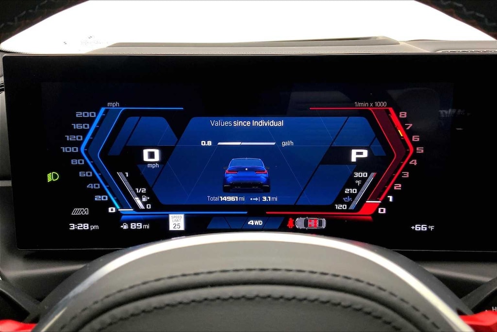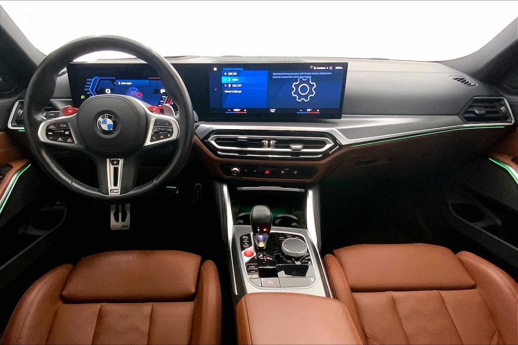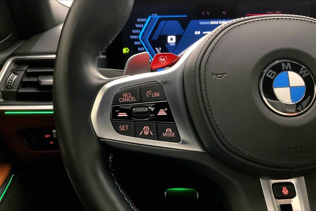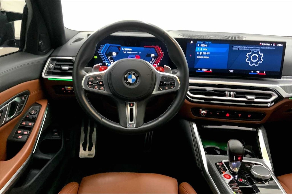 CARFAX One-Owner. Clean CARFAX. Portimao Blue Metallic 2023 BMW M3 Competition AWD 8-Speed Automatic Steptronic 3.0L I6 Turbocharged DOHC 24V LEV3-ULEV70 503hp 16 Speakers, 4-Wheel Disc Brakes, ABS brakes, Active Driving Assistant Pro, Adaptive suspension, Air Conditioning, Alloy wheels, AM/FM radio: SiriusXM, Apple CarPlay & Android Auto Compatibility, Auto High-beam Headlights, Auto-dimming door mirrors, Auto-dimming Rear-View mirror, Automatic temperature control, BMW Assist eCall, BMW Curved Display, BMW Head Up Display, BMW TeleServices, Brake assist, Bumpers: body-color, Compass, Connected Package Pro, ConnectedDrive Services, Delay-off headlights, Drive Recorder, Driver door bin, Driver vanity mirror, Driving Assistance Professional Package, Dual front impact airbags, Dual front side impact airbags, Electronic Stability Control, Emergency communication system: BMW Assist eCall, Enhanced USB & Bluetooth Plus Smartphone Integration, Executive Package, Extended Merino Leather Upholstery, Extended Traffic Jam Assistant, Exterior Parking Camera Rear, Four wheel independent suspension, Front anti-roll bar, Front Bucket Seats, Front Center Armrest, Front dual zone A/C, Front reading lights, Front Ventilated Seats, Fully automatic headlights, Garage door transmitter, harman/kardon Surround Sound System, harman/kardonî Speakers, Heated door mirrors, Heated Front Seats, Heated front seats, Heated Steering Wheel, Icon Adaptive LED Headlights w/Laserlight, Illuminated entry, Knee airbag, Leather Shift Knob, Low tire pressure warning, Lumbar Support, M Drive Professional, M Drivers Package, M Shadowline Lights, M Sport Seats, Memory seat, Navigation System, Occupant sensing airbag, Outside temperature display, Overhead airbag, Panic alarm, Parking Assistance Package, Parking Assistant Plus, Passenger door bin, Passenger vanity mirror, Personal eSIM 5G, Power door mirrors, Power driver seat, Power Front Seats, Power passenger seat, Power steering, Power Tailgate, Power windows, Radio data system, Radio: AM/FM Audio System, Rain sensing wipers, Rear air conditioning, Rear anti-roll bar, Rear reading lights, Rear window defroster, Remote Engine Start, Remote keyless entry, Security system, SensaTec Dashboard, SiriusXM Satellite Radio w/1 Year Subscription, Speed control, Speed-sensing steering, Speed-Sensitive Wipers, Split folding rear seat, Spoiler, Sport steering wheel, Steering wheel mounted audio controls, Tachometer, Telescoping steering wheel, Tilt steering wheel, Traction control, Trip computer, Turn signal indicator mirrors, Variably intermittent wipers, Wheels: 19x9.5 Fr.&20x10.5Rr. M Bi-color (1T8), Wireless Device Charging.