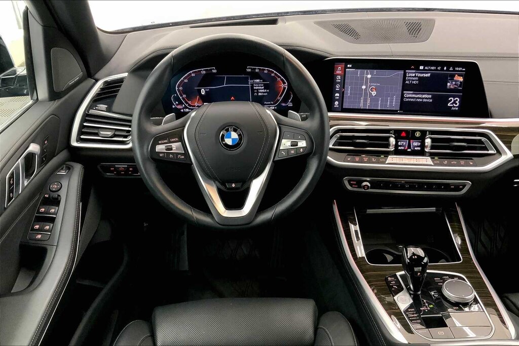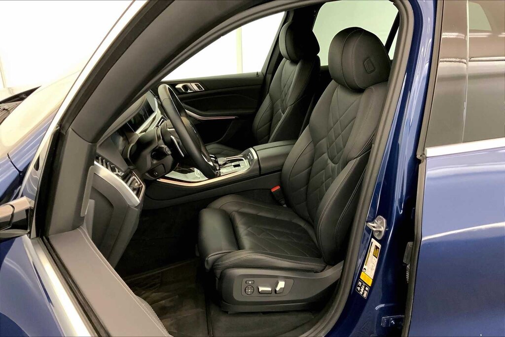 Clean CARFAX. Phytonic Blue Metallic 2023 BMW X5 xDrive40i AWD 8-Speed Automatic Sport 3.0L I6 DOHC 24V TwinPower Turbo Black Black Sensafin, 10 Speakers, 3.39 Axle Ratio, 4-Wheel Disc Brakes, 4-Zone Automatic Climate Control, ABS brakes, Active Park Distance Control, Air Conditioning, Alloy wheels, AM/FM radio: SiriusXM with 360L, AM/FM Stereo, Auto High-beam Headlights, Auto tilt-away steering wheel, Auto-dimming door mirrors, Auto-dimming Rear-View mirror, Automatic temperature control, BMW Assist eCall, BMW TeleServices, Brake assist, Bumpers: body-color, Climate Comfort Package, Compass, Connected Package Pro, ConnectedDrive Services, Delay-off headlights, Drive Recorder, Driver door bin, Driver Lumbar Support Only (DISC), Driver vanity mirror, Dual front impact airbags, Dual front side impact airbags, Electronic Stability Control, Emergency communication system: BMW Assist eCall, Enhanced USB & Bluetooth w/Smartphone Integration, Exterior Parking Camera Rear, Four wheel independent suspension, Front & Rear Heated Seats, Front anti-roll bar, Front Bucket Seats, Front Center Armrest, Front dual zone A/C, Front reading lights, Fully automatic headlights, Garage door transmitter, Genuine wood console insert, Genuine wood dashboard insert, Genuine wood door panel insert, harman/kardon Surround Sound System, Head restraints memory, Head-Up Display, Heated door mirrors, Heated Front Seats, Heated front seats, Heated Front Seats w/Armrests & Steering Wheel, Hi-Fi Sound System, Illuminated entry, Knee airbag, Leather Shift Knob, Leather steering wheel, Live Cockpit Pro w/Navigation, Low tire pressure warning, Lumbar Support, Memory seat, Navigation System, Occupant sensing airbag, Outside temperature display, Overhead airbag, Panic alarm, Parking Assistance Package, Parking Assistant Plus, Passenger door bin, Passenger vanity mirror, Power adjustable front head restraints, Power door mirrors, Power driver seat, Power Front Seats, Power moonroof, Power passenger seat, Power steering, Power windows, Premium Package, Radio data system, Rain sensing wipers, Rear anti-roll bar, Rear reading lights, Rear seat center armrest, Rear window defroster, Rear window wiper, Rear-View Camera, Remote Engine Start, Remote keyless entry, Security system, Sensafin Upholstery, SiriusXM Satellite Radio, Speed control, Speed-sensing steering, Speed-Sensitive Wipers, Split folding rear seat, Spoiler, Sport Seats, Sport steering wheel, Steering wheel mounted audio controls, Surround View w/3D View, Tachometer, Telescoping steering wheel, Tilt steering wheel, Traction control, Trip computer, Turn signal indicator mirrors, Variably intermittent wipers, Wheels: 19 x 9 V-Spoke, WiFi Hotspot, Wireless Charging, Black Black Sensafin.