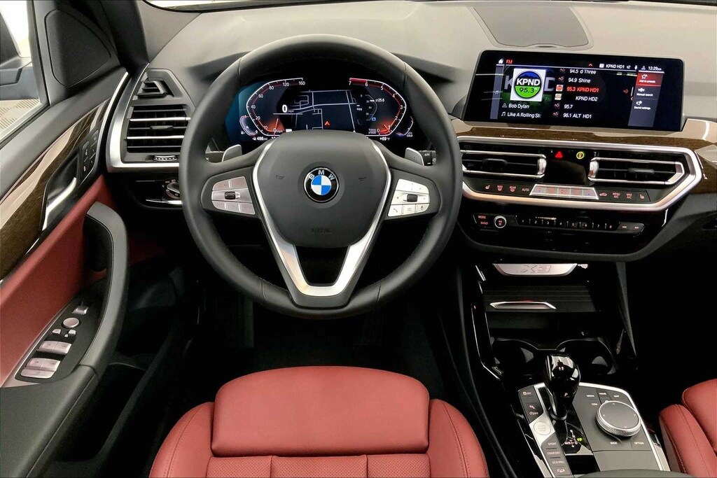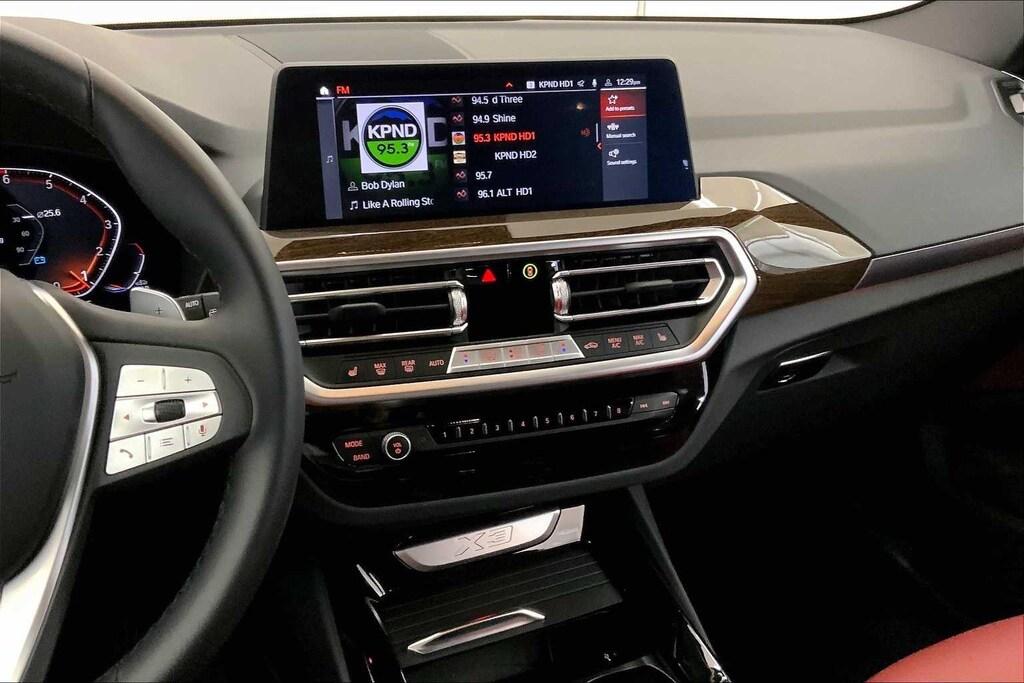 CARFAX One-Owner. Clean CARFAX. Skyscraper Gray Metallic 2024 BMW X3 xDrive30i AWD 8-Speed Automatic Sport I4 8-Speed Automatic Sport, 12 Speakers, 3.385 Axle Ratio, 4-Wheel Disc Brakes, ABS brakes, Air Conditioning, Alloy wheels, AM/FM Radio, AM/FM radio: SiriusXM, Apple CarPlay & Android Auto Compatibility, Auto High-beam Headlights, Auto-dimming door mirrors, Auto-dimming Rear-View mirror, Automatic temperature control, BMW Assist eCall, BMW TeleServices, Brake assist, Bumpers: body-color, Connected Package Pro, ConnectedDrive Services, Delay-off headlights, Driver door bin, Driver vanity mirror, Dual front impact airbags, Dual front side impact airbags, Electronic Stability Control, Emergency communication system: BMW Assist eCall, Enhanced USB & Bluetooth w/Smartphone Integration, Exterior Parking Camera Rear, Four wheel independent suspension, Front anti-roll bar, Front Bucket Seats, Front Center Armrest, Front dual zone A/C, Front reading lights, Fully automatic headlights, Garage door transmitter, Genuine wood dashboard insert, Genuine wood door panel insert, Heated door mirrors, Heated Front Seats, Hi-Fi Sound System, Illuminated entry, Knee airbag, Leather steering wheel, Low tire pressure warning, Memory seat, Navigation, Navigation System, Occupant sensing airbag, Outside temperature display, Overhead airbag, Panic alarm, Panoramic Moonroof (ZPA), Passenger door bin, Passenger vanity mirror, Perforated SensaTec Upholstery, Power door mirrors, Power driver seat, Power Front Seats, Power Liftgate, Power passenger seat, Power steering, Power windows, Radio data system, Rain sensing wipers, Rear air conditioning, Rear anti-roll bar, Rear reading lights, Rear seat center armrest, Rear window defroster, Rear window wiper, Remote Engine Start, Remote keyless entry, Security system, SiriusXM w/360L & 1 Yr Platinum Plan Subscription, Speed control, Speed-sensing steering, Speed-Sensitive Wipers, Split folding rear seat, Spoiler, Sport Seats, Sport steering wheel, Steering wheel mounted audio controls, Tachometer, Telescoping steering wheel, Tilt steering wheel, Traction control, Trip computer, Turn signal indicator mirrors, Variably intermittent wipers, Wheels: 19 x 7.5 Y-Spoke (Style 693), Wheels: 19 x 7.5 Y-Spoke Ferric Grey (Style 693), WiFi Hotspot, 8-Speed Automatic Sport.
