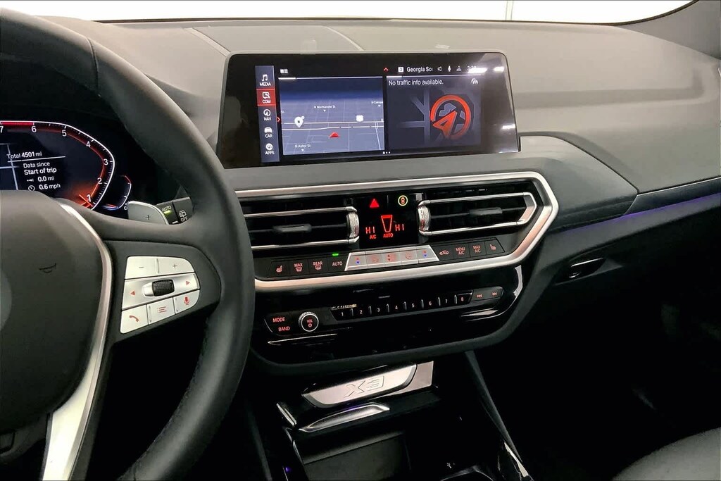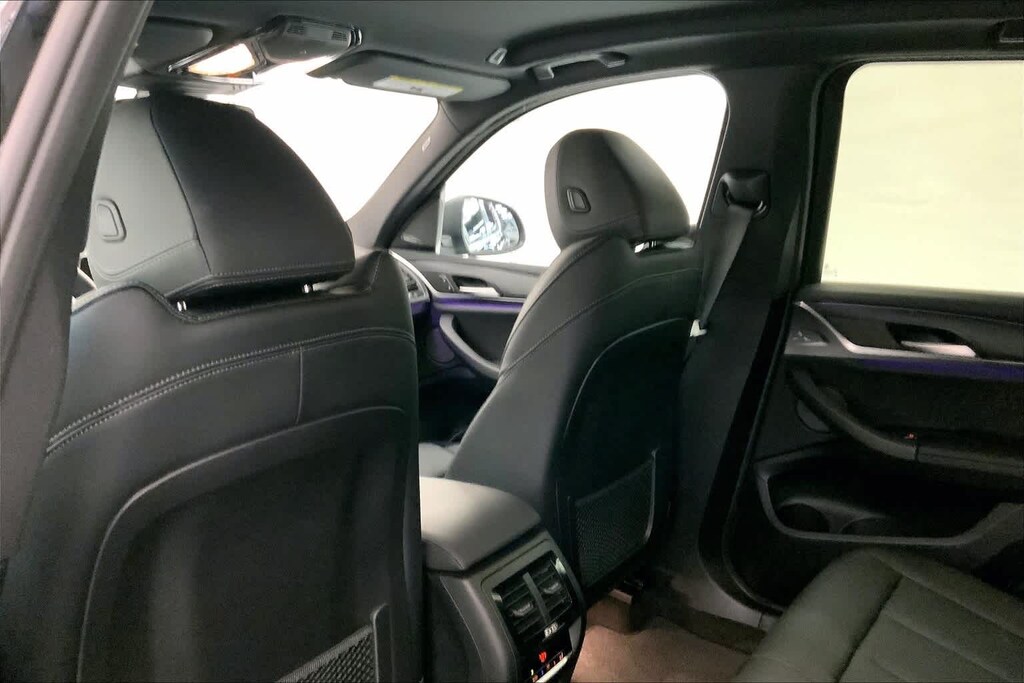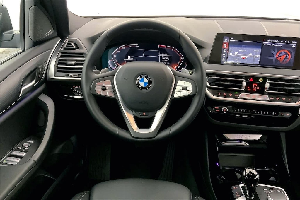 CARFAX One-Owner. Clean CARFAX. Jet Black 2024 BMW X3 xDrive30i AWD 8-Speed Automatic Sport I4 8-Speed Automatic Sport, 12 Speakers, 3.385 Axle Ratio, 4-Wheel Disc Brakes, ABS brakes, Air Conditioning, Alloy wheels, AM/FM Radio, AM/FM radio: SiriusXM, Apple CarPlay & Android Auto Compatibility, Auto High-beam Headlights, Auto-dimming door mirrors, Auto-dimming Rear-View mirror, Automatic temperature control, BMW Assist eCall, BMW TeleServices, Brake assist, Bumpers: body-color, Connected Package Pro, ConnectedDrive Services, Delay-off headlights, Driver door bin, Driver vanity mirror, Dual front impact airbags, Dual front side impact airbags, Electronic Stability Control, Emergency communication system: BMW Assist eCall, Enhanced USB & Bluetooth w/Smartphone Integration, Exterior Parking Camera Rear, Fine Wood Open-Pored Ash Grain Trim, Four wheel independent suspension, Front anti-roll bar, Front Bucket Seats, Front Center Armrest, Front dual zone A/C, Front reading lights, Fully automatic headlights, Garage door transmitter, Genuine wood dashboard insert, Genuine wood door panel insert, harman/kardon Surround Sound System, Heated door mirrors, Heated Front Seats, Heated Steering Wheel, Hi-Fi Sound System, Illuminated entry, Knee airbag, Leather steering wheel, Low tire pressure warning, Memory seat, Navigation, Navigation System, Occupant sensing airbag, Outside temperature display, Overhead airbag, Panic alarm, Passenger door bin, Passenger vanity mirror, Perforated SensaTec Upholstery, Power door mirrors, Power driver seat, Power Front Seats, Power Liftgate, Power passenger seat, Power steering, Power windows, Radio data system, Rain sensing wipers, Rear air conditioning, Rear anti-roll bar, Rear reading lights, Rear seat center armrest, Rear window defroster, Rear window wiper, Remote Engine Start, Remote keyless entry, Security system, SiriusXM w/360L & 1 Yr Platinum Plan Subscription, Speed control, Speed-sensing steering, Speed-Sensitive Wipers, Split folding rear seat, Spoiler, Sport Seats, Sport steering wheel, Steering wheel mounted audio controls, Tachometer, Telescoping steering wheel, Tilt steering wheel, Traction control, Trip computer, Turn signal indicator mirrors, Variably intermittent wipers, Wheels: 19 x 7.5 Y-Spoke (Style 693), WiFi Hotspot, 8-Speed Automatic Sport.
