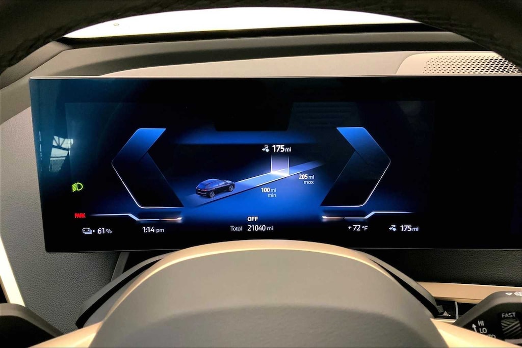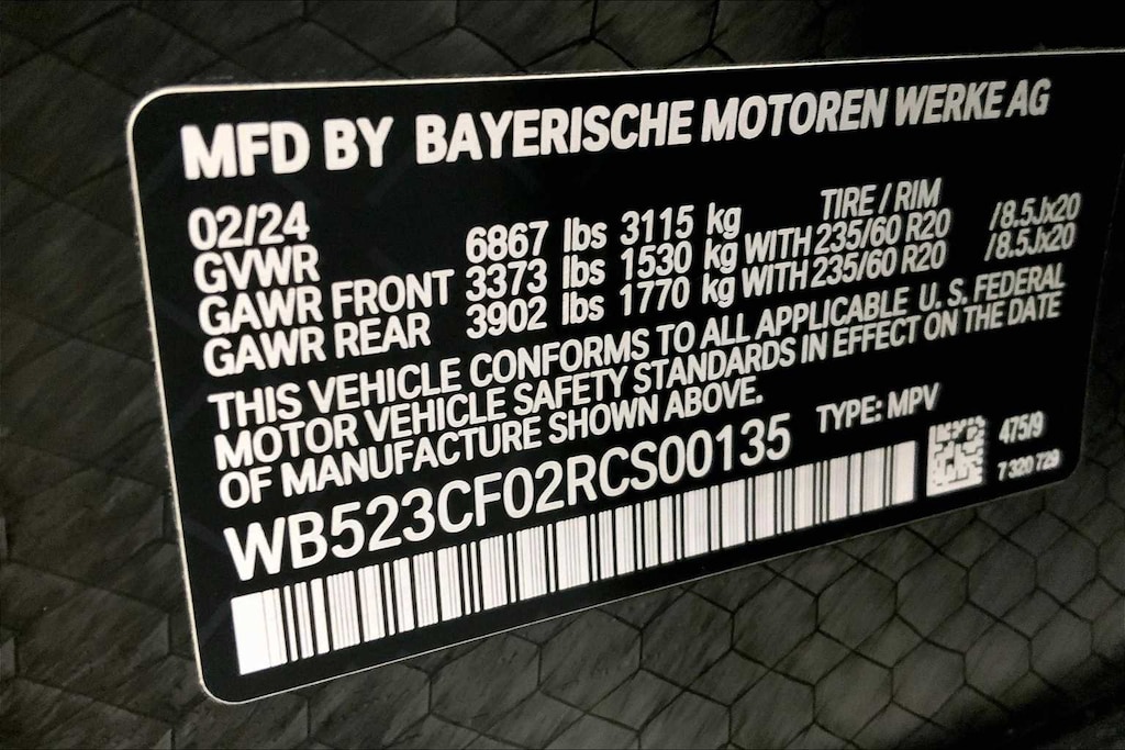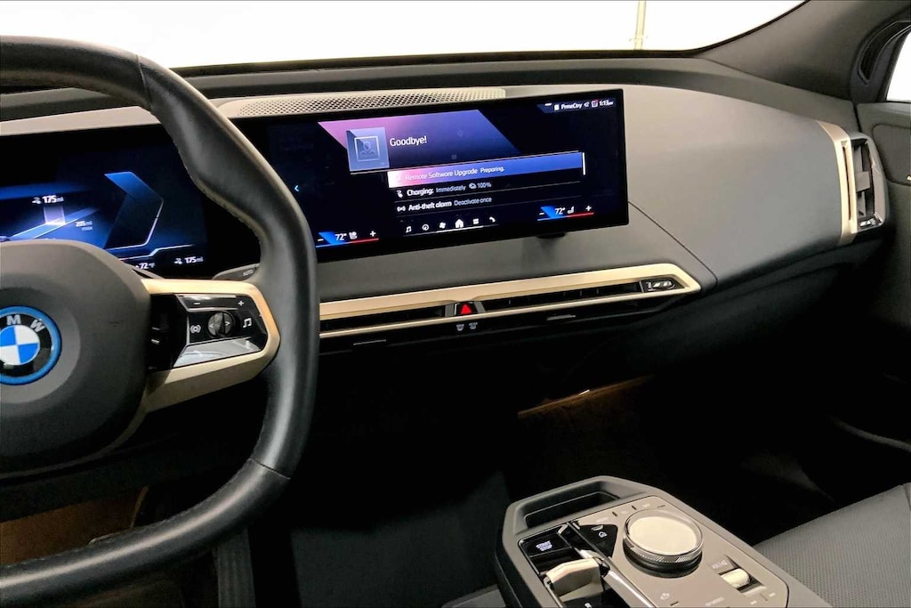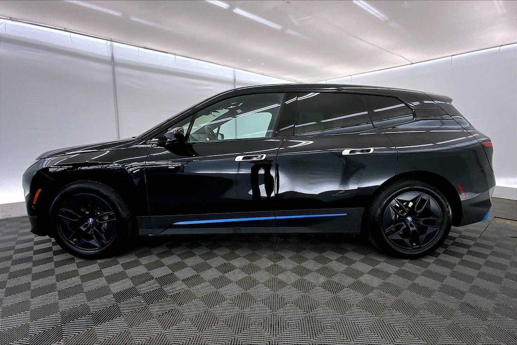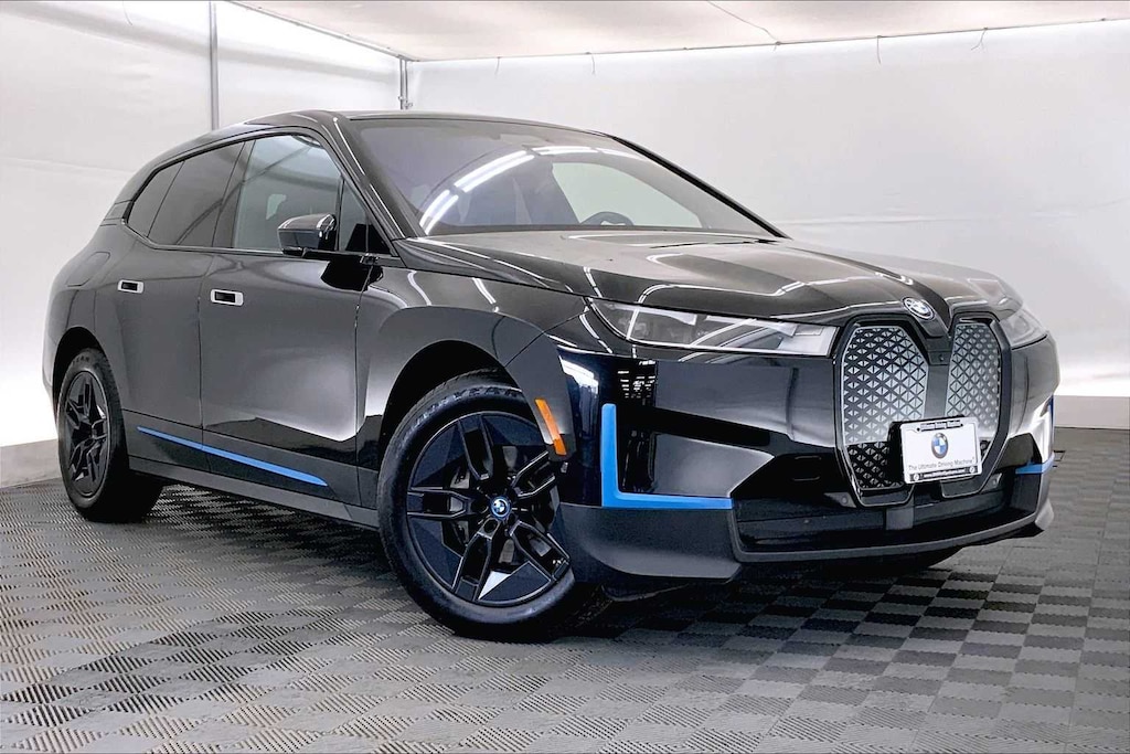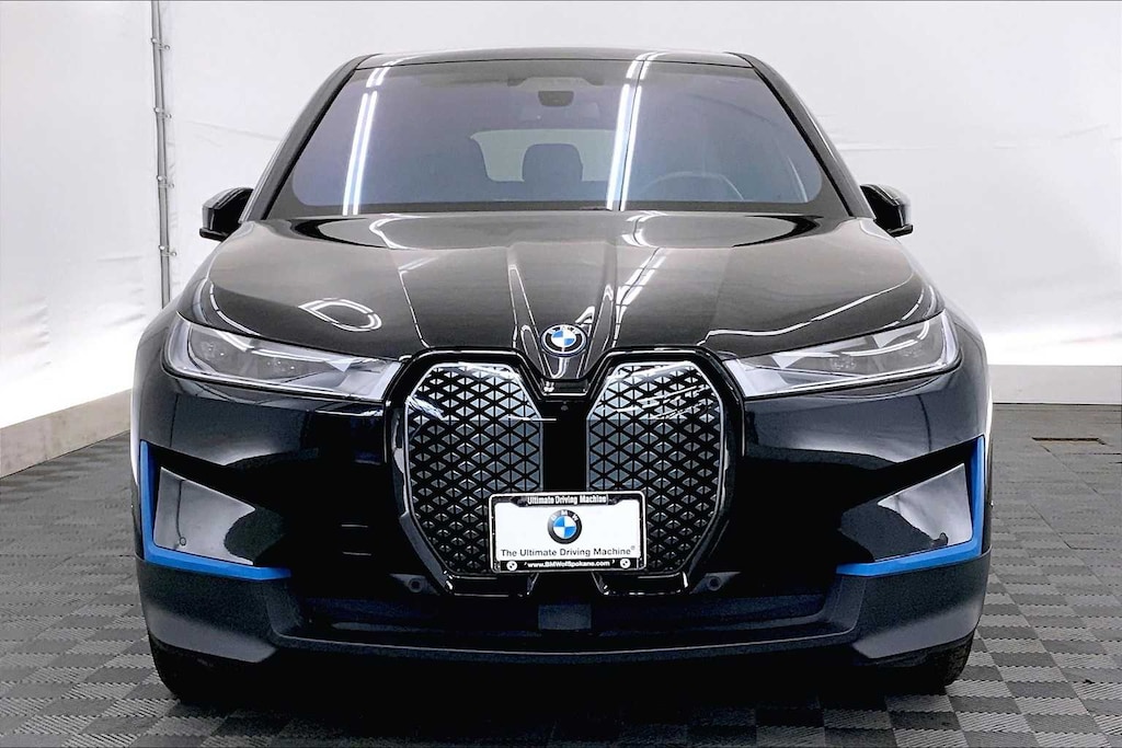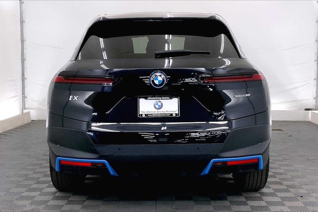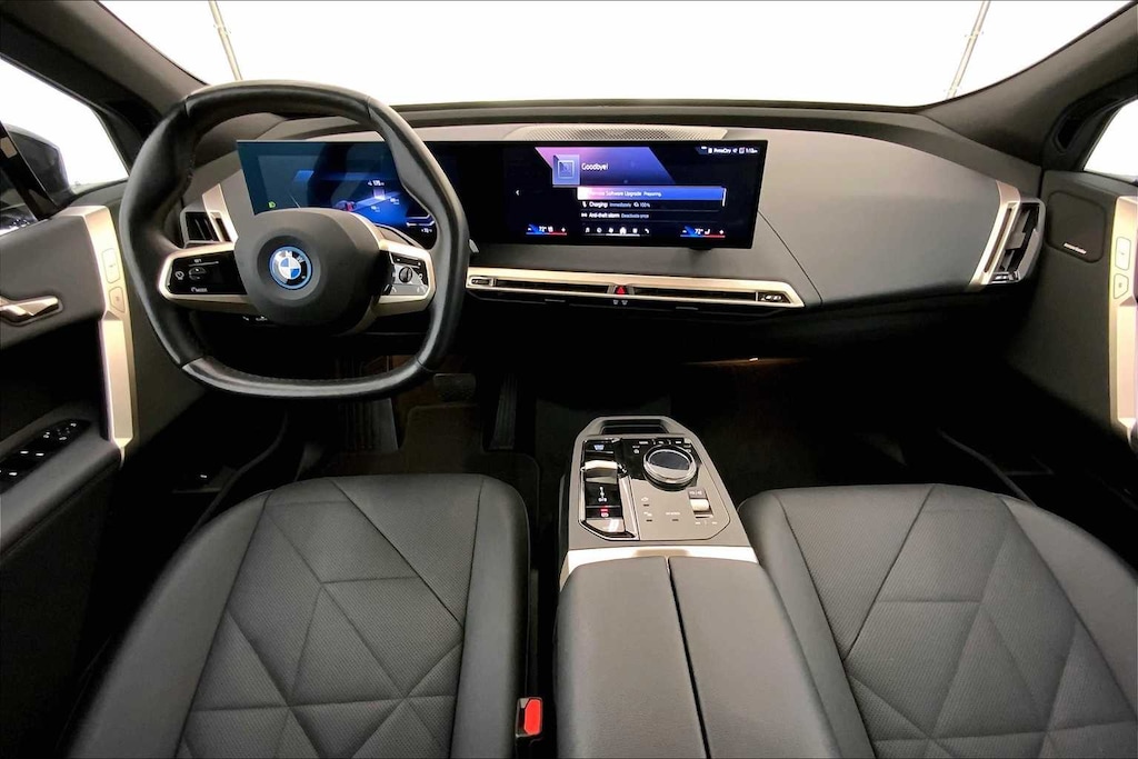 CARFAX One-Owner. Clean CARFAX. Black Sapphire Metallic 2024 BMW iX xDrive50 AWD Single-Speed Automatic Electric Motor 12 Speakers, 4-Wheel Disc Brakes, 8.77 Axle Ratio, ABS brakes, Air Conditioning, Alloy wheels, AM/FM Stereo, Apple CarPlay & Android Auto Compatibility, Apple CarPlay Compatibility, Auto High-beam Headlights, Auto tilt-away steering wheel, Auto-dimming door mirrors, Auto-dimming Rear-View mirror, Automatic temperature control, BMW Assist eCall, BMW TeleServices, Brake assist, Bucket Seats, Bumpers: body-color, Compass, Connected eDrive Services, Connected Package Pro, ConnectedDrive Services, Delay-off headlights, Driver door bin, Driver vanity mirror, Dual front impact airbags, Dual front side impact airbags, Electronic Stability Control, Emergency communication system: BMW Assist eCall, Exterior Parking Camera Rear, Four wheel independent suspension, Front anti-roll bar, Front Bucket Seats, Front Center Armrest, Front dual zone A/C, Front reading lights, Fully automatic headlights, Garage door transmitter, Heated door mirrors, Heated Front Seats, Heated front seats, Hi-Fi Sound System, Illuminated entry, Leather steering wheel, Low tire pressure warning, Memory seat, Natural Interaction, Navigation, Navigation System, Occupant sensing airbag, Outside temperature display, Overhead airbag, Panic alarm, Passenger door bin, Passenger vanity mirror, Perforated SensaTec Upholstery, Power door mirrors, Power driver seat, Power Liftgate, Power passenger seat, Power steering, Power windows, Radio data system, Rain sensing wipers, Rear air conditioning, Rear anti-roll bar, Rear dual zone A/C, Rear reading lights, Rear seat center armrest, Rear window defroster, Rear window wiper, Remote keyless entry, Security system, SiriusXM w/360L & 1 Yr Platinum Plan Subscription, Speed control, Speed-sensing steering, Speed-Sensitive Wipers, Split folding rear seat, Spoiler, Sport steering wheel, Steering wheel memory, Steering wheel mounted audio controls, Telescoping steering wheel, Tilt steering wheel, Traction control, Trip computer, Turn signal indicator mirrors, Variably intermittent wipers, Wheels: 20 x 8.5 Aero Frzn Drk Grey (Style 1002) (1GR), Wireless Device Charging.