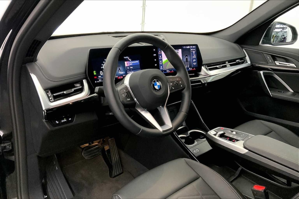 CARFAX One-Owner. Clean CARFAX. Jet Black 2025 BMW X1 xDrive28i AWD 7-Speed Automatic 2.0L I4 16V TwinPower Turbo 4-Wheel Disc Brakes, 7 Speakers, ABS brakes, Air Conditioning, Alloy wheels, AM/FM Radio, AM/FM radio: SiriusXM with 360L, Apple CarPlay Compatibility, Auto High-beam Headlights, Auto-Dimming Rear-View Mirror, Automatic temperature control, BMW TeleServices, Brake assist, Bumpers: body-color, Comfort Access Keyless Entry, Compass, Convenience Content 1, Convenience Package, Delay-off headlights, Driver door bin, Driver vanity mirror, Dual front impact airbags, Dual front side impact airbags, Electronic Stability Control, Emergency communication system: BMW Assist eCall, Exterior Parking Camera Rear, Four wheel independent suspension, Front anti-roll bar, Front Bucket Seats, Front Center Armrest w/Storage, Front dual zone A/C, Front reading lights, Heated door mirrors, Heated Front Seats, Heated front seats, Illuminated entry, Knee airbag, Leather steering wheel, Low tire pressure warning, Memory seat, Navigation, Navigation System, Occupant sensing airbag, Outside temperature display, Overhead airbag, Overhead console, Panic alarm, Panoramic Moonroof, Passenger door bin, Passenger vanity mirror, Perforated Veganza Upholstery, Power door mirrors, Power driver seat, Power Front Seats, Power Liftgate, Power passenger seat, Power steering, Power windows, Radio data system, Rain sensing wipers, Rear anti-roll bar, Rear reading lights, Rear seat center armrest, Rear window defroster, Rear window wiper, Remote keyless entry, Security system, Speed control, Speed-sensing steering, Speed-Sensitive Wipers, Split folding rear seat, Spoiler, Steering wheel mounted audio controls, Tachometer, Telescoping steering wheel, Tilt steering wheel, Traction control, Trip computer, Turn signal indicator mirrors, Variably intermittent wipers, Wheels: 18 x 7.5 V-Spoke Bi-Color, Widescreen Display, Wireless Device Charging.