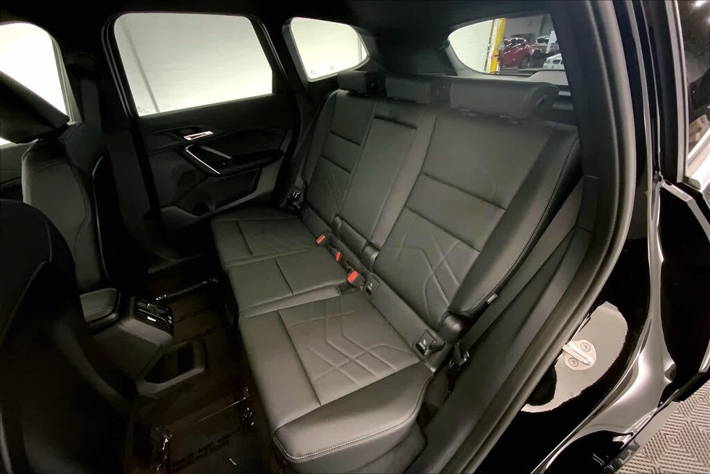 Clean CARFAX. Jet Black 2025 BMW X1 xDrive28i AWD 7-Speed Automatic 2.0L I4 16V TwinPower Turbo 4-Wheel Disc Brakes, 7 Speakers, ABS brakes, Air Conditioning, Alloy wheels, AM/FM Radio, AM/FM radio: SiriusXM with 360L, Apple CarPlay Compatibility, Auto High-beam Headlights, Auto-Dimming Rear-View Mirror, Automatic temperature control, BMW TeleServices, Brake assist, Bumpers: body-color, Comfort Access Keyless Entry, Compass, Convenience Content 1, Convenience Package, Delay-off headlights, Driver door bin, Driver vanity mirror, Dual front impact airbags, Dual front side impact airbags, Electronic Stability Control, Emergency communication system: BMW Assist eCall, Exterior Parking Camera Rear, Four wheel independent suspension, Front anti-roll bar, Front Bucket Seats, Front Center Armrest w/Storage, Front dual zone A/C, Front reading lights, Heated door mirrors, Heated Front Seats, Heated front seats, Heated Steering Wheel, Illuminated entry, Knee airbag, Leather steering wheel, Low tire pressure warning, Memory seat, Navigation, Navigation System, Occupant sensing airbag, Outside temperature display, Overhead airbag, Overhead console, Panic alarm, Panoramic Moonroof, Passenger door bin, Passenger vanity mirror, Perforated Veganza Upholstery, Power door mirrors, Power driver seat, Power Front Seats, Power Liftgate, Power passenger seat, Power steering, Power windows, Radio data system, Rain sensing wipers, Rear anti-roll bar, Rear reading lights, Rear seat center armrest, Rear window defroster, Rear window wiper, Remote keyless entry, Security system, Speed control, Speed-sensing steering, Speed-Sensitive Wipers, Split folding rear seat, Spoiler, Sport Seats, Steering wheel mounted audio controls, Tachometer, Telescoping steering wheel, Tilt steering wheel, Traction control, Trip computer, Turn signal indicator mirrors, Variably intermittent wipers, Wheels: 18 x 7.5 V-Spoke Bi-Color, Wheels: 20 x 8.0 Individual Multi-Spoke, Widescreen Display, Wireless Device Charging.