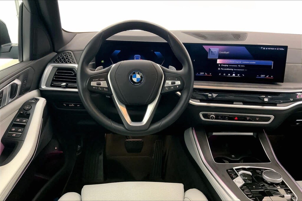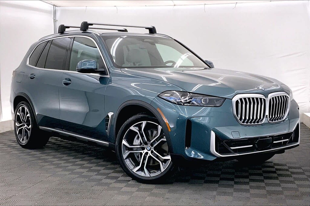 Clean CARFAX. Blue Ridge Mountain Metallic 2025 BMW X5 xDrive50e AWD 8-Speed Automatic Sport 3.0L I6 DOHC 24V Silverstone Premium Synthetic, 10 Speakers, 4-Wheel Disc Brakes, ABS brakes, Air Conditioning, Alloy wheels, AM/FM radio: SiriusXM with 360L, AM/FM Stereo, Anthracite-Brown Poplar Matte Finish Wood Trim, Apple CarPlay & Android Auto Compatibility, Apple CarPlay Compatibility, Auto High-beam Headlights, Auto tilt-away steering wheel, Auto-dimming door mirrors, Auto-dimming Rear-View mirror, Auto-leveling suspension, Automatic temperature control, BMW Assist eCall, BMW TeleServices, Brake assist, Bumpers: body-color, Compass, Connected Package Pro, ConnectedDrive Services, Delay-off headlights, Driver door bin, Driver vanity mirror, Dual front impact airbags, Dual front side impact airbags, Electronic Stability Control, Emergency communication system: BMW Assist eCall, Exterior Parking Camera Rear, Four wheel independent suspension, Front anti-roll bar, Front Bucket Seats, Front Center Armrest, Front dual zone A/C, Front reading lights, Fully automatic headlights, Garage door transmitter, Genuine wood console insert, Genuine wood dashboard insert, Genuine wood door panel insert, Head restraints memory, Heated door mirrors, Heated Front Seats, Heated front seats, Hi-Fi Sound System, Illuminated entry, Illuminated Kidney Grille, Knee airbag, Leather Shift Knob, Leather steering wheel, Low tire pressure warning, Lumbar Support, Memory seat, Navigation, Navigation System, Occupant sensing airbag, Outside temperature display, Overhead airbag, Panic alarm, Passenger door bin, Passenger vanity mirror, Personal eSIM 5G, Power adjustable front head restraints, Power door mirrors, Power driver seat, Power Front Seats, Power moonroof, Power passenger seat, Power steering, Power windows, Radio data system, Rain sensing wipers, Rear anti-roll bar, Rear reading lights, Rear seat center armrest, Rear window defroster, Rear window wiper, Remote keyless entry, Security system, Sensafin Upholstery, SiriusXM Satellite Radio w/1 Year Subscription, Speed control, Speed-sensing steering, Speed-Sensitive Wipers, Split folding rear seat, Spoiler, Sport Seats, Sport steering wheel, Steering wheel memory, Steering wheel mounted audio controls, Tachometer, Telescoping steering wheel, Tilt steering wheel, Traction control, Trip computer, Turn signal indicator mirrors, Variably intermittent wipers, Wheels: 20 x 9 V-Spoke (Style 738), Wheels: 21 x 9.5 Fr & 21 x 10.5 Rr Y-Spoke, Wireless Device Charging, Silverstone Premium Synthetic.