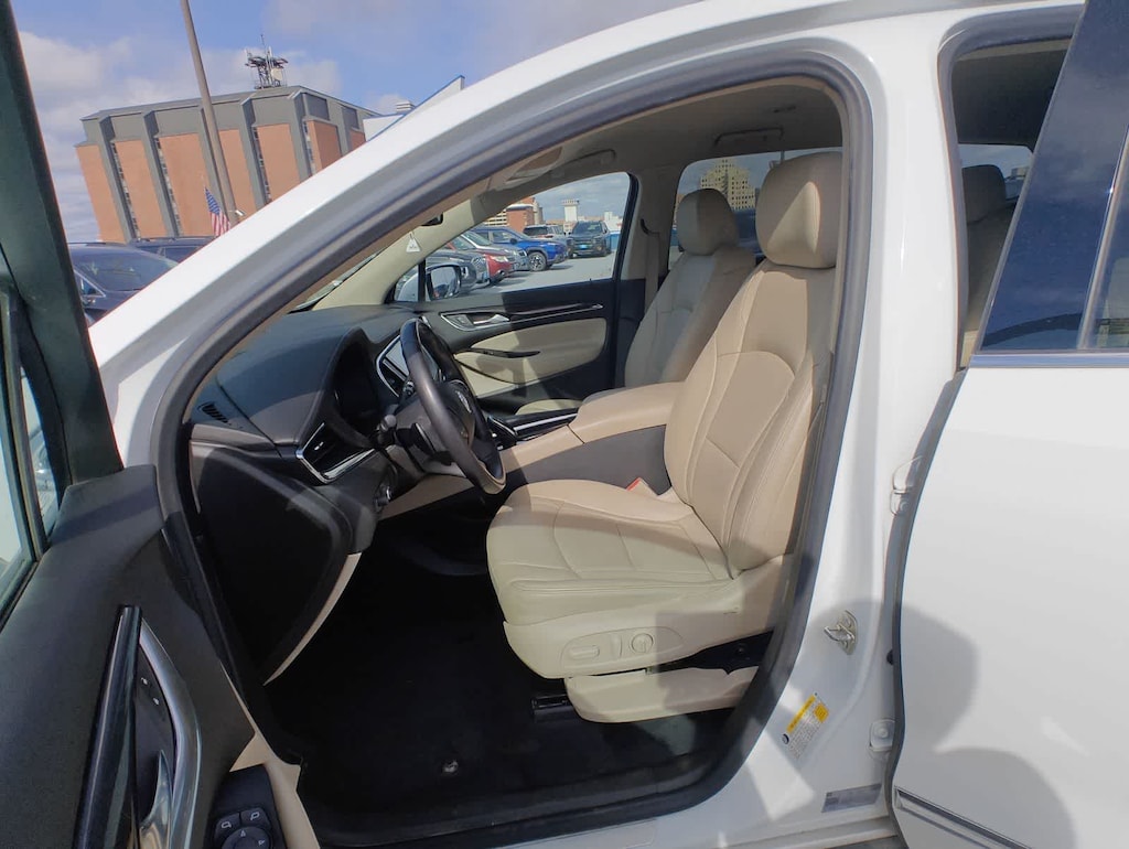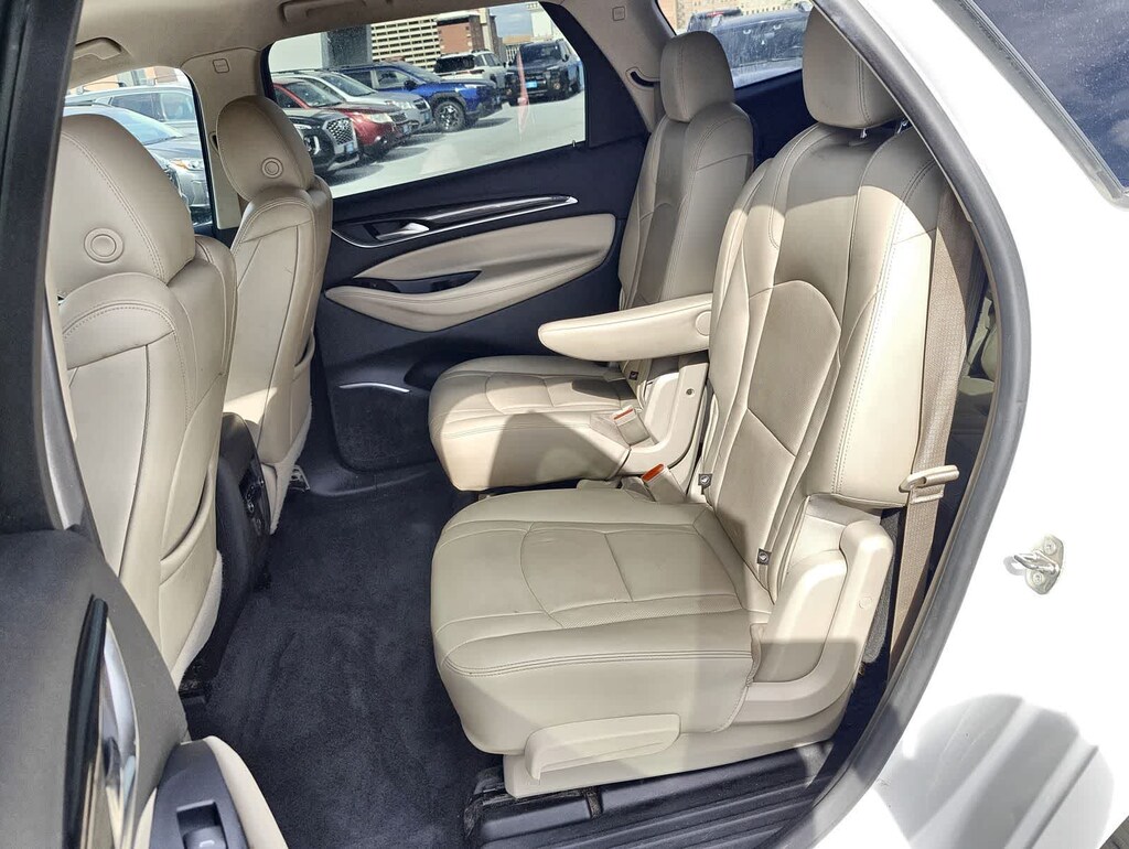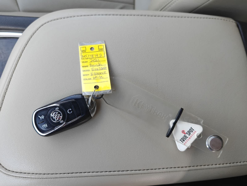 CARFAX One-Owner. Clean CARFAX. Summit White 2021 Buick Enclave Essence AWD 9-Speed Automatic 3.6L V6 SIDI VVT AWD, 18 Painted Aluminum Wheels, 3.49 Axle Ratio, 3rd row seats: split-bench, 4-Wheel Disc Brakes, 6 Speakers, 6-Speaker Audio System Feature, 7-Passenger Seating, ABS brakes, Air Conditioning, Alloy wheels, AM/FM radio: SiriusXM with 360L, Apple CarPlay/Android Auto, Auto-dimming door mirrors, Auto-dimming Rear-View mirror, Automatic temperature control, Brake assist, Bumpers: body-color, Compass, Delay-off headlights, Driver door bin, Driver vanity mirror, Dual front impact airbags, Dual front side impact airbags, Electronic Stability Control, Emergency communication system: OnStar and Buick connected services capable, Four wheel independent suspension, Front anti-roll bar, Front Bucket Seats, Front Center Armrest, Front dual zone A/C, Front Mounting License Plate Bracket Package, Front reading lights, Fully automatic headlights, Garage door transmitter, Heated door mirrors, Heated Driver & Front Passenger Seats, Heated front seats, Illuminated entry, Leather steering wheel, Low tire pressure warning, Occupant sensing airbag, Outside temperature display, Overhead airbag, Overhead console, Panic alarm, Passenger door bin, Passenger vanity mirror, Perforated Leather-Appointed Seat Trim, Power door mirrors, Power Driver Lumbar Control Seat Adjuster, Power driver seat, Power Liftgate, Power Passenger Lumbar Control Seat Adjuster, Power passenger seat, Power steering, Power windows, Preferred Equipment Group 1SL, Premium audio system: Buick Infotainment System, Radio data system, Radio: Buick Infotainment System AM/FM Stereo, Rear air conditioning, Rear anti-roll bar, Rear Parking Sensors, Rear reading lights, Rear window defroster, Rear window wiper, Remote keyless entry, Roof rack: rails only, Security system, SiriusXM w/360L, Speed control, Speed-sensing steering, Spoiler, Steering wheel mounted audio controls, Tachometer, Telescoping steering wheel, Tilt steering wheel, Traction control, Trip computer, Turn signal indicator mirrors, Variably intermittent wipers, Voltmeter, AWD.
