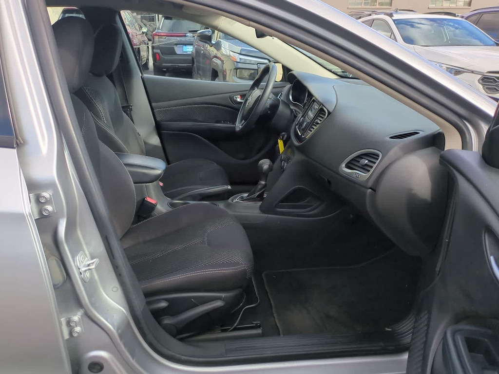 Billet Silver Metallic Clearcoat 2015 Dodge Dart SXT FWD 6-Speed Automatic 2.4L I4 PZEV MultiAir 4-Wheel Disc Brakes, 6 Speakers, ABS brakes, Air Conditioning, Alloy wheels, AM/FM radio, Anti-whiplash front head restraints, Brake assist, Bumpers: body-color, CD player, Delay-off headlights, Driver door bin, Driver vanity mirror, Dual front impact airbags, Dual front side impact airbags, Electronic Stability Control, Four wheel independent suspension, Front anti-roll bar, Front Bucket Seats, Front Center Armrest, Front reading lights, Fully automatic headlights, Illuminated entry, Knee airbag, Low tire pressure warning, Occupant sensing airbag, Outside temperature display, Overhead airbag, Overhead console, Panic alarm, Passenger door bin, Passenger vanity mirror, Power door mirrors, Power steering, Power windows, Premium Cloth Seats, Quick Order Package 2BB, Radio data system, Radio: Uconnect 200 AM/FM/CD/MP3, Rear reading lights, Rear seat center armrest, Rear side impact airbag, Rear window defroster, Remote keyless entry, Security system, Speed control, Speed-sensing steering, Speed-Sensitive Wipers, Split folding rear seat, Steering wheel mounted audio controls, Tachometer, Telescoping steering wheel, Tilt steering wheel, Traction control, Trip computer, Variably intermittent wipers, Wheels: 16 x 7.0 Monotone Painted Aluminum.