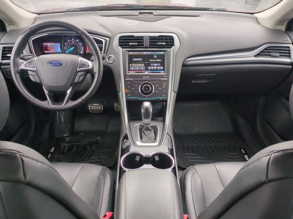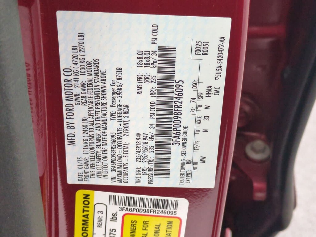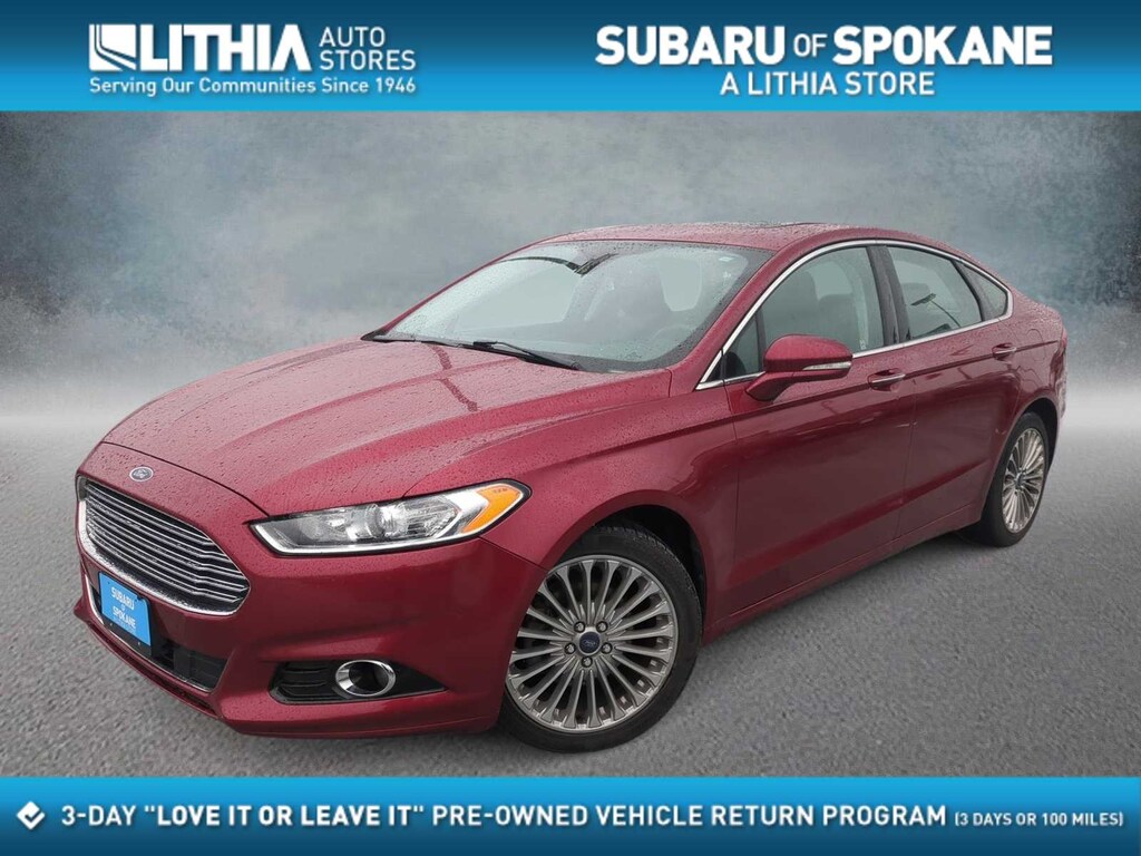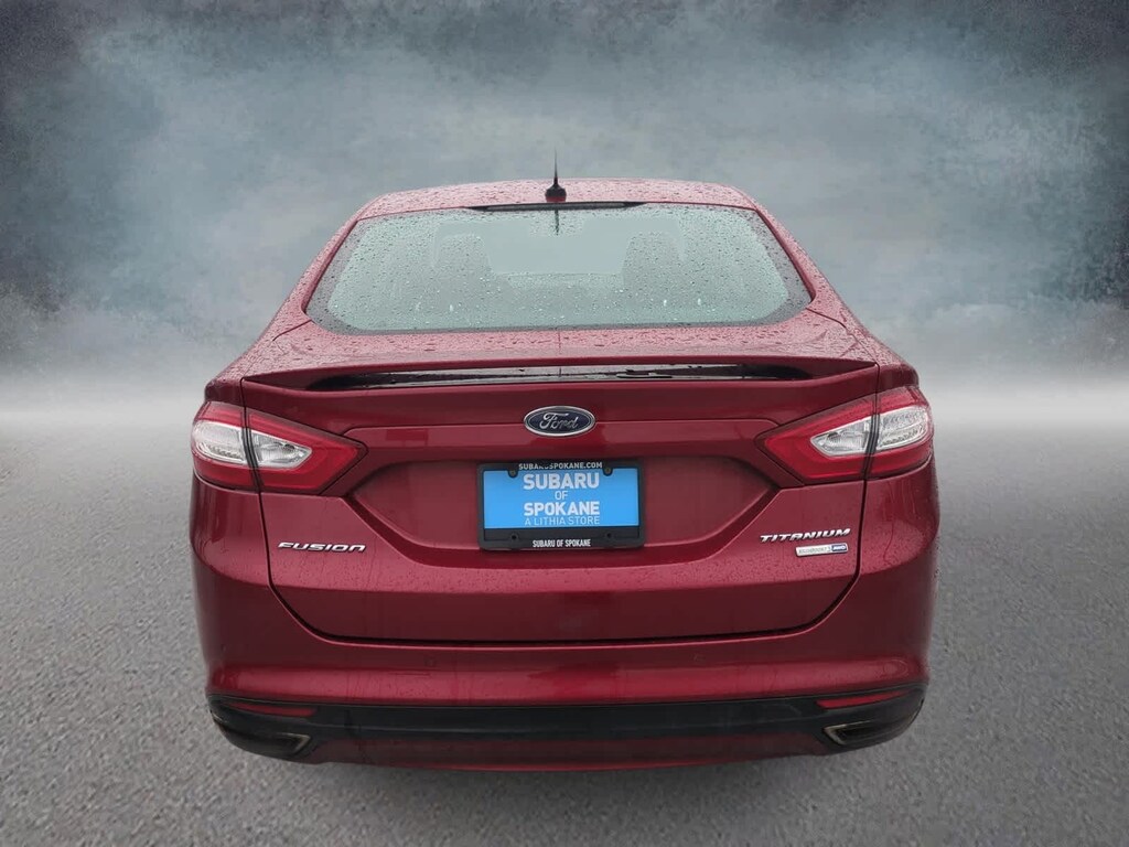 Ruby Red 2015 Ford Fusion Titanium AWD 6-Speed Automatic EcoBoost 2.0L I4 GTDi DOHC Turbocharged VCT 6-Speed Automatic, AWD, 110V Power Outlet, 12 Speakers, 18 Polished Aluminum Wheels, 4-Wheel Disc Brakes, ABS brakes, Adaptive Cruise Control, Air Conditioning, Alloy wheels, AM/FM radio: SiriusXM, Auto High Beams, Auto-dimming door mirrors, Auto-dimming Rear-View mirror, Automatic temperature control, BLIS w/Cross Traffic Alert, Brake assist, Bumpers: body-color, CD player, Compass, Delay-off headlights, Driver door bin, Driver vanity mirror, Dual front impact airbags, Dual front side impact airbags, Electronic Stability Control, Equipment Group 300A, Exterior Parking Camera Rear, Four wheel independent suspension, Front anti-roll bar, Front Bucket Seats, Front Center Armrest, Front dual zone A/C, Front fog lights, Front License Plate Bracket, Front reading lights, Fully automatic headlights, Heated door mirrors, Heated front seats, Heated Steering Wheel, Heated/Cooled Driver and Passenger Seats, Illuminated entry, Knee airbag, Lane Departure Warning w/Lane Keep Assist, Leather Shift Knob, Leather-Trimmed Heated Sport Bucket Seats, Low tire pressure warning, Memory seat, Moonroof, Occupant sensing airbag, Outside temperature display, Overhead airbag, Overhead console, Panic alarm, Passenger door bin, Passenger vanity mirror, Power door mirrors, Power driver seat, Power passenger seat, Power steering, Power windows, Radio data system, Radio: AM/FM Stereo/MP3/Single-CD, Rain-Sensing Wipers, Rear anti-roll bar, Rear Parking Sensors, Rear reading lights, Rear seat center armrest, Rear window defroster, Remote keyless entry, Security system, SIRIUS Satellite Radio, Speed control, Speed-sensing steering, Speed-Sensitive Wipers, Split folding rear seat, Spoiler, Steering wheel mounted audio controls, SYNC w/MyFord Touch, Tachometer, Telescoping steering wheel, Tilt steering wheel, Titanium Driver Assist Package, Traction control, Trip computer, Turn signal indicator mirrors, Universal Garage Door Opener, Variably intermittent wipers, Voice-Activated Navigation, 6-Speed Automatic, AWD.