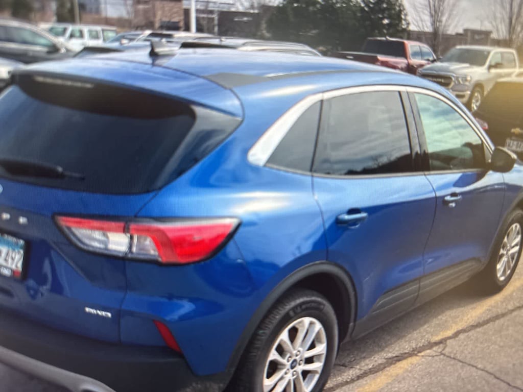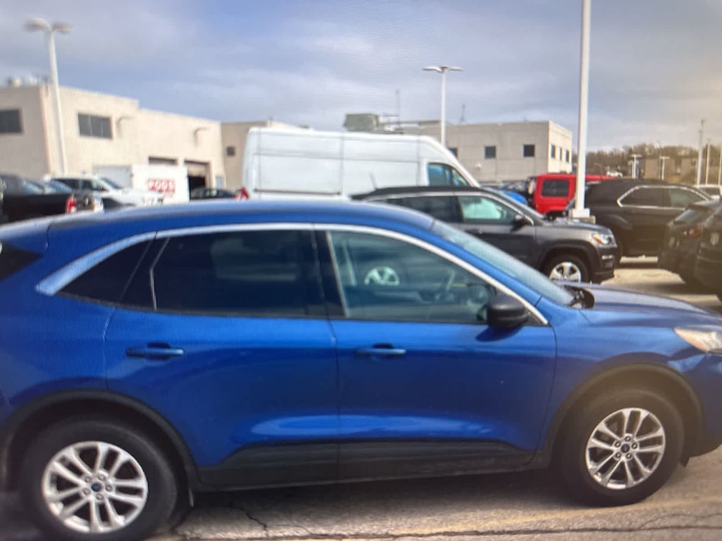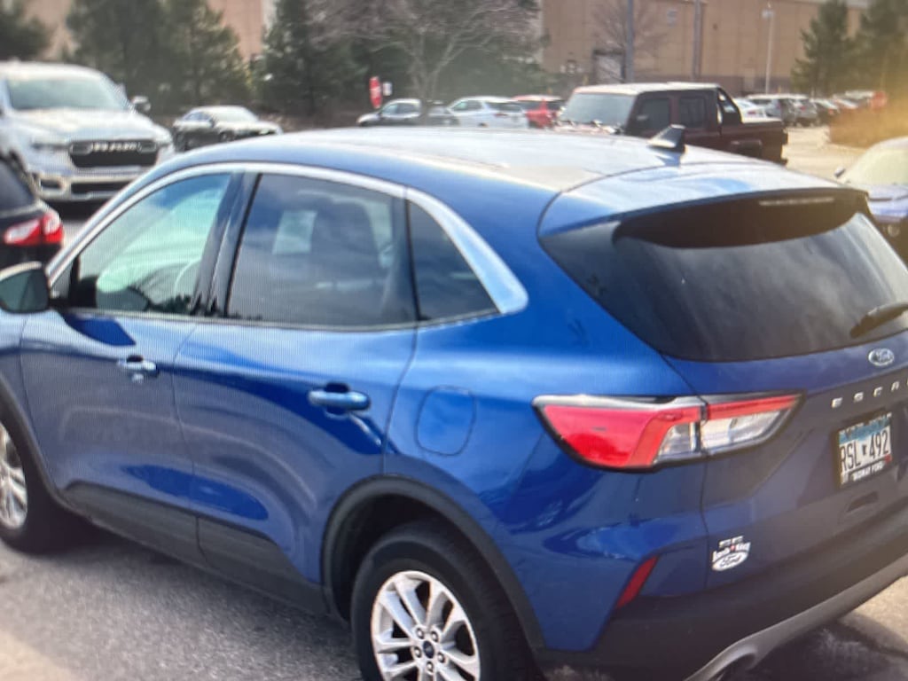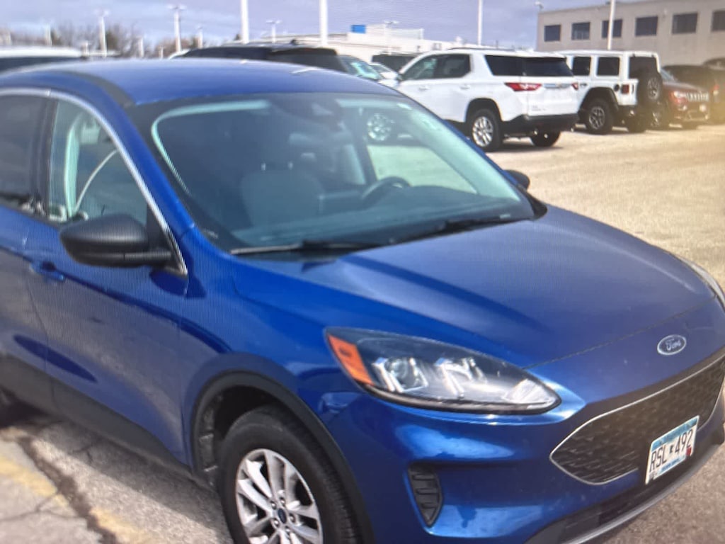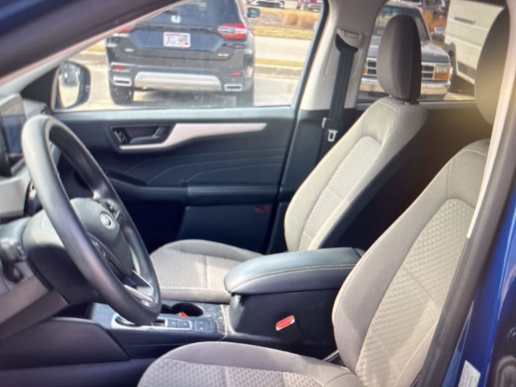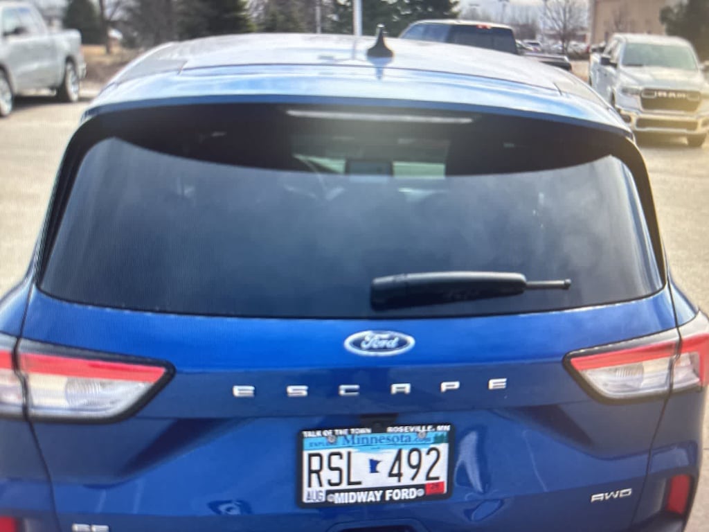 CARFAX One-Owner. Blue Metallic 2022 Ford Escape SE AWD 8-Speed Automatic 1.5L EcoBoost AWD, 3.81 Axle Ratio, 4-Wheel Disc Brakes, 6 Speakers, ABS brakes, Air Conditioning, Alloy wheels, AM/FM radio: SiriusXM, AM/FM Stereo, Auto High-beam Headlights, Brake assist, Bumpers: body-color, Cargo Mat, Compass, Delay-off headlights, Driver door bin, Driver vanity mirror, Dual front impact airbags, Dual front side impact airbags, Easy Access Cargo Shade, Electronic Stability Control, Emergency communication system: SYNC 3 911 Assist, Equipment Group 200A, Exterior Parking Camera Rear, FordPass Connect, Four wheel independent suspension, Front & Rear Floor Liners w/Carpet Mats, Front anti-roll bar, Front Bucket Seats, Front Center Armrest, Front License Plate Bracket, Front reading lights, Fully automatic headlights, Illuminated entry, Knee airbag, Low tire pressure warning, Occupant sensing airbag, Outside temperature display, Overhead airbag, Overhead console, Panic alarm, Passenger door bin, Passenger vanity mirror, Power door mirrors, Power steering, Power windows, Radio data system, Rear anti-roll bar, Rear reading lights, Rear window defroster, Rear window wiper, Remote keyless entry, Speed control, Speed-sensing steering, Speed-Sensitive Wipers, Split folding rear seat, Spoiler, Steering wheel mounted audio controls, SYNC 3 Communications & Entertainment System, Tachometer, Telescoping steering wheel, Tilt steering wheel, Traction control, Trip computer, Unique Cloth Front Bucket Seats, Variably intermittent wipers, Wheels: 17 Shadow Silver-Painted Aluminum, AWD.