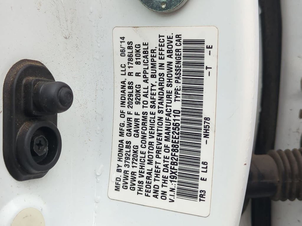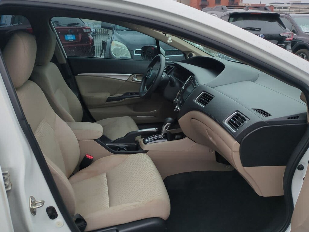 CARFAX One-Owner. Clean CARFAX. White Orchid Pearl 2014 Honda Civic EX FWD CVT 1.8L I4 SOHC 16V i-VTEC Beige Cloth, 16 Alloy Wheels, 160-Watt AM/FM/CD Audio System, 4-Wheel Disc Brakes, 6 Speakers, ABS brakes, Air Conditioning, Alloy wheels, AM/FM radio, Automatic temperature control, Brake assist, Bumpers: body-color, CD player, Cloth Seat Trim, Delay-off headlights, Driver door bin, Driver vanity mirror, Dual front impact airbags, Dual front side impact airbags, Electronic Stability Control, Exterior Parking Camera Rear, Four wheel independent suspension, Front anti-roll bar, Front Bucket Seats, Front Center Armrest, Front reading lights, Fully automatic headlights, Illuminated entry, Low tire pressure warning, Occupant sensing airbag, Outside temperature display, Overhead airbag, Panic alarm, Passenger door bin, Passenger vanity mirror, Power door mirrors, Power moonroof, Power steering, Power windows, Radio data system, Rear anti-roll bar, Rear seat center armrest, Rear window defroster, Reclining Front Bucket Seats, Remote keyless entry, Security system, Speed control, Speed-sensing steering, Split folding rear seat, Steering wheel mounted audio controls, Tachometer, Telescoping steering wheel, Tilt steering wheel, Traction control, Trip computer, Variably intermittent wipers, Beige Cloth.