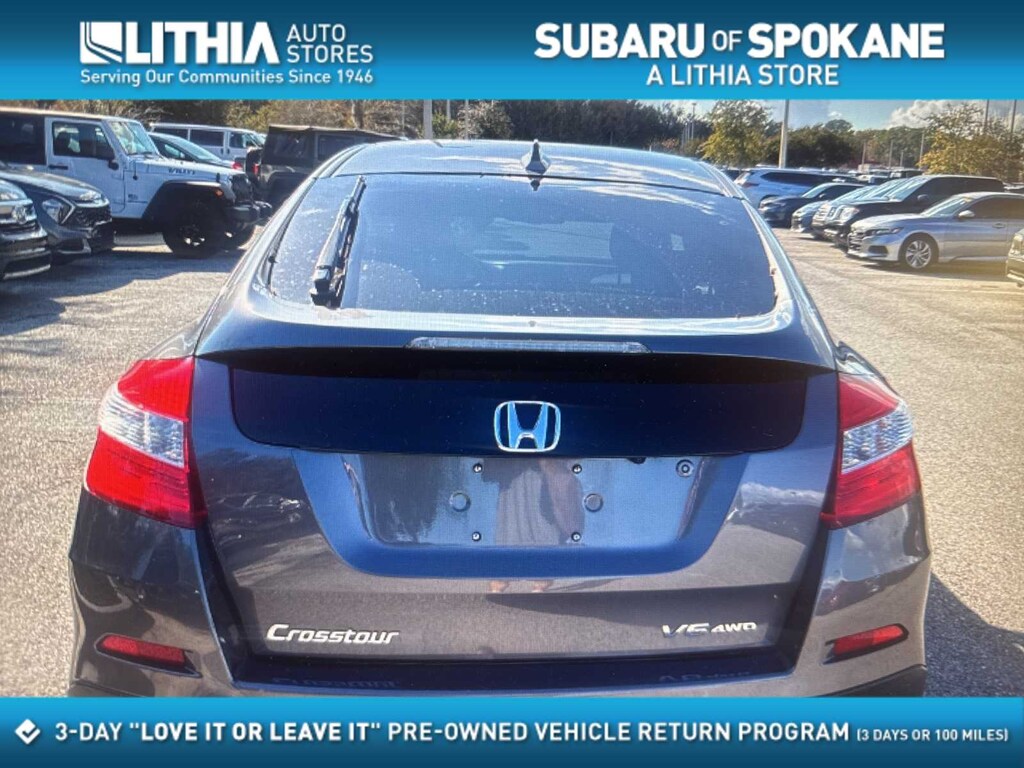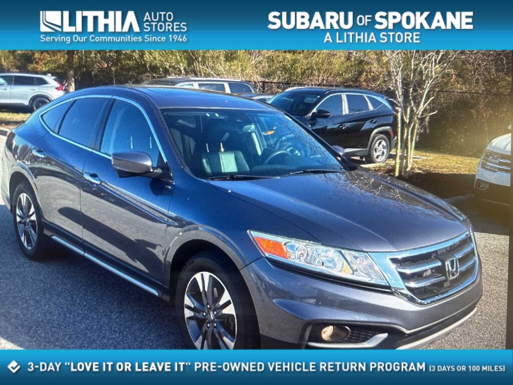 CARFAX One-Owner. Gray 2015 Honda Crosstour EX-L 4WD 6-Speed Automatic 3.5L V6 SOHC i-VTEC 24V 18 Alloy Wheels, 4-Wheel Disc Brakes, 4.25 Axle Ratio, 7 Speakers, ABS brakes, Air Conditioning, Alloy wheels, AM/FM radio: XM, Anti-whiplash front head restraints, Auto-dimming Rear-View mirror, Automatic temperature control, Brake assist, Bumpers: body-color, CD player, Compass, Delay-off headlights, Driver door bin, Driver vanity mirror, Dual front impact airbags, Dual front side impact airbags, Electronic Stability Control, Exterior Parking Camera Rear, Four wheel independent suspension, Front anti-roll bar, Front Bucket Seats, Front Center Armrest, Front dual zone A/C, Front fog lights, Front reading lights, Fully automatic headlights, Garage door transmitter: HomeLink, Heated door mirrors, Heated Front Bucket Seats, Heated front seats, Illuminated entry, Leather Shift Knob, Leather steering wheel, Leather-Trimmed Seats, Low tire pressure warning, Memory seat, Occupant sensing airbag, Outside temperature display, Overhead airbag, Overhead console, Panic alarm, Passenger door bin, Passenger vanity mirror, Power door mirrors, Power driver seat, Power moonroof, Power passenger seat, Power steering, Power windows, Radio data system, Radio: 360-Watt AM/FM/CD Premium Audio System, Rear anti-roll bar, Rear seat center armrest, Rear window defroster, Rear window wiper, Remote keyless entry, Security system, Speed control, Speed-sensing steering, Speed-Sensitive Wipers, Split folding rear seat, Spoiler, Steering wheel mounted audio controls, Tachometer, Telescoping steering wheel, Tilt steering wheel, Traction control, Trip computer, Variably intermittent wipers.