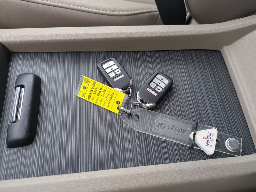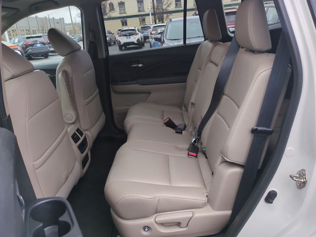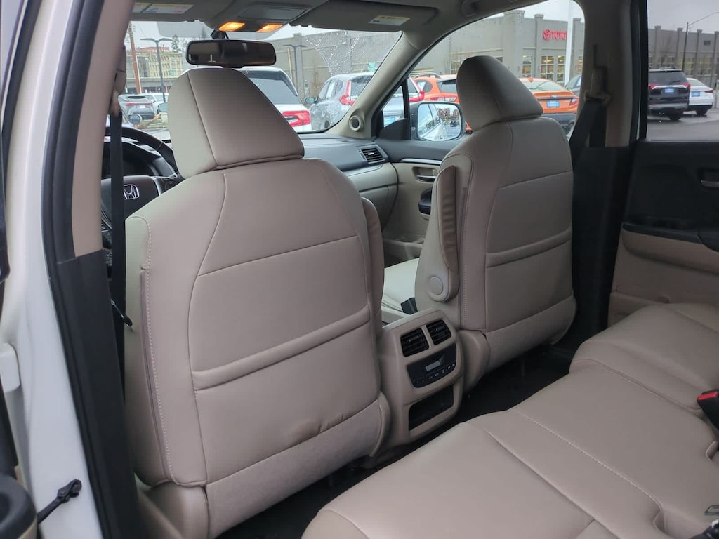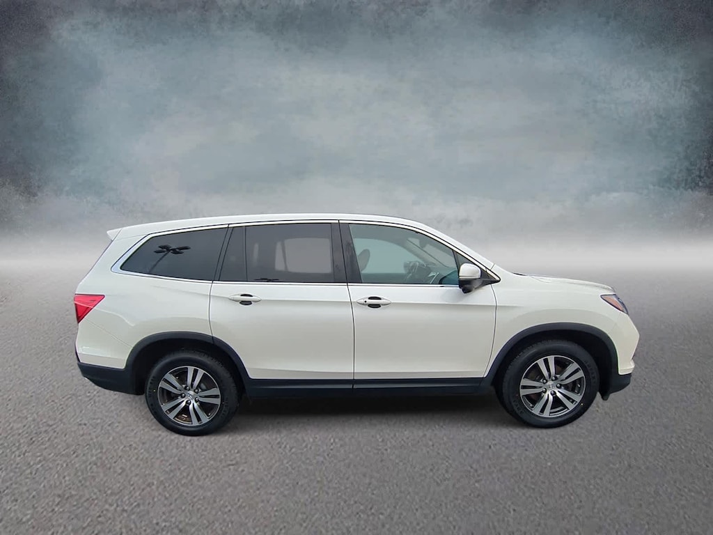 Clean CARFAX. White Diamond Pearl 2017 Honda Pilot EX-L AWD 6-Speed Automatic 3.5L V6 24V SOHC i-VTEC AWD, 18 Alloy Wheels, 3rd row seats: split-bench, 4-Wheel Disc Brakes, 4.25 Axle Ratio, 7 Speakers, ABS brakes, Air Conditioning, Alloy wheels, AM/FM radio: SiriusXM, Apple CarPlay/Android Auto, Auto-dimming Rear-View mirror, Automatic temperature control, Brake assist, Bumpers: body-color, Compass, Delay-off headlights, Driver door bin, Driver vanity mirror, Dual front impact airbags, Dual front side impact airbags, Electronic Stability Control, Emergency communication system: HondaLink Assist, Exterior Parking Camera Rear, Four wheel independent suspension, Front anti-roll bar, Front Bucket Seats, Front Center Armrest, Front dual zone A/C, Front fog lights, Front reading lights, Fully automatic headlights, Garage door transmitter: HomeLink, Heated door mirrors, Heated Front Bucket Seats, Heated front seats, Illuminated entry, Leather Shift Knob, Leather-Trimmed Seats, Low tire pressure warning, Occupant sensing airbag, Outside temperature display, Overhead airbag, Overhead console, Panic alarm, Passenger door bin, Passenger vanity mirror, Power door mirrors, Power driver seat, Power Liftgate, Power moonroof, Power passenger seat, Power steering, Power windows, Radio data system, Radio: AM/FM Audio System, Rear air conditioning, Rear anti-roll bar, Rear reading lights, Rear seat center armrest, Rear window defroster, Rear window wiper, Remote keyless entry, Security system, SiriusXM Radio, Speed control, Speed-sensing steering, Speed-Sensitive Wipers, Split folding rear seat, Spoiler, Steering wheel mounted audio controls, Tachometer, Telescoping steering wheel, Tilt steering wheel, Traction control, Trip computer, Variably intermittent wipers, AWD.