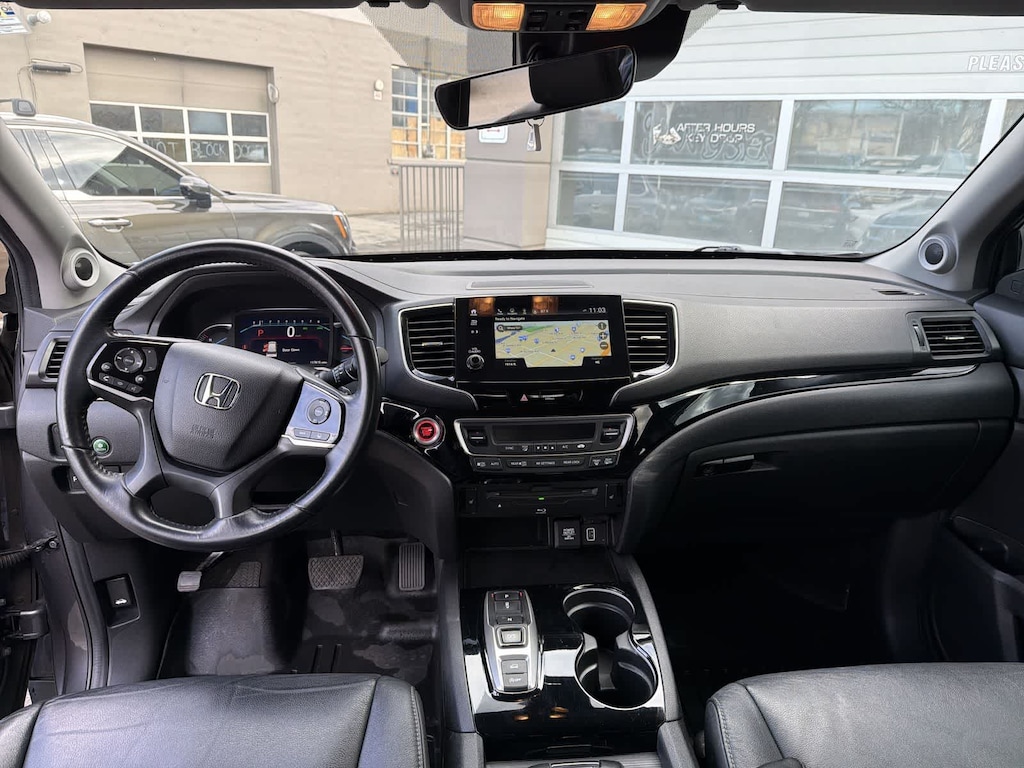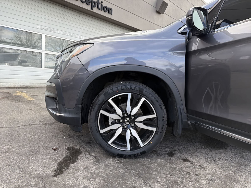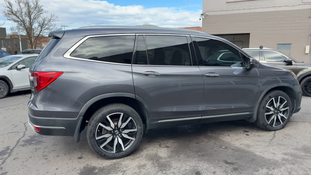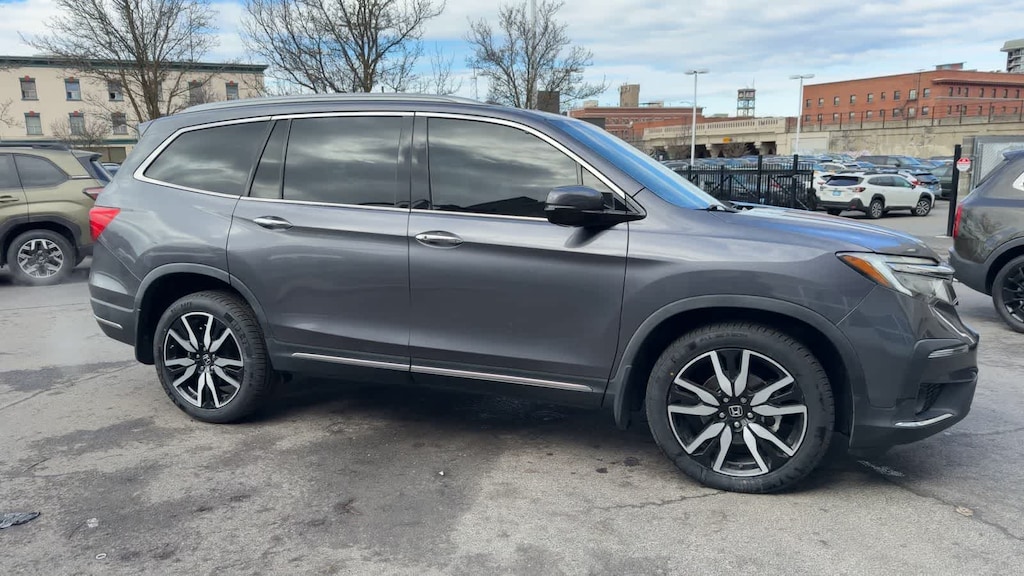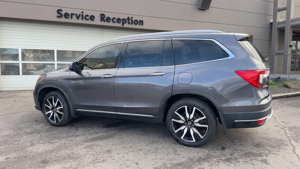 CARFAX One-Owner. Clean CARFAX. Gray 2022 Honda Pilot Touring 8 Passenger AWD 9-Speed Automatic 3.5L V6 24V SOHC i-VTEC AWD, 10 Speakers, 3rd row seats: split-bench, 4-Wheel Disc Brakes, 4.33 Axle Ratio, A/V remote: CabinControl, ABS brakes, Air Conditioning, Alloy wheels, AM/FM radio: SiriusXM, Apple CarPlay/Android Auto, Auto High-beam Headlights, Auto-dimming Rear-View mirror, Automatic temperature control, Blind Spot Information (BSI) System warning, Brake assist, Bumpers: body-color, Compass, Delay-off headlights, Driver door bin, Driver vanity mirror, Dual front impact airbags, Dual front side impact airbags, Electronic Stability Control, Emergency communication system: HondaLink, Exterior Parking Camera Rear, Forward collision: Collision Mitigation Braking System (CMBS) + FCW mitigation, Four wheel independent suspension, Front anti-roll bar, Front Bucket Seats, Front Center Armrest, Front dual zone A/C, Front fog lights, Front reading lights, Fully automatic headlights, Garage door transmitter: HomeLink, Headphones, Heated door mirrors, Heated Front Bucket Seats, Heated front seats, Heated rear seats, Illuminated entry, Lane departure: Lane Keeping Assist System (LKAS) active, Leather Seat Trim, Low tire pressure warning, Memory seat, Navigation system: Honda Satellite-Linked Navigation System, Occupant sensing airbag, Outside temperature display, Overhead airbag, Overhead console, Panic alarm, Passenger door bin, Passenger vanity mirror, Power door mirrors, Power driver seat, Power Liftgate, Power moonroof, Power passenger seat, Power steering, Power windows, Radio data system, Radio: 590-Watt Premium Audio