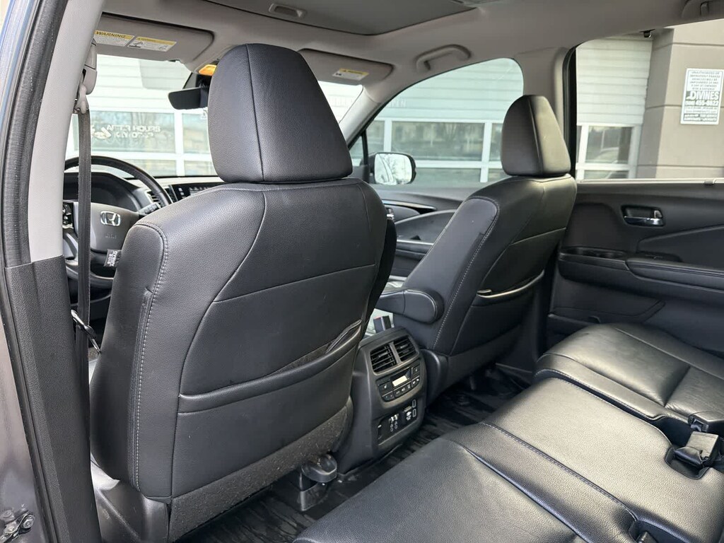 Inside, the Pilot Touring provides premium comfort with leather seat trim, a power driver and passenger seat, trizone climate control, a power moonroof, and seating for eight with a reclining 3rd row. Tech features include the Honda SatelliteLinked Navigation System, a 590watt premium audio system, rear entertainment audio controls, Apple CarPlay/Android Auto, SiriusXM, CabinControl A/V remote, and HondaLink emergency communication.