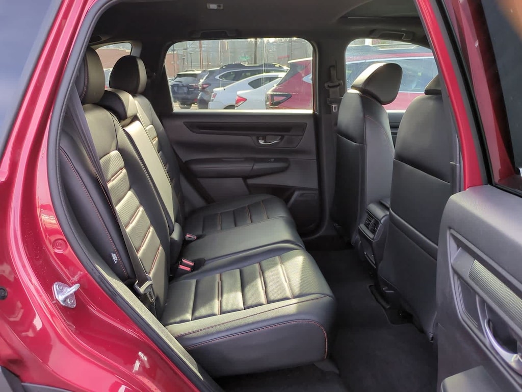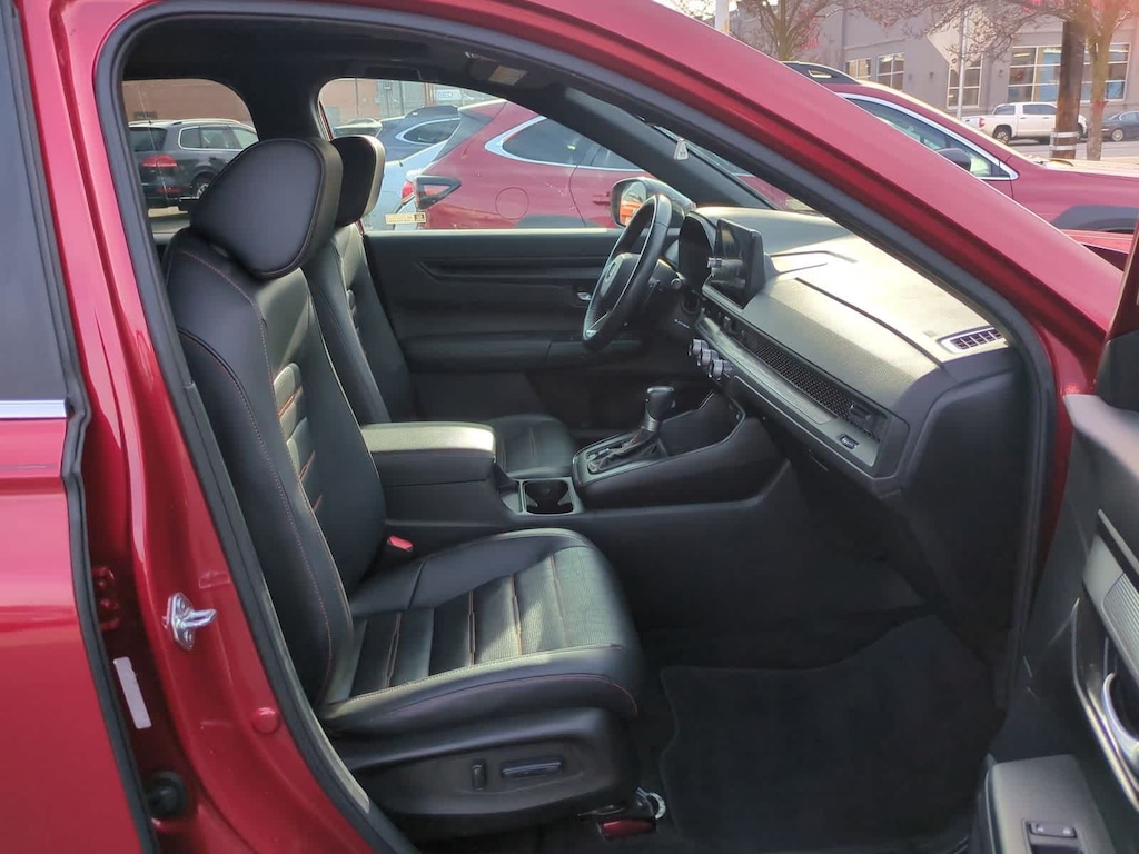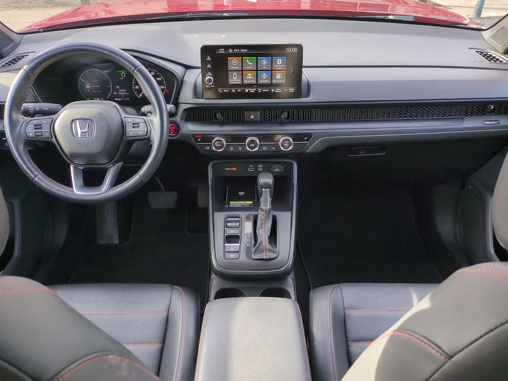 Clean CARFAX. Radiant Red Metallic 2024 Honda CR-V Hybrid Sport-L AWD eCVT 2.0L I4 DOHC 16V 2.0L I4 DOHC 16V, 4-Wheel Disc Brakes, 4.438 Axle Ratio, 8 Speakers, ABS brakes, Adaptive Cruise Control: Adaptive Cruise Control (ACC) with Low-Speed Follow, Air Conditioning, Alloy wheels, AM/FM radio: SiriusXM, Auto High-beam Headlights, Auto-dimming Rear-View mirror, Automatic temperature control, Blind Spot Information (BSI) System warning, Brake assist, Bumpers: body-color, Compass, Delay-off headlights, Driver door bin, Driver vanity mirror, Dual front impact airbags, Dual front side impact airbags, Electronic Stability Control, Exterior Parking Camera Rear, Four wheel independent suspension, Front anti-roll bar, Front Bucket Seats, Front Center Armrest, Front dual zone A/C, Front reading lights, Fully automatic headlights, Heated door mirrors, Heated Front Bucket Seats, Heated front seats, Illuminated entry, Knee airbag, Leather Seat Trim, Leather Shift Knob, Leather steering wheel, Low tire pressure warning, Memory seat, Occupant sensing airbag, Outside temperature display, Overhead airbag, Overhead console, Panic alarm, Passenger door bin, Passenger vanity mirror, Power door mirrors, Power driver seat, Power Liftgate, Power moonroof, Power passenger seat, Power steering, Power windows, Radio data system, Radio: 320-Watt AM/FM/HD/SiriusXM Audio System, Rear anti-roll bar, Rear reading lights, Rear seat center armrest, Rear side impact airbag, Rear window defroster, Rear window wiper, Remote keyless entry, Security system, Speed control, Speed-sensing steering, Speed-Sensitive Wipers, Split folding rear seat, Spoiler, Steering wheel mounted audio controls, Telescoping steering wheel, Tilt steering wheel, Traction control, Trip computer, Turn signal indicator mirrors, Variably intermittent wipers, Wheels: 18 Berlina Black Alloy, Wireless Apple CarPlay/Wireless Android Auto, 2.0L I4 DOHC 16V.