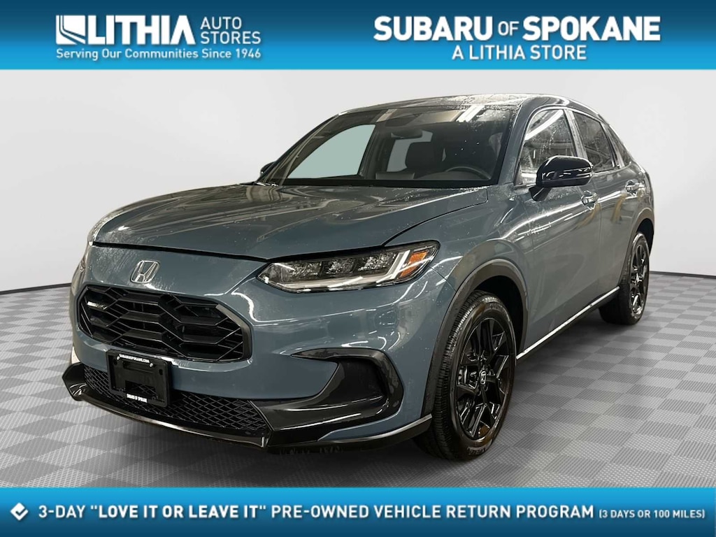 Clean CARFAX. Blue 2024 Honda HR-V Sport AWD CVT 2.0L I4 DOHC 16V i-VTEC 4-Wheel Disc Brakes, 5.436 Axle Ratio, 6 Speakers, ABS brakes, Adaptive Cruise Control: Adaptive Cruise Control (ACC) with Low-Speed Follow, Air Conditioning, Alloy wheels, AM/FM radio, Apple CarPlay/Android Auto, Auto High-beam Headlights, Automatic temperature control, Brake assist, Bumpers: body-color, Cloth Seat Trim, Delay-off headlights, Driver door bin, Driver vanity mirror, Dual front impact airbags, Dual front side impact airbags, Electronic Stability Control, Emergency communication system: HondaLink, Exterior Parking Camera Rear, Four wheel independent suspension, Front anti-roll bar, Front Bucket Seats, Front Center Armrest, Front reading lights, Fully automatic headlights, Heated door mirrors, Heated Front Bucket Seats, Heated front seats, Illuminated entry, Knee airbag, Leather Shift Knob, Leather steering wheel, Low tire pressure warning, Occupant sensing airbag, Outside temperature display, Overhead airbag, Panic alarm, Passenger door bin, Passenger vanity mirror, Power door mirrors, Power steering, Power windows, Radio data system, Radio: 180-Watt Audio System w/6 Speakers, Rear anti-roll bar, Rear reading lights, Rear side impact airbag, Rear window defroster, Rear window wiper, Remote keyless entry, Security system, Speed control, Speed-sensing steering, Split folding rear seat, Spoiler, Steering wheel mounted audio controls, Tachometer, Telescoping steering wheel, Tilt steering wheel, Traction control, Trip computer, Turn signal indicator mirrors, Variably intermittent wipers, Wheels: 18 Gloss Black Alloy.