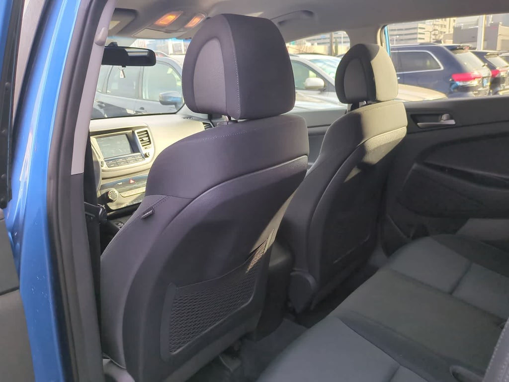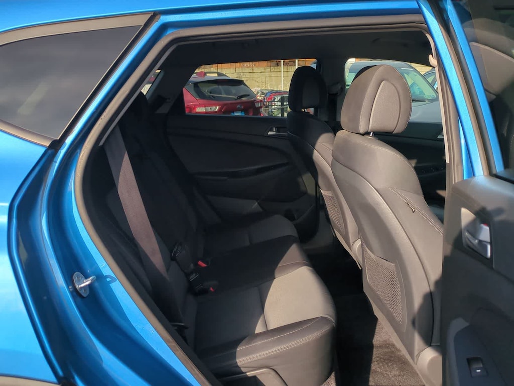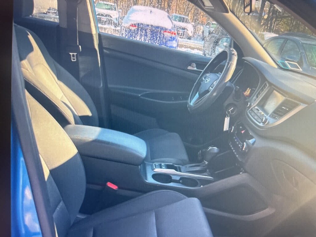 Clean CARFAX. Caribbean Blue 2018 Hyundai Tucson SEL AWD 6-Speed Automatic with Shiftronic 2.0L DOHC AWD, 17 x 7.0J Alloy Wheels, 4-Wheel Disc Brakes, 6 Speakers, ABS brakes, Air Conditioning, Alloy wheels, AM/FM radio: SiriusXM, Apple CarPlay & Android Auto, Axle Ratio: 3.648, Brake assist, Bumpers: body-color, Delay-off headlights, Driver door bin, Driver vanity mirror, Dual front impact airbags, Dual front side impact airbags, Electronic Stability Control, Exterior Parking Camera Rear, Four wheel independent suspension, Front anti-roll bar, Front Bucket Seats, Front Center Armrest, Front fog lights, Front reading lights, Fully automatic headlights, Heated door mirrors, Heated Front Bucket Seats, Heated front seats, Illuminated entry, Low tire pressure warning, Occupant sensing airbag, Option Group 01, Outside temperature display, Overhead airbag, Overhead console, Panic alarm, Passenger door bin, Passenger vanity mirror, Power door mirrors, Power driver seat, Power steering, Power windows, Radio: AM/FM/HD Radio/MP3 Audio System, Rear anti-roll bar, Rear seat center armrest, Rear window defroster, Rear window wiper, Remote keyless entry, Roof rack: rails only, Security system, Speed control, Speed-sensing steering, Split folding rear seat, Spoiler, Steering wheel mounted audio controls, Tachometer, Telescoping steering wheel, Tilt steering wheel, Traction control, Trip computer, Variably intermittent wipers, YES Essentials Cloth Seat Trim, AWD.