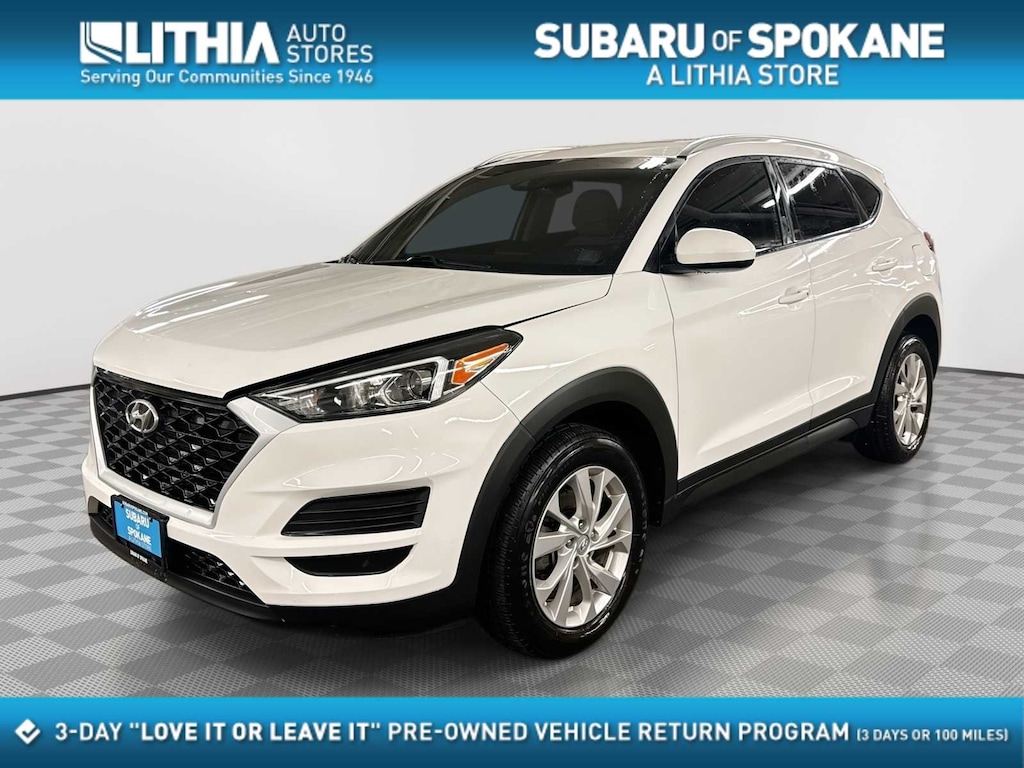 Clean CARFAX. Winter White 2020 Hyundai Tucson Value AWD with a 6Speed Automatic and the efficient I4 engine. The Tucson Value AWD is a smart and dependable choice for winter driving in Spokane, offering Hyundais capable AWD system for stable traction on snow, slush, and icy hills throughout Spokane Valley, Liberty Lake, Post Falls, and Coeur dAlene. With impressive comfort features and excellent allseason handling, its a strong fit for Inland Northwest commuters.