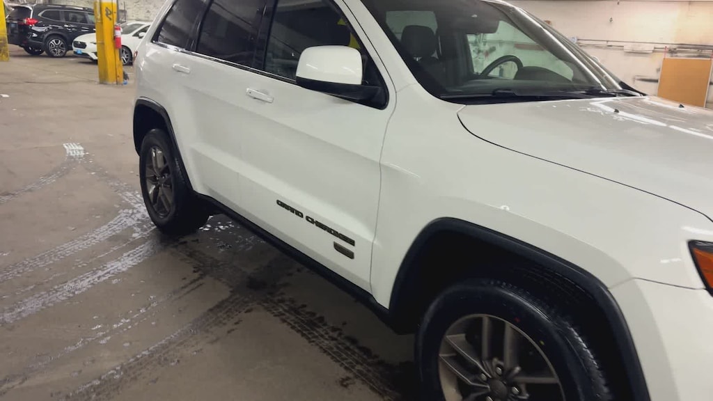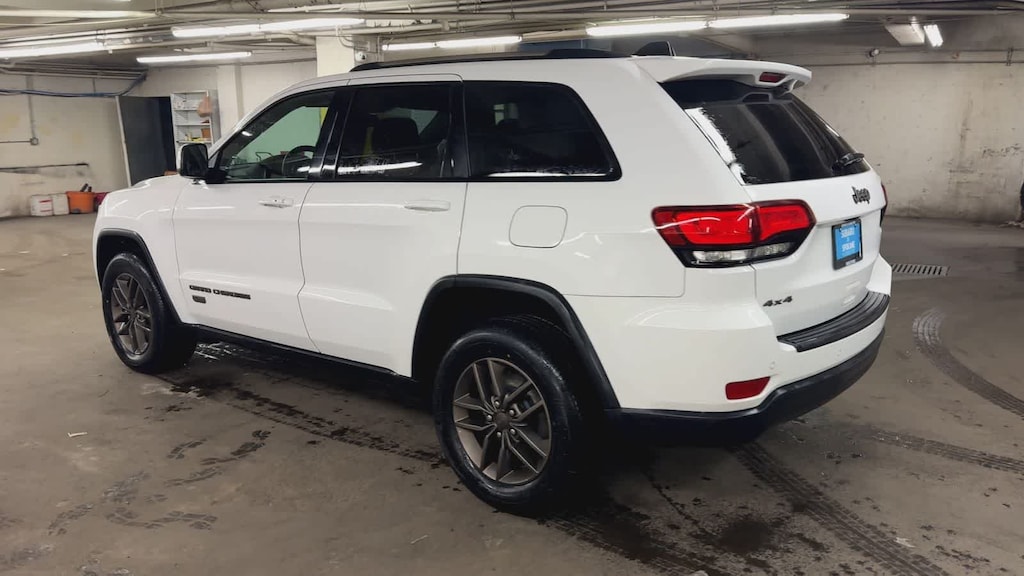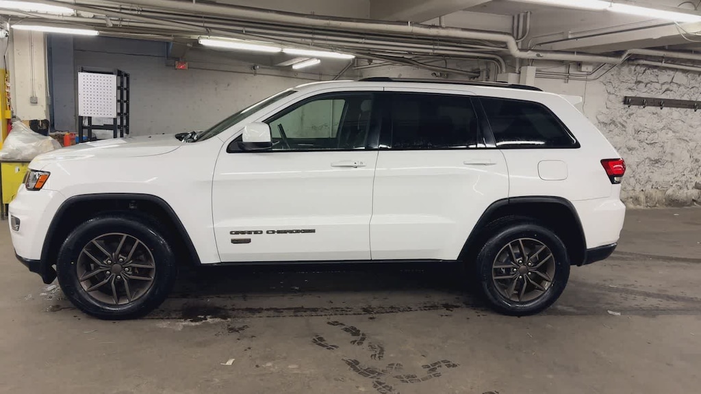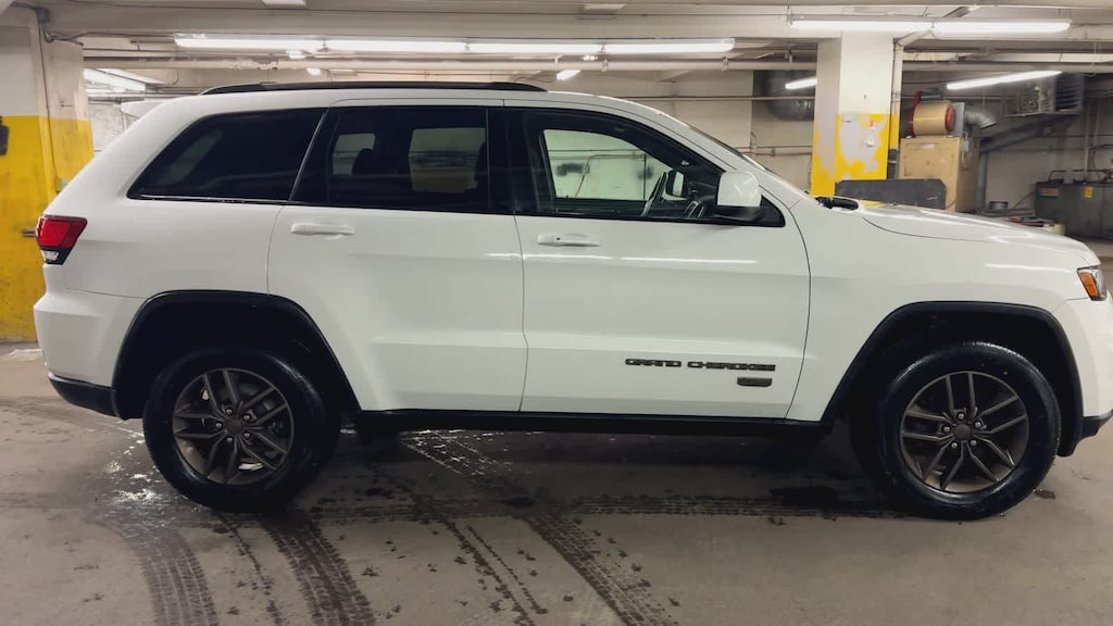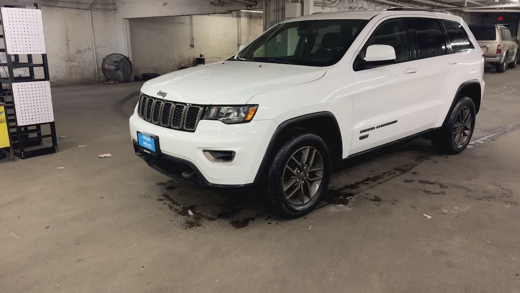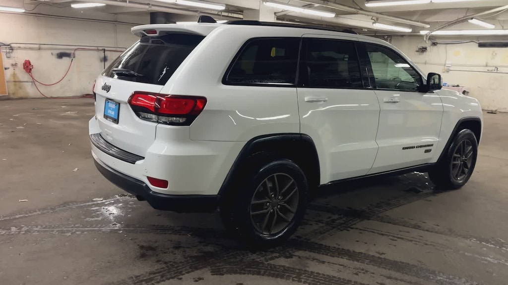 Clean CARFAX. Bright White Clearcoat 2016 Jeep Grand Cherokee 75th Anniversary Edition 4WD 8-Speed Automatic 3.6L V6 24V VVT 4WD, ABS brakes, Alloy wheels, Compass, Electronic Stability Control, Front dual zone A/C, Heated door mirrors, Illuminated entry, Low tire pressure warning, Remote keyless entry, Traction control.