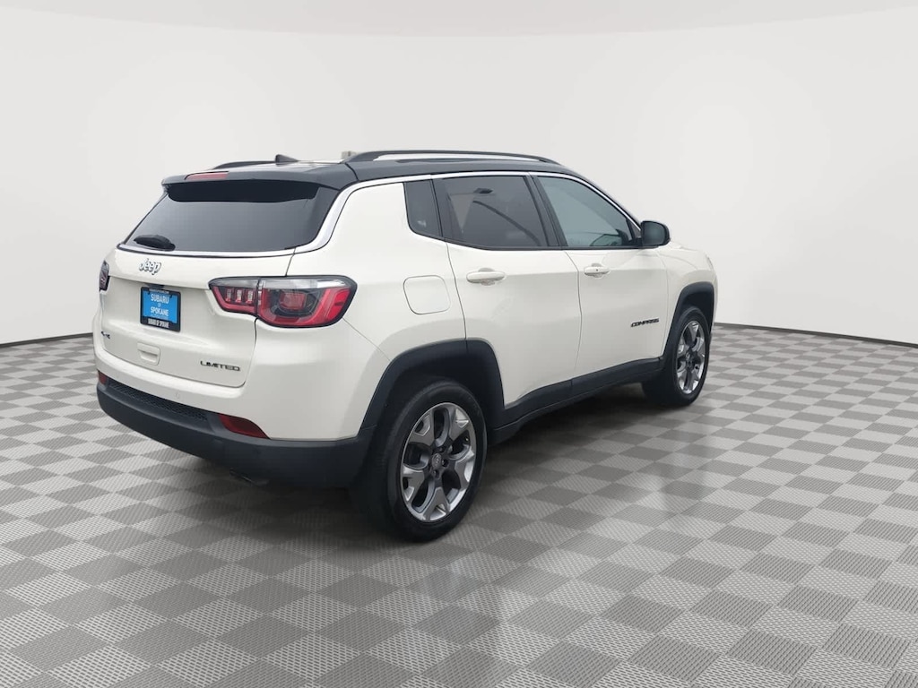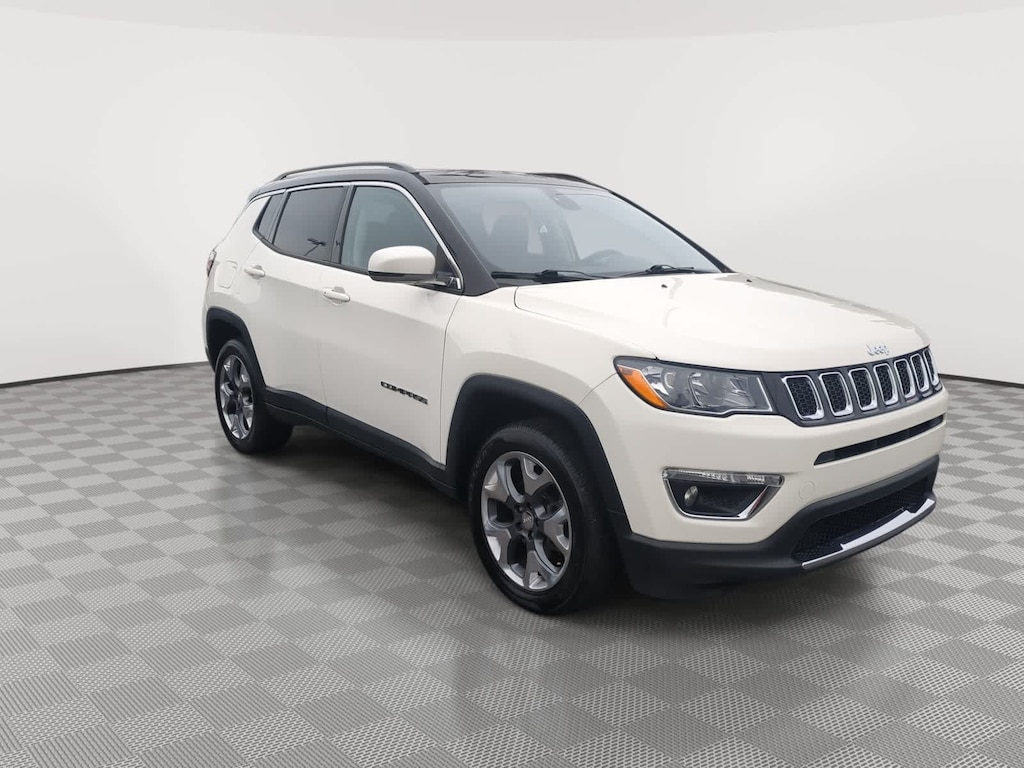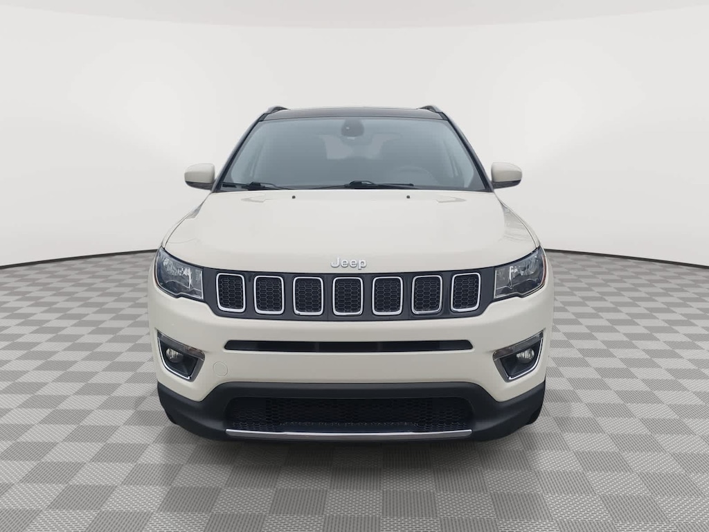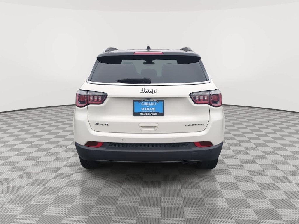 White Clearcoat 2018 Jeep Compass Limited 4WD 9-Speed Automatic 2.4L I4 4WD, 3.73 Axle Ratio, 4-Wheel Disc Brakes, 6 Speakers, ABS brakes, Air Conditioning, Alloy wheels, AM/FM radio: SiriusXM, Anti-whiplash front head restraints, Apple CarPlay/Android Auto, Auto-dimming Rear-View mirror, Automatic temperature control, Blind Spot & Cross Path Detection, Brake assist, Bumpers: body-color, Compass, Delay-off headlights, Driver door bin, Driver vanity mirror, Dual front impact airbags, Dual front side impact airbags, Electronic Stability Control, Four wheel independent suspension, Front anti-roll bar, Front Bucket Seats, Front Center Armrest w/Storage, Front dual zone A/C, Front fog lights, Front reading lights, Fully automatic headlights, GPS Navigation, Heated door mirrors, Heated front seats, Heated steering wheel, Illuminated entry, Knee airbag, Leather Shift Knob, Leather Trimmed Bucket Seats, Low tire pressure warning, Navigation Group, Occupant sensing airbag, Outside temperature display, Overhead airbag, Overhead console, Panic alarm, ParkSense Rear Park Assist System, ParkView Rear Back-Up Camera, Passenger door bin, Passenger vanity mirror, Power door mirrors, Power driver seat, Power Front/Fixed Rear Full Sunroof, Power steering, Power window