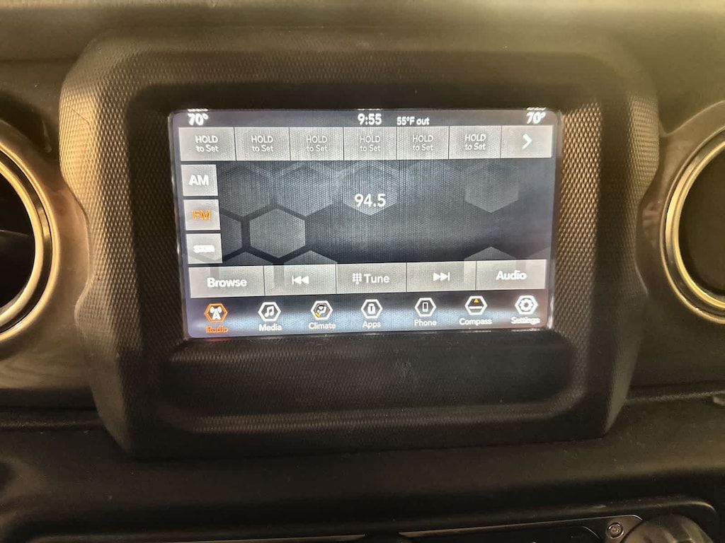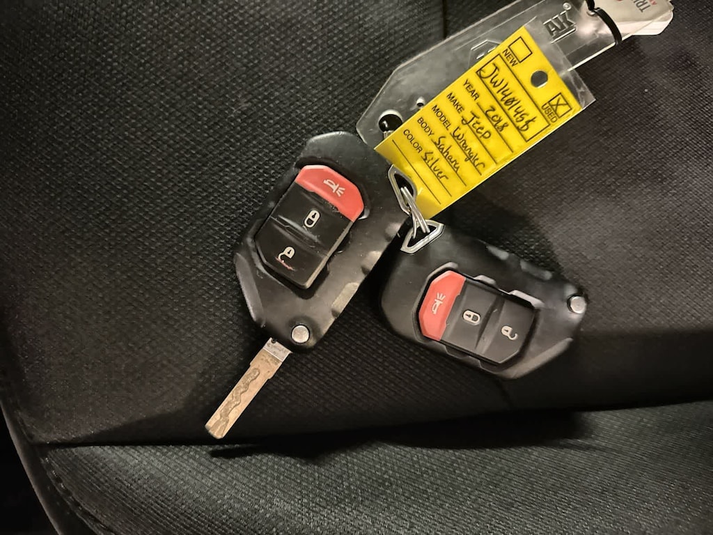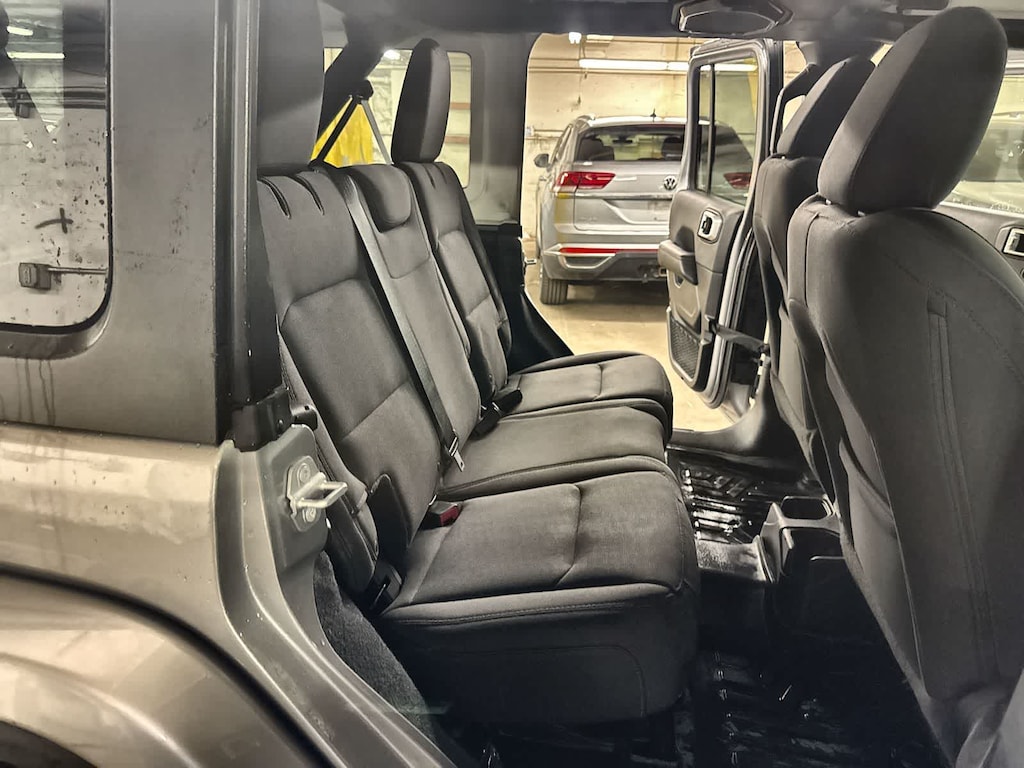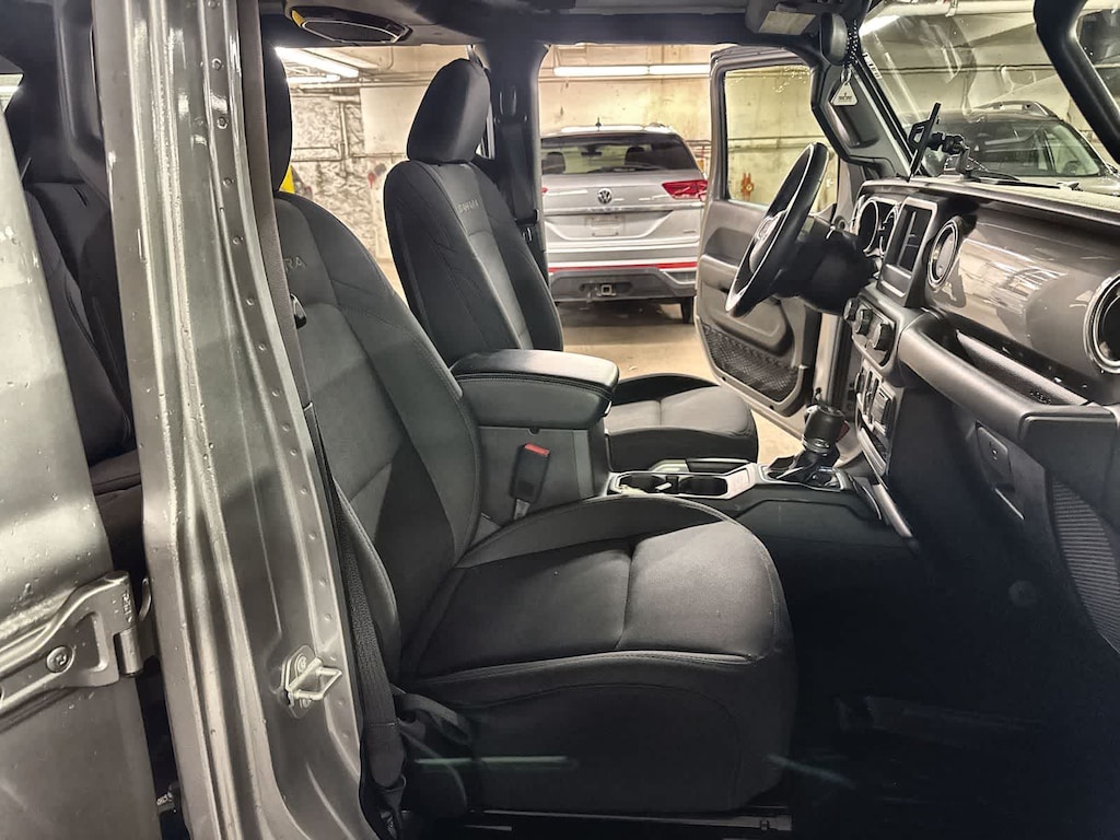 Exterior highlights include 18 polished wheels with gray spokes, bodycolor bumpers, LED taillamps, Black Hard Top, side mirrors with heat, fog lights, Freedom Panels, and the iconic Wrangler design. Additional convenience features include keyless entry, garage door transmitter, rear wiper/washer, and removable doors/options for seasonal driving. Recent arrival.
