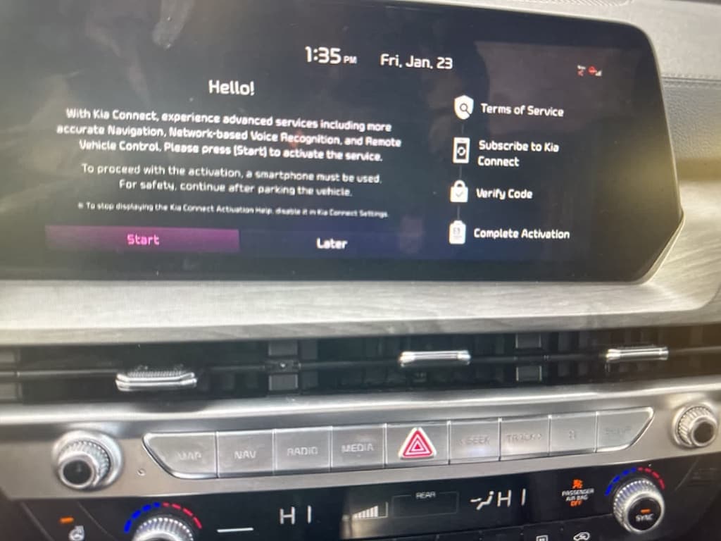 Technology includes the integrated Navigation System, AM/FM/SiriusXM audio, Apple CarPlay and Android Auto, rear audio controls, steeringwheel audio controls, trip computer, radio data system, and an autodimming rearview mirror. Emergency connectivity is supported via Kias 911 Connect system.