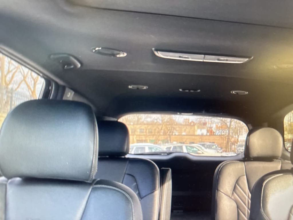 The interior features leather seat trim, heated and ventilated front bucket seats, heated steering wheel, trizone climate control, rear A/C controls, power driver and passenger seats, front center armrest, reclining third row, ambient lighting, illuminated entry, and a spacious cabin designed for comfort and practicality. The Power Moonroof and Power Liftgate improve everyday convenience, while Smart Key with PushButton Start and Remote Start provide added ease in winter.