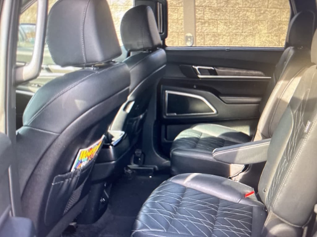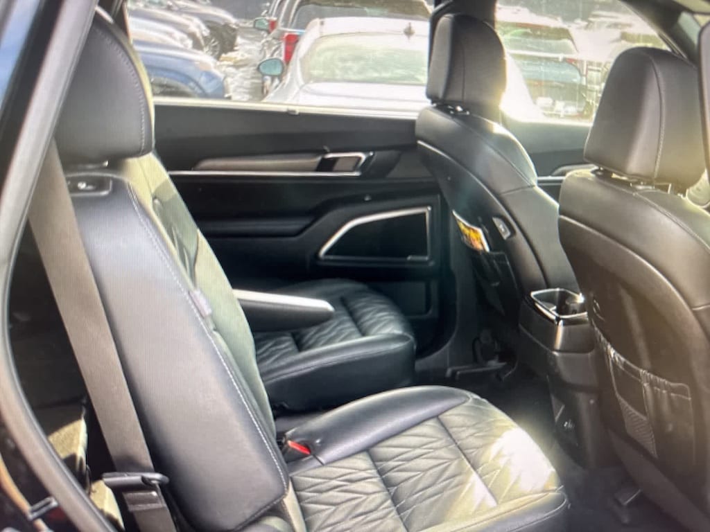 CARFAX One-Owner. Clean CARFAX. Ebony Black 2024 Kia Telluride EX X-Line AWD 8-Speed Automatic 3.8L V6 DOHC 3.648 Axle Ratio, 3rd row seats: split-bench, 4-Wheel Disc Brakes, 6 Speakers, ABS brakes, Air Conditioning, Alloy wheels, AM/FM radio: SiriusXM, Apple CarPlay & Android Auto, Auto High-beam Headlights, Auto-dimming Rear-View mirror, Auto-leveling suspension, Automatic temperature control, Brake assist, Bumpers: body-color, Cargo Tray Seat Back, Carpet Floor Mats, Compass, Delay-off headlights, Driver door bin, Driver vanity mirror, Dual front impact airbags, Dual front side impact airbags, Electronic Stability Control, Emergency communication system: 911 Connect, Exterior Parking Camera Rear, Four wheel independent suspension, Front anti-roll bar, Front Bucket Seats, Front Center Armrest, Front dual zone A/C, Front reading lights, Fully automatic headlights, Heated & Ventilated Front Bucket Seats, Heated door mirrors, Heated front seats, Heated steering wheel, Illuminated entry, Knee airbag, Leather Seat Trim, Leather Shift Knob, Leather steering wheel, Low tire pressure warning, Navigation System, Occupant sensing airbag, Outside temperature display, Overhead airbag, Overhead console, Panic alarm, Passenger door bin, Passenger vanity mirror, Power door mirrors, Power driver seat, Power Liftgate, Power moonroof, Power passeng