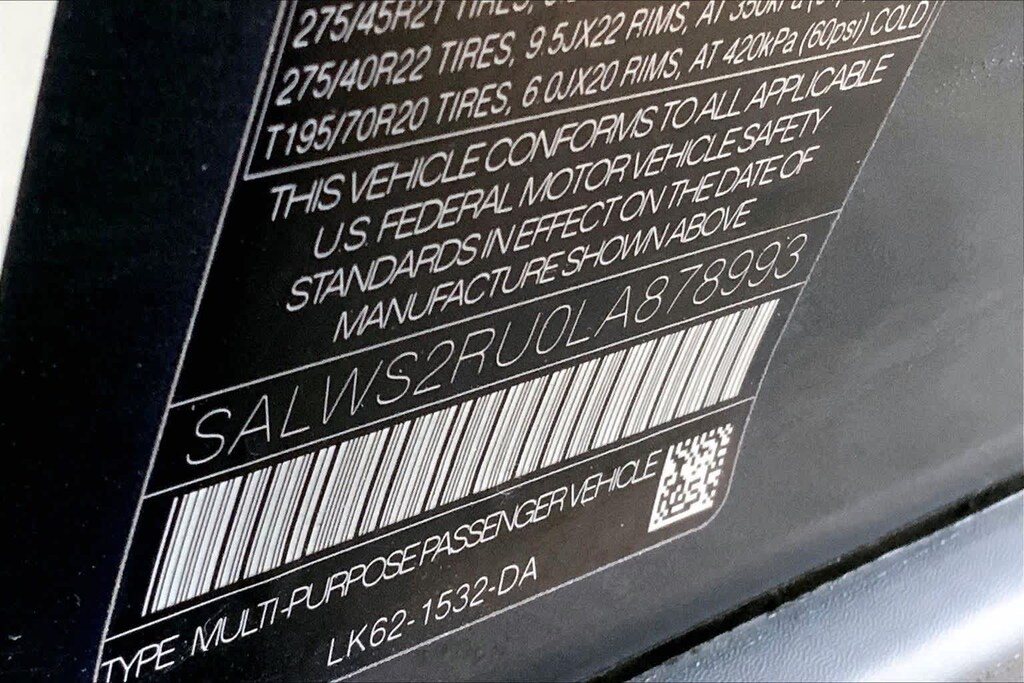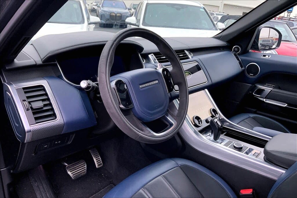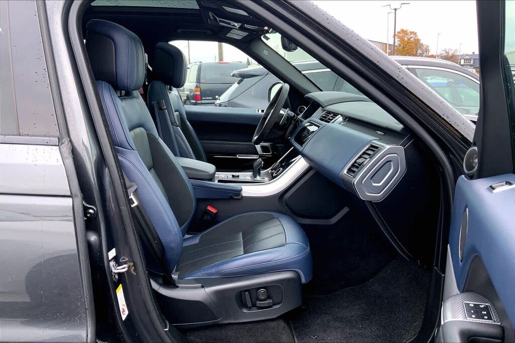 Clean CARFAX. 2020 Land Rover Range Rover Sport HST 4WD 8-Speed Automatic 3.0L I6 Turbocharged 16-Way Heated/Cooled HST Front Seats w/Memory, 19 Speakers, 3.55 Axle Ratio, 4-Wheel Disc Brakes, ABS brakes, Adaptive suspension, Air Conditioning, Alloy wheels, AM/FM radio: SiriusXM, Apple CarPlay & Android Auto, Auto High-beam Headlights, Auto tilt-away steering wheel, Auto-dimming door mirrors, Auto-dimming Rear-View mirror, Auto-leveling suspension, Automatic temperature control, Brake assist, Bumpers: body-color, Child-Seat-Sensing Airbag, Compass, Delay-off headlights, Driver door bin, Driver vanity mirror, Dual front impact airbags, Dual front side impact airbags, Electronic Stability Control, Emergency communication system: InControl Protect, Four wheel independent suspension, Front anti-roll bar, Front Bucket Seats, Front Center Armrest w/Storage, Front dual zone A/C, Front fog lights, Front reading lights, Fully automatic headlights, Garage door transmitter: HomeLink, Head restraints memory, Headlight cleaning, Heated door mirrors, Heated front seats, Heated rear seats, Illuminated entry, Leather Shift Knob, Low tire pressure warning, Memory seat, Navigation System, Occupant sensing airbag, Outside temperature display, Overhead airbag, Overhead console, Panic alarm, Passenger door bin, Passenger vanity mirror, Perforated Windsor Leather w/Suedecloth Seat Trim, Power adjustable front head restraints, Power door mirrors, Power driver seat, Power Liftgate, Power moonroof, Power passenger seat, Power steering, Power windows, Radio data system, Radio: Meridian Surround Sound System (825W), Rain sensing wipers, Rear air conditioning, Rear anti-roll bar, Rear fog lights, Rear reading lights, Rear seat center armrest, Rear window defroster, Rear window wiper, Remote keyless entry, Security system, Speed control, Speed-sensing steering, Speed-Sensitive Wipers, Split folding rear seat, Spoiler, Steering wheel memory, Steering wheel mounted audio controls, Tachometer, Telescoping steering wheel, Tilt steering wheel, Traction control, Trip computer, Turn signal indicator mirrors, Variably intermittent wipers, Ventilated front seats, Wheels: 21 9 Spoke Gloss Black Style 9001.