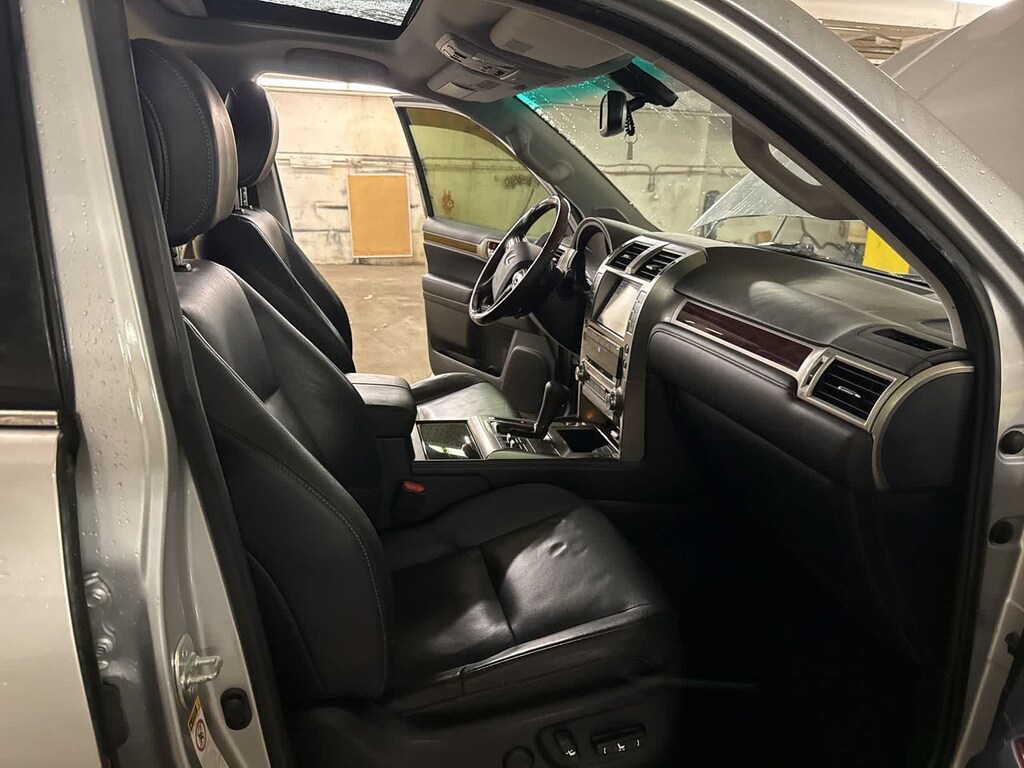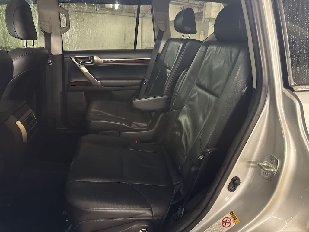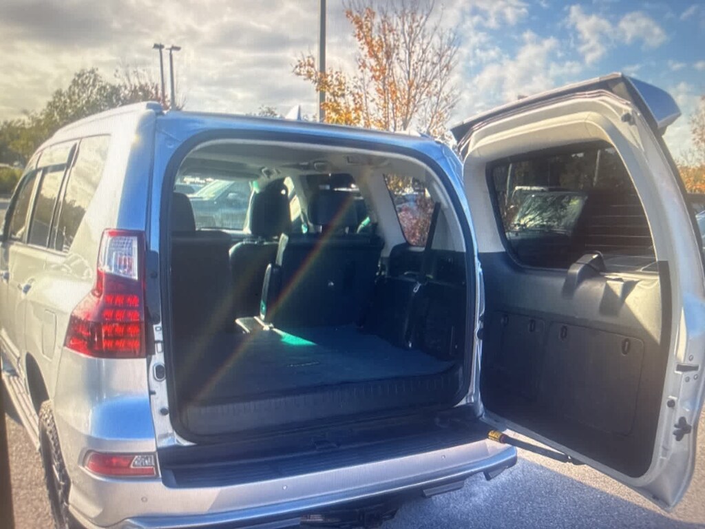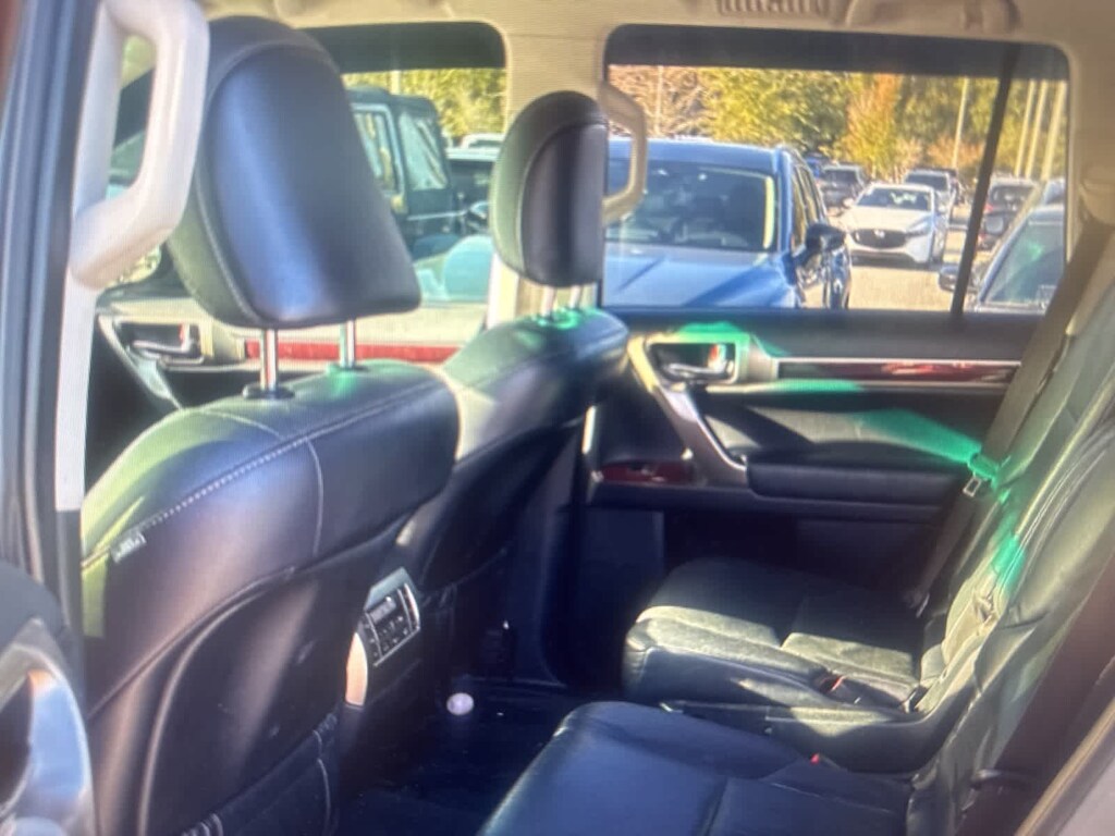 Silver Lining Metallic 2017 Lexus GX 460 4WD 6-Speed Automatic with Sequential Shift ECT 4.6L V8 DOHC Dual VVT-i 32V 18 x 7.5 6-Spoke Aluminum Alloy Wheels, 3.909 Axle Ratio, 3rd row seats: split-bench, 4-Wheel Disc Brakes, 9 Speakers, ABS brakes, Air Conditioning, Alloy wheels, AM/FM radio: SiriusXM, Anti-whiplash front head restraints, Auto tilt-away steering wheel, Auto-dimming Rear-View mirror, Automatic temperature control, Bodyside moldings, Brake assist, Bumpers: body-color, CD player, Compass, Delay-off headlights, Driver door bin, Driver vanity mirror, Drivers Seat Mounted Armrest, Dual front impact airbags, Dual front side impact airbags, Electronic Stability Control, Emergency communication system: Safety Connect, Exterior Parking Camera Rear, Front anti-roll bar, Front Bucket Seats, Front dual zone A/C, Front reading lights, Front wheel independent suspension, Fully automatic headlights, Garage door transmitter: HomeLink, Heated door mirrors, Illuminated entry, Illuminated running boards, Knee airbag, Leather Shift Knob, Leather steering wheel, Low tire pressure warning, Memory seat, NuLuxe Seat Trim, Occupant sensing airbag, Outside temperature display, Overhead airbag, Overhead console, Panic alarm, Passenger door bin, Passenger seat mounted armrest, Passenger vanity mirror, Power door mirrors, Power driver seat, Power moonroof, Power passenger seat, Power steering, Power windows, Radio data system, Radio: AM/FM Lexus Premium Audio, Rear anti-roll bar, Rear reading lights, Rear seat center armrest, Rear side impact airbag, Rear window defroster, Rear window wiper, Remote keyless entry, Roof rack: rails only, Security system, Speed control, Speed-sensing steering, Split folding rear seat, Spoiler, Steering wheel memory, Steering wheel mounted audio controls, Tachometer, Telescoping steering wheel, Tilt steering wheel, Traction control, Trip computer, Turn signal indicator mirrors, Variably intermittent wipers.